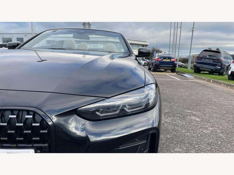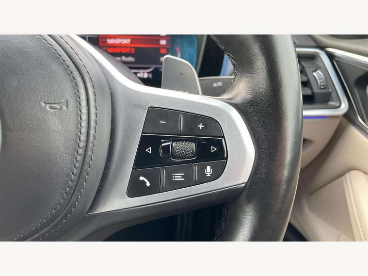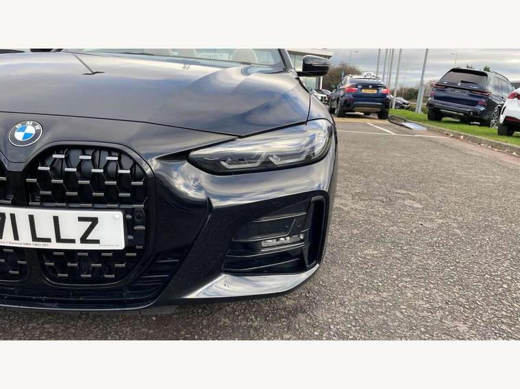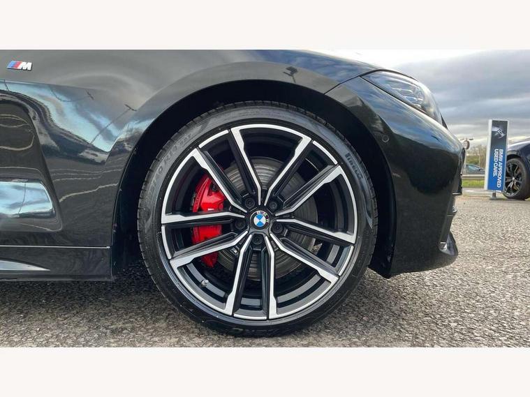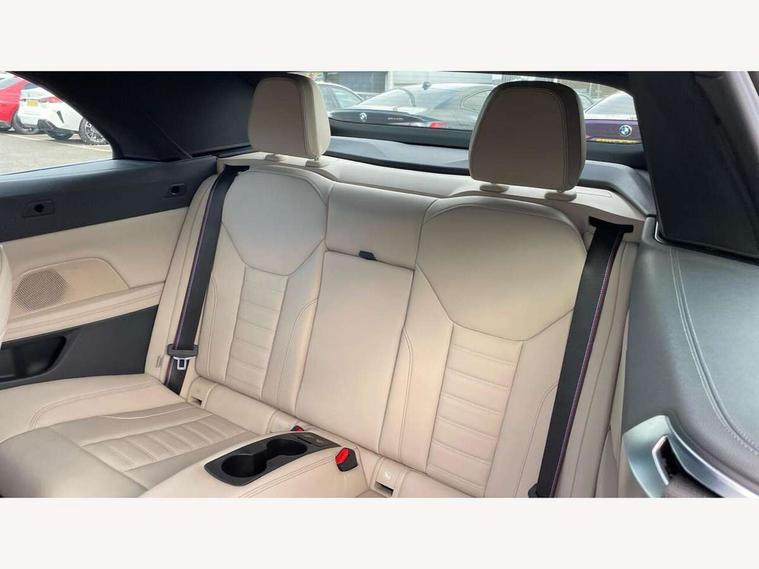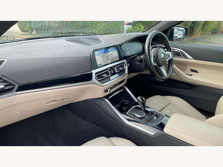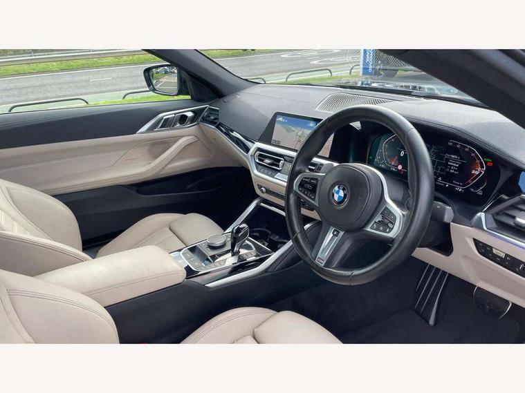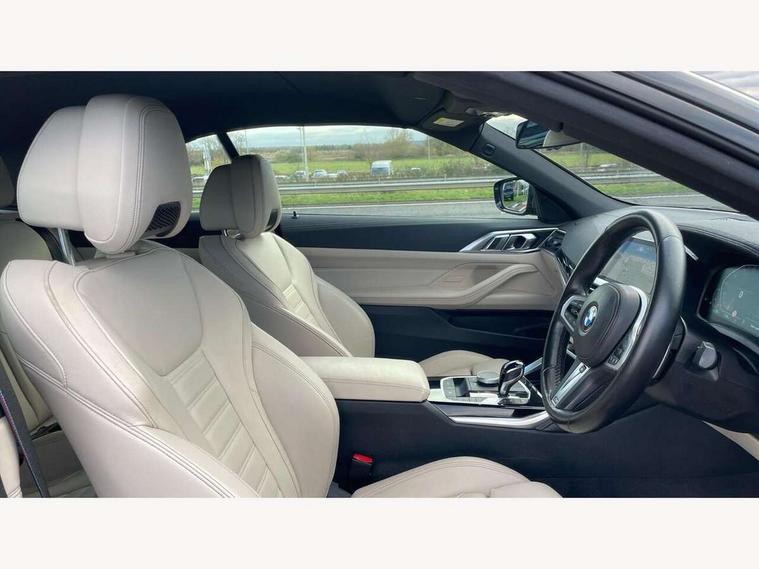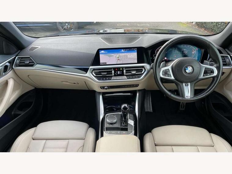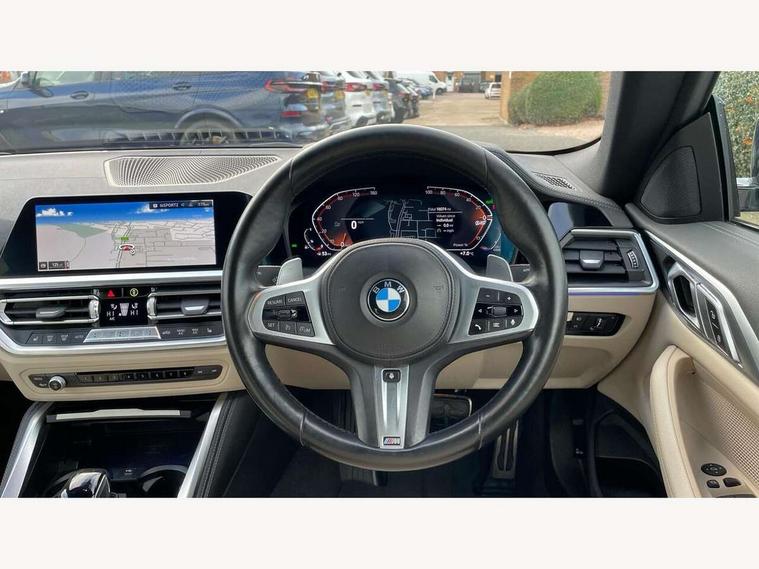 Active guard plus, Attentiveness assist, Auto start-stop, Bluetooth hands free facility with USB audio interface with audio streaming, BMW ConnectedDrive online services, BMW iDrive controller on centre console, BMW Live Cockpit Professional Nav with 12.3" instrument display + 10.25" display, Intelligent Voice Assist, BMW OS 7, HDD, 2USB, 4G LTE connect, BMW service history, BMW Teleservices, Brake pad wear indicator in front and rear, Check Control warning system for monitoring of lights and door/luggage compartment open warning, Condition based service, Cruise control with brake assist, Electric power steering with Servotronic steering optimised at all speed ranges, Gearshift time display in manual mode, Instrument cluster with speedometer with mph readout, tachometer, fuel gauge and oil temperature gauge, Integrated owners handbook, Oil sensor for level and grade, warning by check control system, On board computer - average speed, fuel consumption, outside temp display with acoustic warning, clock/date, service interval, odometer/trip meter, Optimum shift indicator, Variable sport steering, 8 speed automatic steptronic transmission with gearshift paddles, Balanced 50/50 weight distribution, Double VANOS, Drive performance control - ECO PRO, comfort and sport modes, High precision injection, Low centre of gravity, M sport suspension, Petrol Particulate Filter, Stroke dependent dampers, VALVETRONIC engine management, DAB tuner, Electronic service booklet, Acoustic glazing, Automatic headlight beam throw control with load dependent regulating reaction, dynamic compensation of braking dive and acceleration squat, Automatic windscreen wipers and automatic headlight, Automatically dimming electrochromatic rear view mirror, BMW emblem on engine compartment lid and tailgate, BMW kidney grille with mesh grille front side of the nuggets in matt aluminium and frame in chrome high gloss, Body colour fuel filler flap, Body colour roof fin, Brushed aluminium inserts in the front door sill finishers with BMW designation, Daytime running lights, Dynamic brake lights, Electric windows - front and rear, with open/close fingertip control, anti trap facility and comfort closing function all round, Exhaust tailpipe - split left and right, Exterior mirrors - electrically folding with anti-dazzle, Fading support, Front and rear bumper system, Front apron plastic in body colour, Green tinted heat protection glazing, High gloss shadow line exterior trim, Illuminated bow type door handles in body colour drivers side with door lock, Interior rear view electrochromatic mirror with automatic anti dazzle function, LED front fog lights, Licence plate panel integrated into front bumper and tailgate, Lightweight engineering, M designation on front side panels, left and right, Model designation on right side of tailgate, One piece front bumper cover including towing eye cover in body colour, Preparation for high beam assistant, Rear boot, Side frame decorative moulding black matt, Third brake light, Two part LED tailights in L-shape with components in smoked glass, brake light, LED turn indicator and rear fog light, Visible VIN plate, Welcome lights in interior and door handle area, Widened track and increased camber values for max transverse dynamics, agility and steering precision, Window recess cover black high gloss, Windscreen wipers with integrated washing jets, 12V power socket in front centre console, 2 2nd row folding seats, 2 front cupholder in centre console with clamping elements and matt black inlay, 2 Rear seat headrests, 2nd row centre armrest with built-in cupholders, 3 spoke M sport leather multifunction steering wheel, 3 zone automatic air conditioning, 4 pieces lashing eyelets in luggage compartment, Ambient lighting with welcome carpet light, Armrest integrated in front and rear door trim + front centre console armrest, Electric seat adjustment with memory, Four grab handles integrated in roof lining, Front and rear door exit lighting (left / right), Front and rear door pockets, Front and rear footwell lights, Front and rear reading lights, Front headrests, Front seat backrest width adjustment, Front sport seats, Heated driver and front passenger seats, Height adjustable mechanically and infinitely variable steering column, Illuminated armrest storage compartment, Illuminated glove compartment with separate small compartment, Luggage compartment light, Make-up mirror lights, Single front passenger seat, Storage compartment in rear centre console, Sunvisors with vanity mirrors and ticket pocket, Toolkit located in luggage compartment, Velour front floor mats, Vernasca leather upholstery, Connected professional package - 4 Series, M sport exterior styling pack - 4 Series, Park assist pack - 4 Series, 2 x 3-point rear seatbelts, Battery safety cut-off, BMW emergency call, Brake energy regeneration, Braking pre-tensioning, Child proof rear door locking, Coasting in idle in ECO PRO mode, Cornering brake control (CBC), Crash sensor activating of airbags, Unlocking doors, hazard warning lights, fuel cut off, interior lighting+activation of safety battery terminal clamp, Driver and front passenger side airbags, integrated in the door side seat backrest bolsters for all seat variants, Driver/Front Passenger airbags, Dry braking, Dynamic brake control, Dynamic stability control + (DSC+) - Anti-lock Braking System (ABS) with brake assist and cornering brake control + Automatic Stability Control (ASC), Dynamic Traction Control - DTC, Electric parking brake including automatic hold function and automatic release of the parking brake when driving off, Electronic differential lock control (EDLC), Front and rear ventilated brake disc, Front passenger manual airbag deactivation, Head airbags for all 4 outer seats, Hill start assistant, Seat belt security check for driver and front passenger, Seat belt with belt stopper, pyrotechnic belt tensioners and belt force limiters, Side impact protection, Tyre pressure monit