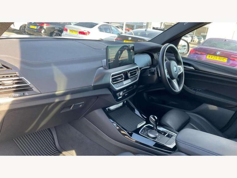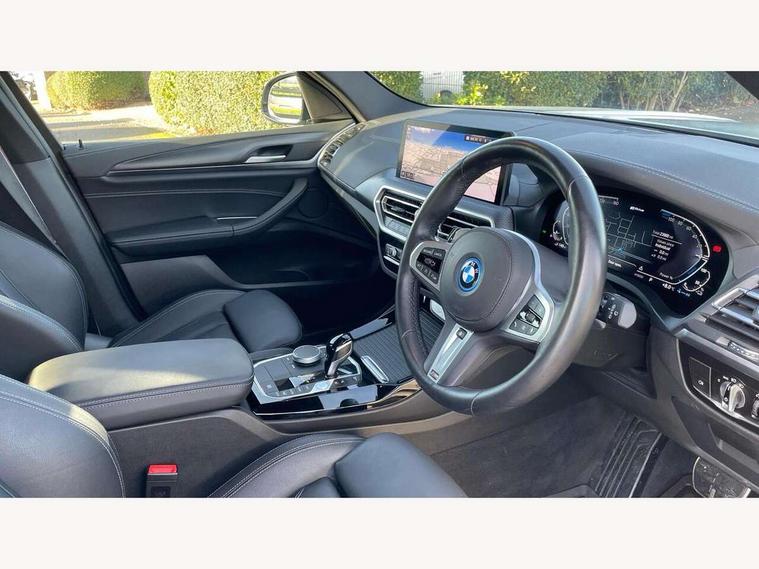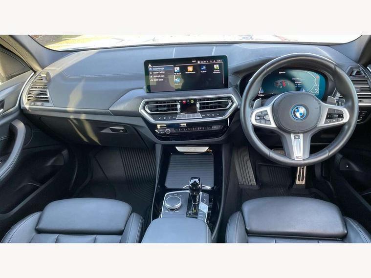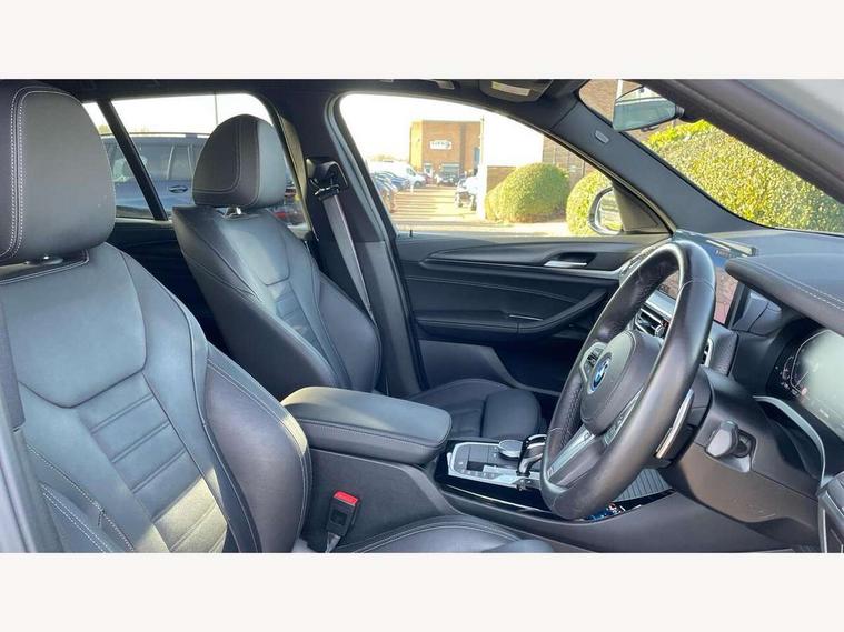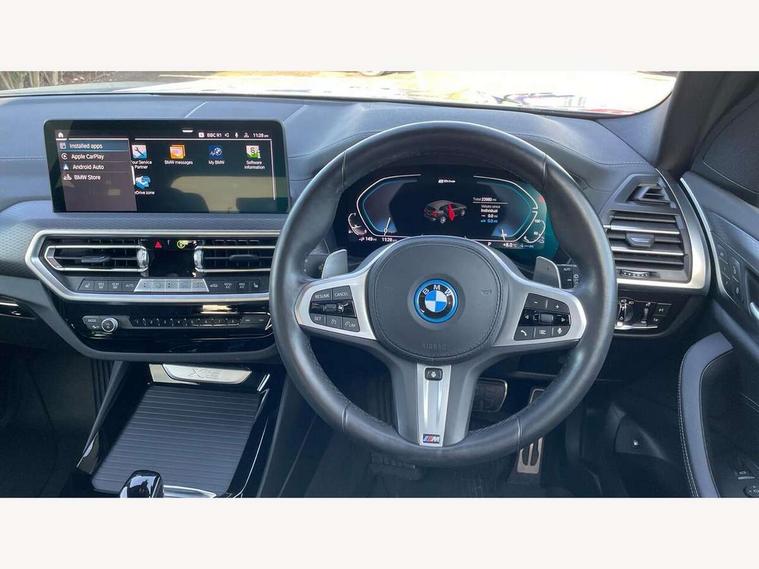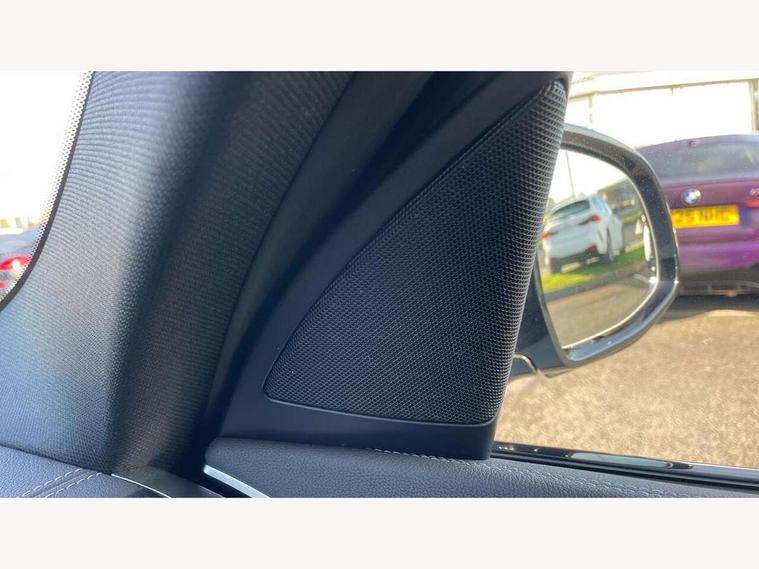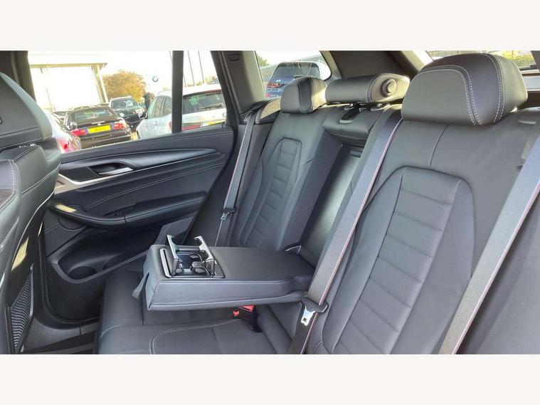 Active Guard, Attentiveness assist, Bluetooth hands free telephone connection with USB audio interface + audio streaming, BMW Live Cockpit Professional nav system including 12.3" instrument display + 12.3 high resolution control display, BMW Online services, BMW Teleservices, Brake pad wear indicator in front and rear, Check Control warning system for monitoring of lights and door/luggage compartment open warning, Condition based service - BMW service history, electronic service booklet, integrated owner's handbook, Connected drive services, Cruise control with brake function + speed limiter, Electric boot lid, Front/rear Parking distance control, iDrive Controller with 8 favourite buttons, Instrument cluster with speedometer with mph readout, tachometer, fuel gauge and oil temperature gauge, Lights on warning by audio warning signal when ignition is switched off, Oil sensor for level and grade, warning by check control system, On board computer - average speed+fuel consumption, service interval, clock/date, odometer/trip meter, outside temperature display and ice warning, Optimum shift indicator, Personal Profile - automatic lock when driving away selectable, Stop/start system, Variable sports power steering, Charging cable - Mode 2, Drive performance control with ECO PRO comfort + sport mode, eDrive exterior sound, Incorrect fuelling protection, Multi-link rear suspension, Performance Control, Sport automatic transmission with gearshift paddles, BMW professional radio/CD/MP3, DAB tuner, HiFi loudspeaker audio system, Acoustic glazing, Automatic windscreen wipers and automatic headlight, Black finish on B pillars, Body colour door handles, Body colour electric adjust heated aspherical door mirrors, Body colour roof mouldings, Body coloured bumpers, Direction indicator, side repeaters, integrated in exterior mirrors, Dynamic brake lights, Exhaust tailpipes - dual, round, split left and right with chrome finisher, Fingertip control / anti-trap function on electric window, Folding wing mirrors with auto dimming, Follow me home headlights, Front and rear bumper system with replaceable deformation elements, Front and rear electric windows, Gloss chrome tailpipes finishers, Green tinted heat insulating glass, Heated windscreen washer jets, High beam assistant, High gloss black shadow line roof rails, High gloss shadowline exterior trim in decorative moulding side frame/recess cover/guide rail/B, C pillars/mirror frame and triangle with mirror base, High level 3rd brake light incorporating LED Technology, Interior rear view electrochromatic mirror with automatic anti dazzle function, LED tail lights, Lightweight engineering, M aerodynamic bodystyling, Model designation, Rear side wing doors, Rear wing door, Rear wiper, Shark fin antenna, Side exterior M designation badges, Visible VIN plate, Welcome lighting, Windscreen wipers with adjustable interval, 12V power socket in front centre console, 3 rear headrests, 3 zone automatic air conditioning, 4 lashing points to secure luggage, 40:20:40 split folding rear seat with loading system, 5 seats, Ambient lighting, Anthracite headlining, Automatic interior light when door is opened/ignition switched off or via remote key, Foldable storage floor with compartment, Four grab handles integrated in roof lining, Front and rear bottle holders integrated into door trim storage compartments, Front and rear side armrests integrated into door trim, Front centre armrest with storage compartment, Front footwell lights, Front head restraints, Front sports seats, Front/rear courtesy lights with soft on/off dimming, Front/rear reading lights, Heated front seats, Isofix rear child seat preparation, Leather gear knob, Luggage area underfloor compartment, Luggage compartment lighting, M sport leather steering wheel, Multifunction steering wheel, Parcel shelf removeable and storable under boot floor, Reach and rake adjustable steering column, Rear centre armrest with 2 cupholders, Removable / retractable luggage cover, Seat backrest width adjustment, Slope adjustable rear seats, Storage compartment in rear centre console and front/rear door trims, Sun visors with vanity mirrors and ticket pocket, Toolkit located in luggage compartment, Two front cupholders with removable oddments tray/lid, Vernasca leather upholstery, Connected pro pack - X3, Driving assistant pack - X3, ADB - Automatic Differential Brake, Anti-lock braking system (ABS) with brake assist, Automatic Stability Control (ASC), Battery safety cut-off, BMW emergency call, Brake drying, Brake energy regeneration, Braking pre-tensioning, Child locks on rear doors, Cornering brake control (CBC), Crash Sensor - activation of central locking release, hazard warning light and interior lighting, Deactivation of fuel pump in the event of a crash, Driver and front passenger front and side airbags with passenger deactivation and ITS front and rear head airbags, DSC+, Dynamic brake control, Dynamic Traction Control - DTC, Electromechanical parking brake, Hill descent control, Hill start assist, Seatbelt security check for front seats, Side impact protection, Three point seatbelts to all seats with front and outer rear pyrotechnic belt tensioners and seat belt force limiters, Two tone horn, Tyre pressure sensor, Ventilated front and rear disc brakes, Warning triangle and first aid kit, Central locking switch for all doors, fuel filler cap and luggage compartment, Electronic engine immobiliser, Locking wheel nuts, Remote control including two integrated key - one button for open/close all lockable content, windows and separate button for open luggage compartment, Remote control Thatcham category 1 alarm, Start/stop button with Comfort Go keyless engine start and auto Start/stop deactivation button, Low rolling resistance tyres,