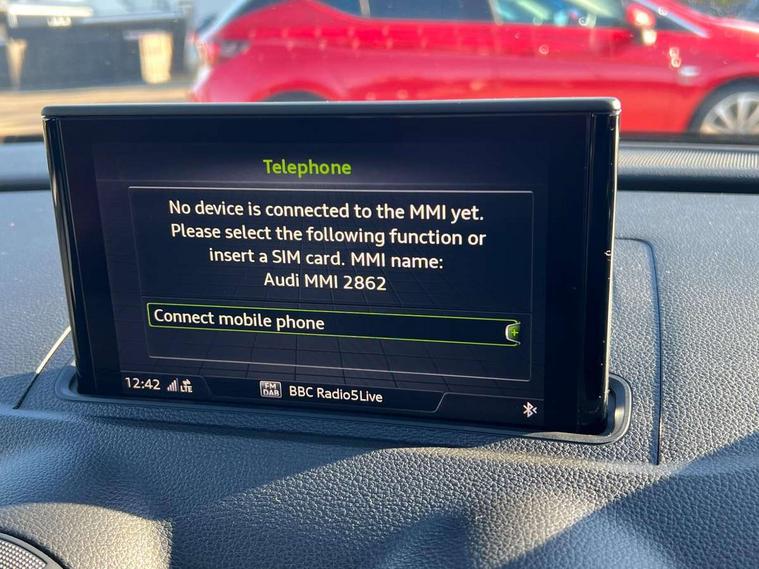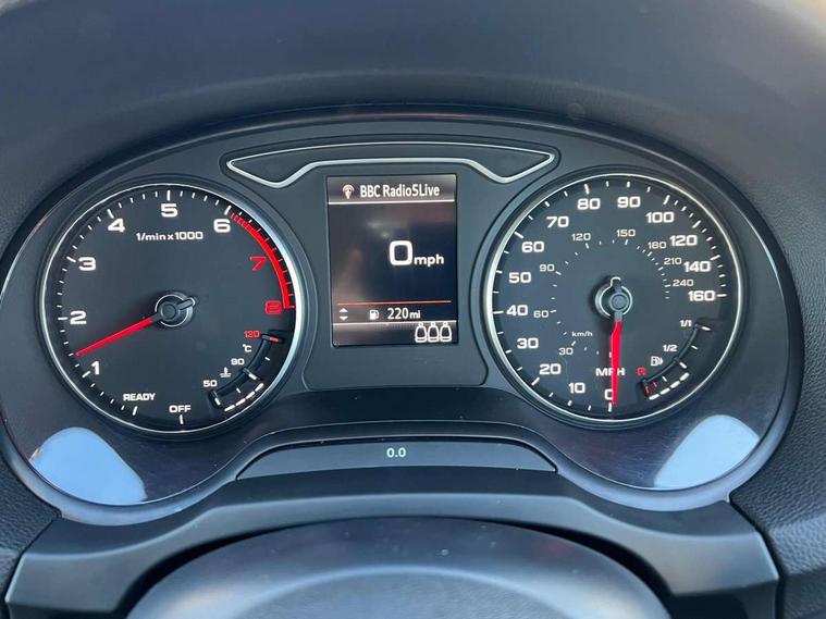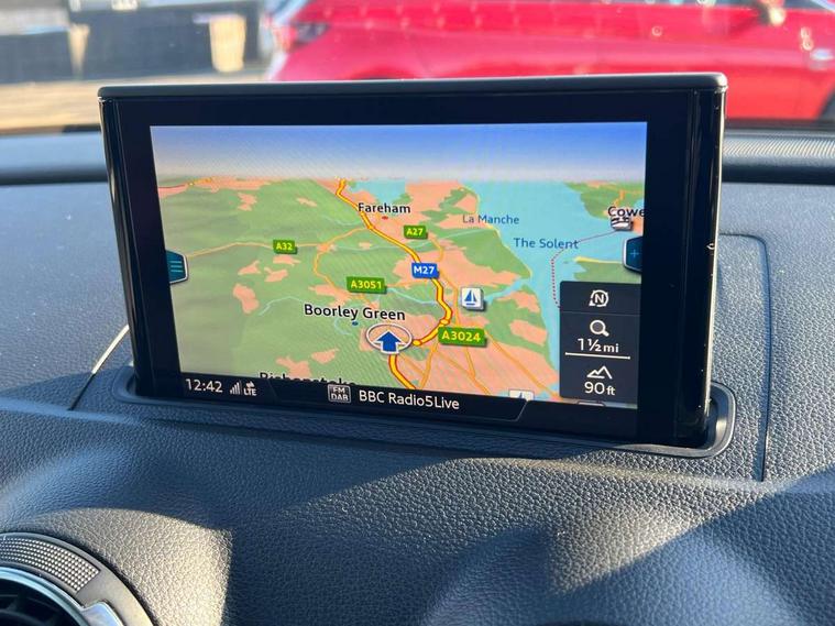 Audi connect, Audi smartphone interface, Automatic start/stop system, Colour driver's information system display, Electro - mechanical power assisted steering, Mobile telephone preparation - bluetooth interface, SD card based satellite navigation system, Service interval indicator, Speed limit display, Voice control system, Voice recognition for navigation system, Dynamic suspension, 2 USB interfaces and Aux-In jack, Audi music interface, CD player, DAB Digital radio, MMI radio plus with 7" colour MMI screen and MMI controller, Auto dimming rear view mirror with light and rain sensors, Body colour bumpers, Body colour door mirrors, Body colour roof spoiler with aerodynamic inserts in high gloss black, Electric front windows, Electric rear windows, Electrically adjustable and heated door mirrors with integrated LED side indicators, Heated windscreen washer jets, Matt black radiator grille, Rear wiper, Xenon headlights with LED Daytime running light, 3 adjustable rear headrests, 3 spoke leather multifunction sports steering wheel, 4 lashing points to secure luggage, Adjustable front centre armrest, Front and rear interior lights with delay, Front/rear floor mats, Glovebox light, Height and reach adjustable steering wheel, Isofix child seat preparation for front passenger/outer rear seats inc passenger airbag deactivation, Rock grey headlining, Storage compartments in doors side trims, centre console and under front drivers seat, Tool kit, Non smoking pack - A3, 3 point seatbelts on all seats, ABS/EBD, Active bonnet, Active front headrests, Airbags - front driver/passenger, front & rear side, curtain, drivers knee, ASR, EDL, Electromechanical parking brake, ESC - Electronic Stability Control + traction control, Front passenger airbag deactivation, Hill hold assist, Manual rear child locks, Multi-Collision braking, Seatbelt warning, Tyre pressure warning, Warning triangle and first aid kit, Anti theft alarm, Anti-theft wheel bolts, Remote control central locking, Thatcham category 1 alarm + immobiliser, Aluminium air vent surrounds, Micrometallic silver inlay, Tyre repair kit,