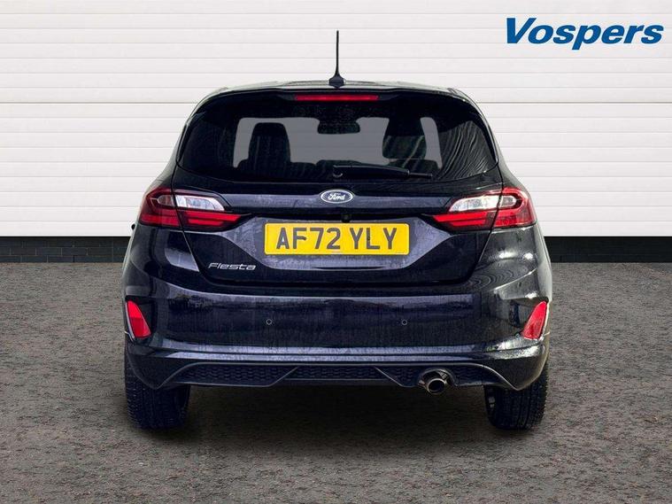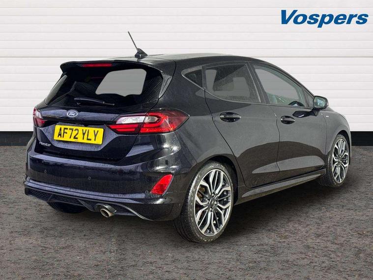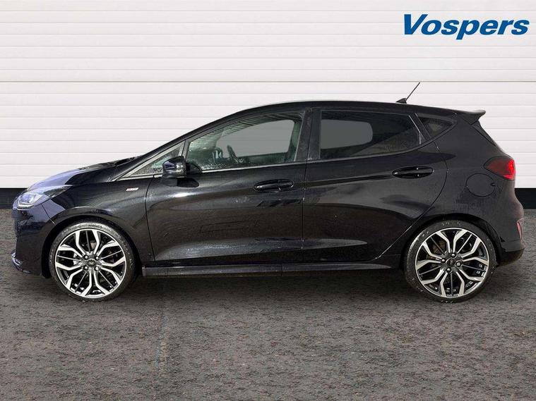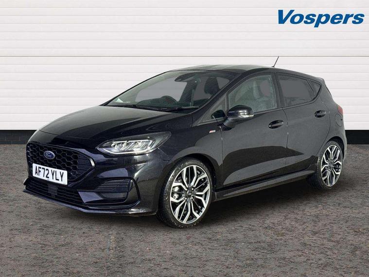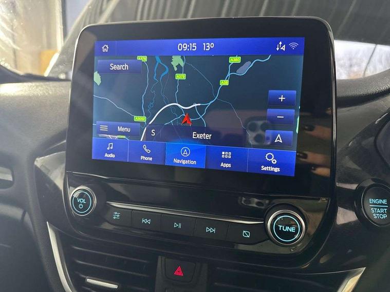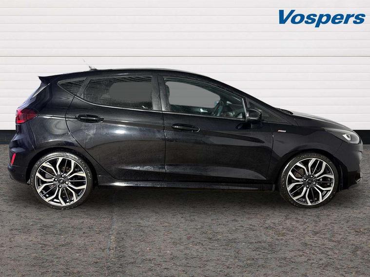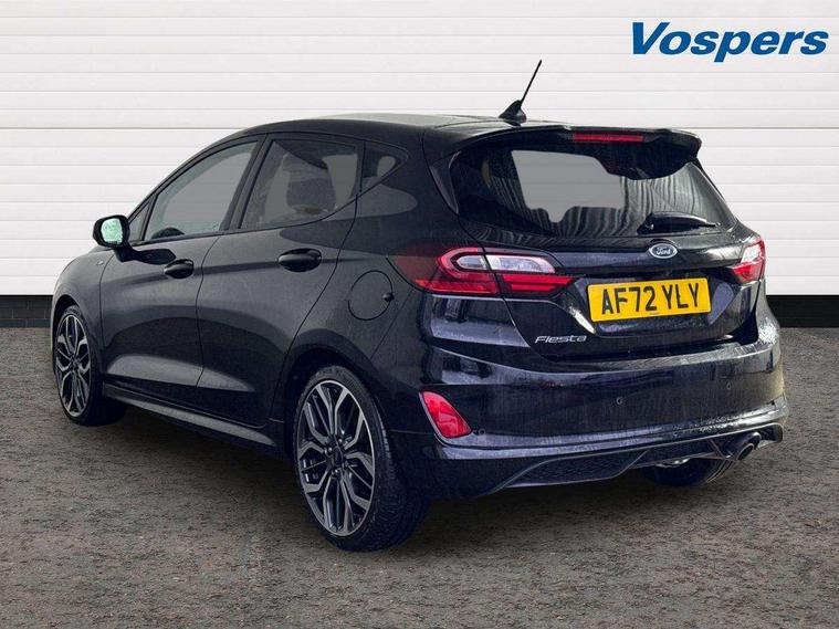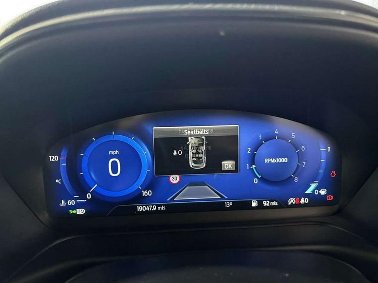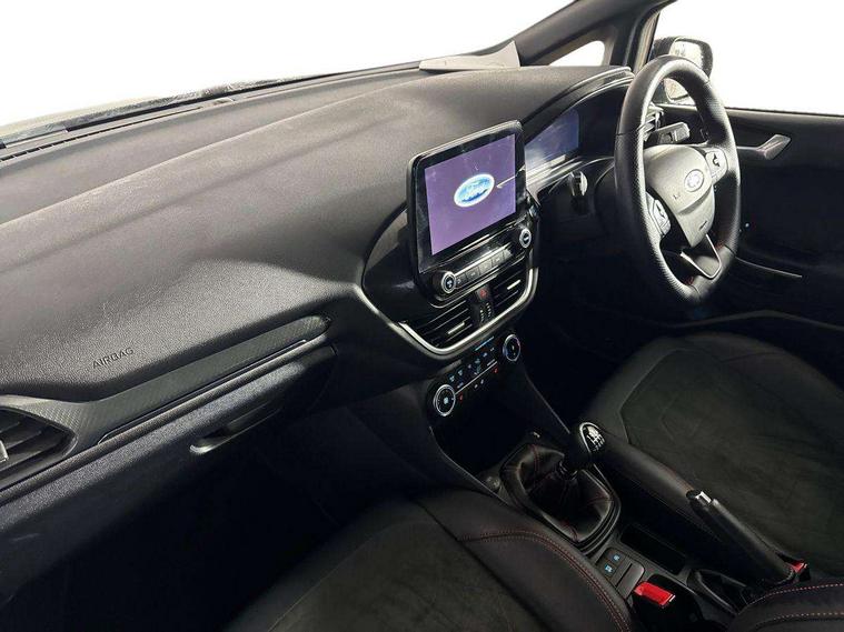 Driver alert system, Electric power steering, Ford easy fuel, Lane keep assist, Lane keeping aid, Rear parking distance sensors, Rear view camera, Selectable drive modes (Normal, Sport, Track), Trip computer, Sports suspension, 3rd brake light, Auto high beam, Automatic headlights, Body colour bumpers, Body colour large rear spoiler, Body coloured electrically operated with side indicators, Electric front windows/one touch facility, Electric rear windows, LED rear lights, Quickclear heated windscreen, Rain sensing wipers and auto dimming rear view mirror, Rear privacy glass, Rear side wing doors, Rear wiper, Unique ST-Line grille, full bodystyling kit and large body coloured rear spoiler, 3 rear headrests, 3 seat bench in 2nd row, 4 way manually adjustable passenger seat, Adjustable head restraints, Black headlining, Centre console with opening armrest, 2x cupholders, 12v and USB, EATC - Electronic Auto Temperature control, Leather gear knob, Manual 4-way driver seat adjust, Premium floor mats, Sensico partial premium leather upholstery with red stitching, Sensico wrapped steering wheel, Single front passenger seat, Winter pack [GTBAB]- Fiesta, 3 point seatbelts on all rear seats, Electronic stability control with hill start assist, Front and rear seat belt warning, Manual child lock in rear doors, Tyre pressure monitoring system, Ford keyfree system with Keyless entry and keyless start, MyKey system, Remote central locking, Thatcham alarm with power door dead locks, 18" 5x2 spoke alloys with pearl grey machined finish,