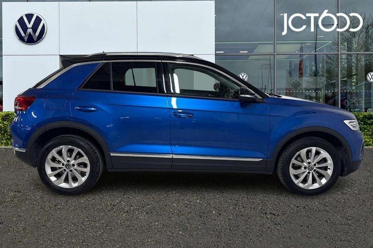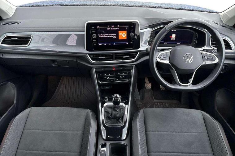 10.25" Digital cockpit pro, Bluetooth mobile phone interface, Driver alert system with fatigue detection, Driver tips and journey analysis, Emergency call service, Lane keeping system Lane Assist, Modified key software - reduce switch off time for key status change to Long no motion, Online services, Park assist including front and rear parking sensors, Service interval indicator, Tailgate/trunk lid release from outside, Think blue trainer driver tips and journey analysis, Warning sound and light for front seatbelts unfastened, Wireless app connect, Battery regeneration during braking, Start/stop function with battery regeneration, Diversity antenna for FM reception, Music playback - MP3, WMA and AAC files, Premium USB cable in choice of either Apple or Android smartphone compatibility, SD card slot, Simultaneous pairing of 2 compatible mobile devices, Title and cover art display, We Connect and We Connect Plus functionality, 3rd brake light, Auto dimming interior rear view mirror, Automatic hazard lights activation under emergency braking, Automatic headlight control with LED separate daytime running lights with coming/leaving home function, Body colour sports bumpers with silver metallic underbody fascia, Dynamic headlight range control with self adjusting whilst driving, Extended roof spoiler, Exterior mirrors aspherical on driver side, convex on front passenger side, External USB type C socket and charging sockets, Front windscreen wiper with intermittent wipe and 4 position delay, Heated rear window, LED rear combination lamps, LED rear number plate lights, LED tail lamp rear comination lamps, Light mode for poor weather, rain, fog or snow, Power windows with comfort operation and circuit breaker, Rain sensor, Rear exhaust tailpipe, Rear fog light on one side and reversing lights on both sides, Rear side wing doors, Rear wash/wipe with intermittent wipe setting, Remote electrically foldable door mirrors, puddle lights and reverse activated passenger's door mirror, 12V power socket in centre console, 3 rear head restraints, 3 seat bench in 2nd row, 4 load lashing points in luggage compartment, Air care climatronic air conditoning system with active combination filter and 2-zone temperature control, Chrome plated radiator grille inserts, air vent surrounds and light switch surrounds, Door and side trim panel with leatherette insert, Drawer under drivers seat, Front + rear carpet mats, Front centre armrest, Front comfort sports seats, Front cupholders x 2, Front footwell illumination, Instrument lighting, white adjustable panel illumination, Interior ambient lighting and surround lighting, Interior light delay, Isofix child seat preparation, Leather gearshift handle, LED interior light with switch off delay/dimmer and 2 front/rear LED reading lights, Load-through provision with cup holder when folded down ('Unsplit rear seat bench, split folding backrest, with centre armrest), Luggage compartment lighting, Non-folding front passenger seat backrest, Single front passenger seat, Storage compartment in left and right luggage area, Storage compartment in rear doors, Storage compartments in driver and front passenger doors, Sunvisors with illuminated vanity mirrors, Variable boot floor, height adjustable and removable, Driver assistance pack without proactive passenger protection - T-Roc, 3 point height adj front seatbelts + pretensioners, 3 point seatbelts in outer rear with ECE label, ABS, Child locks on rear doors, Driver and front passenger airbag with front passenger airbag deactivation, Driver and front passenger safety-optimised head restraints, Drivers seatbelt reminder, Electronic parking brake, Electronic Stability Control (ESC) inc EDL (Electronic Differential Lock) and ASR (Traction Control), Front and rear passengers curtain airbag system including front side airbags, Front assist with city emergency braking and pedestrian monitoring, Front seat side impact airbags, Predictive pedestrian protection, Rear disc brakes, Single tone horn, Tyre pressure loss indicator, Volkswagen roadside assistance, Anti-theft alarm system with interior monitoring, backup horn, and towing protection, Remote central locking with SAFELOCK, radio remote control with 2 remote control folding keys, Trims for alloy wheels,