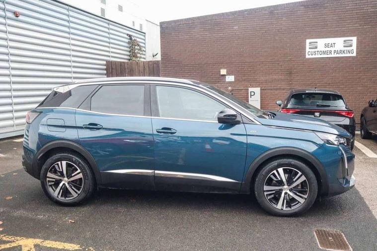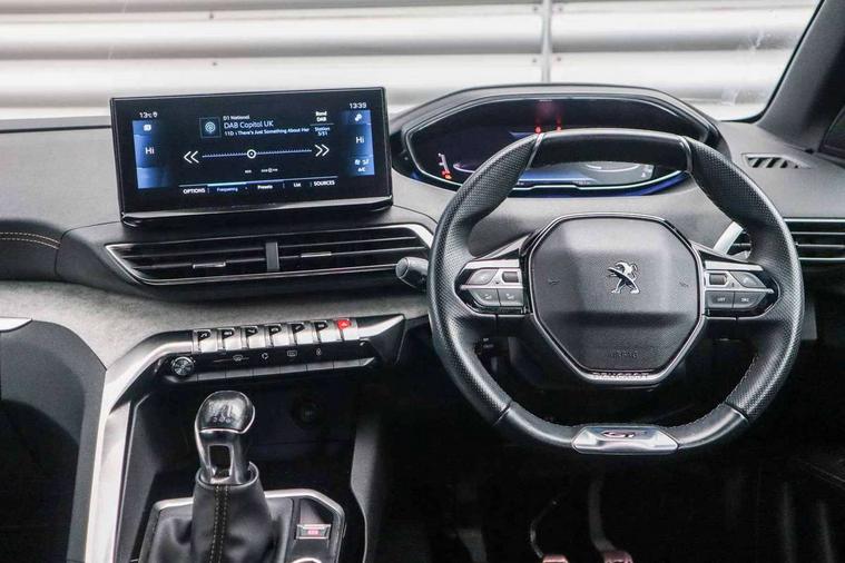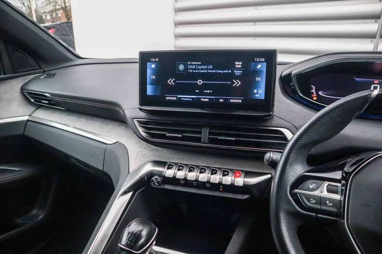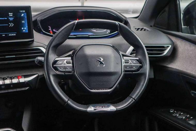 180 degree colour reversing camera, 3D connected navigation with 10" HD touchscreen, Bluetooth telephone facility, Drive modes select (Eco, normal and sport), Driving Time Warning (DAA1), Emergency services call system, Extended traffic sign recognition, Exterior temperature indicator with ice warning, Mirror screen with mirror link, apple carplay and android auto, Multi function trip computer, PEUGEOT i-Cockpit with 10" high definition capacitive touchscreen, Peugeot i-cockpit with compact multi-function sports steering wheel, PEUGEOT i-Cockpit with configurable 12.3" Head-up digital instrument panel, PEUGEOT SOS and assistance, Rear passenger USB charging sockets (x2) (type A), Speed limit recognition and recommendation, Voice recognition, Dynamic stability control and electronic anti-skid system, Stop/start function, DAB Digital radio, USB socket, Auto self levelling headlights, Automatic hazard light activation upon heavy brake application, Automatic triggered rear windscreen wiper in reverse gear, Black with chrome detailed front wing trim, Body colour door handles, Body colour rear roof spoiler with stainless steel edging trim, Body protectors (bottom of front and rear bumpers + wheel arches + protection at bottom of doors) in black, Dark tinted rear side windows + tailgate window, Diamond Black door mirror shells, Door mirror mounted LED courtesy floor lighting, Electric folding door mirrors with exterior courtesy LED lighting, Electric operated/heated door mirrors, Fog Mode, Front windscreen wiper with magic wash cleaning system, Full LED headlights with LED fog lights with static cornering function, Gloss black B and C pillar and aerodynamic deflector trim, Gloss black front bumper air scoops, Gloss black rear cluster connecting strip, Gloss black windscreen trim, GT emblem in satin copper (front wings and tailgate), Headlights left on audible warning, Heated rear windscreen with integrated antenna, LED daytime running lights, LED front indicator, LED rear number plate lighting, LED side indicator lights integrated into door mirrors, LED third brake light, One touch electric front/rear windows with pinch protection, Rear LED Peugeot signature 'Claw Effect' lights, Rear side wing doors, Stainless steel roof arches, Twin exhaust tailpipe, 1/3 to 2/3 split folding rear seats, 12V Sockets in dashboard, rear cabin and load area, 2 cupholders in front centre console, 2 cupholders in rear armrest, 2 x Rear reading spotlights, 2x Rear coat hooks, 3x Isofix child seat fittings in the front passenger and outer rear seats, 4 Grab handles retractable and damped, Aikinite stitching in armrest, gear lever and dashboard facia, Aluminium pedals, Blue ambient lighting for connecting zone, Blue ambient lighting to front door panels, central storage and cupholders, Blue ambient lighting to headup instrument panel, Centre front armrest with butterfly wing opening and illuminated storage compartment, Driver seat manual adjustment (longitudinal and back rest angle), Dual zone automatic climate control, Electric power steering with reach and rake adjustable steering column, Flocked front door pocket interior with blue ambient lighting, Flocked glovebox interior, Foldable front passenger seat with picnic table, Footwell illumination, Front interior light with 2 reading spotlights and rear interior light with timer, Front passenger seat manual adjustment (longitudinal and back rest angle), Front seat back map pockets, Gear shift indicator, Illuminated glovebox, Individual left and right controls in boot for seat folding, LED interior lighting in storage spaces and load area, LED roof interior lighting, Mistral floor mats with Aikinite contrast stitching, Mistral full grain perforated leather steering wheel with aikinite stitch detail and satin chrome 'GT' emblem, Rear bench seat with central armrest and ski hatch, Rear centre console ventilation system, Roof lining - Mistral black, Satin chrome dashboard trim, Satin chrome digital instrument panel and touchscreen trim, Satin chrome front door panel recess trim, Satin chrome interior door handles, Satin chrome scorpion's tail and toggle switch trim, Seatbelt not fastened audible and visual alert for front seats, Seatbelt unfastened on the move audible and visual alert for front and rear seats, Sunvisors with illuminated vanity mirrors, Two position boot floor, Drive assist pack - 3008, Driver sport pack - 3008, Safety plus pack with high beam assist - 3008, Visibility pack - 3008, 3x Rear three-point retractable seatbelts with force limiters in the outer rear seats, ABS (Anti-lock Braking System) with EBD (Electronic Brakeforce Distribution) and EBA (Emergency Braking Assistance), Adaptive driver and front passenger airbags with passenger airbag deactivation function, Driver and front passenger side airbags, Electric child locking functionality on rear windows and doors, Electric parking brake, Front and rear curtain airbags, Front optimised safety headrests and 3 x rear retractable headrests with height adjustable, Front three point retractable seatbelts with pre tensioners and force limiters, Front ventilated disc brakes and rear disc brakes, Hill start assist, Two tone horn, Automatic door locking when moving off, Electronic immobiliser, key operated exterior door lock from the left hand door, Perimetric and volumetric alarm with lift and tilt sensor, Peugeot Open and Go System, Remote control central locking with two plip keys, Puncture repair kit including compressor, sealant cartridge and towing eye,