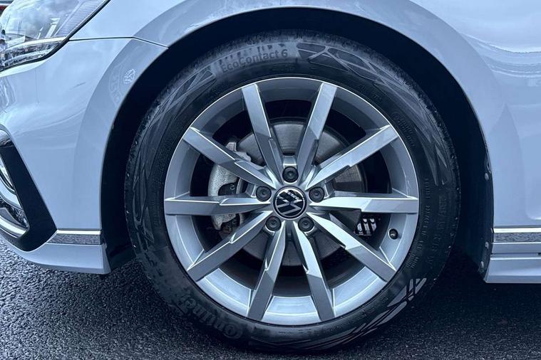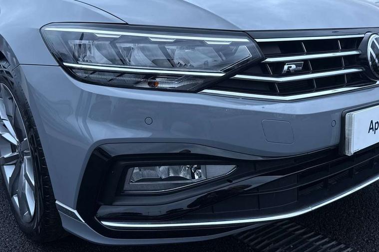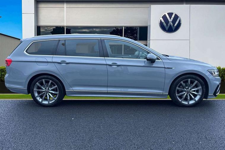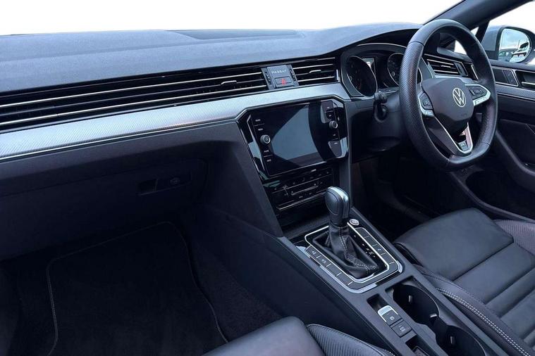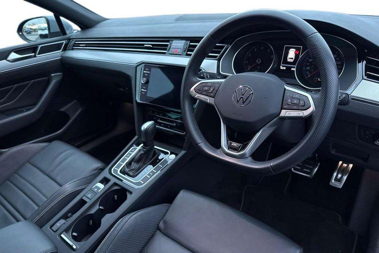 Adaptive cruise control including Front Assist, radar sensor controlled distance monitoring system, City emergency braking system, Driver alert system, Driver profile selection, Exterior temperature gauge with frost alarm, Lane assist, Low washer fluid warning light, Multifunction computer includes visual gear, One touch indicator turn signal, Proactive occupant protection, Security and service including e-call, Speed sensitive power steering, Speedo and rev counter, electronic odometer, trip, service interval display and fuel gauge, Start/Stop function, Traffic jam assist, Warning buzzer and light for front seatbelts unfastened, We connect plus, Battery regeneration during braking, Misfuel prevention device, Petrol Particulate Filter, Aerial for radio integrated into rear windscreen, DAB Digital radio receiver, External, USB type C data sockets with increased charging performance front (45 Watt), Auto dimming interior rear view mirror, Automatic headlights with dusk sensor, Automatic leaving home and manual coming home lighting functions, Black radiator grille with chrome louvres, Body colour bumpers, Body colour door handles, Body coloured door mirrors with integrated indicators, Chrome side window surrounds, Electric heated windscreen washer jets, Front and rear electric windows, Fully galvanised body, Gloss black finish on B pillar, Heated rear window, LED rear lights, LED rear number plate lights, LED third brake light, Plastic load sill protection, Rain sensor, Rear side wing doors, Rear tinted glass from B pillar backwards, approx 65% tinted, Rear window wash/wipe, Remote electrically adjustable and foldable heated door mirrors including automatic dimming function on drivers side door mirror puddle lights, Silver anodised roof rails, Warning lights for open tailgate and doors, White instrument lighting, Windscreen wipers/ intermittent wipe + 4 position delay, 12V socket in front centre console, 12V socket in luggage compartment, 3 seat bench in 2nd row, 40:20:40 split folding rear seats with backrest, Carbon optic side bolsters, Climate control - 3 Zone electronic air conditioning with automatic air recirculation, Driver's door storage compartment for 1.0 litre bottle, Extending luggage compartment cover with convenience opening, stowable, Front and rear interior lighting with delay and dimming function, Front centre armrest with storage compartment and two rear air vents, Front cupholders x2 with covers, Front passenger storage compartment for 1.5 litre bottle, Front seats with embroidered R Line logo on backrest, Height adjustable and removable variable boot floor, Height adjustable rear seat head restraints (x3), Height/reach adjust steering wheel, Illuminated vanity mirrors, Isofix child seat preparation, outer rear seats, Load lashing points x 4 in luggage compartment, Load through provision, Lockable, illuminated, cooled glovebox, Luggage compartment lighting, Nappa leather upholstery, Rear seat centre armrest with storage compartment, Single front passenger seat, Stainless steel pedals, Storage compartment in rear doors, Storage compartment in roof console with cover, Unique R Line door sill protectors, Unique R Line front and rear carpet mats, Easy open package with full electric tailgate/ boot - Passat (Estate), R line styling pack - Passat (Estate), 3x3 point rear seatbelts, ABS (Anti locking brake system) includes BAS (Brake assist) and EBD (Electronic brake pressure distribution), Automatic post collision braking, Disc brakes front and rear, Door open warning reflectors, Driver/Front Passenger airbags, Drivers and front passengers safety optimised head restraints, longitudinal and height adjustable, Drivers knee airbag, Electronic parking brake with auto hold, First aid kit and warning triange with 2 face masks, Front and rear passenger curtain airbags, Front passenger airbag deactivation switch, Front side impact airbag, Height adjustable front 3 point seatbelts + pretensioners, Hill hold function, Pre crash preventive occupant protection, Rear door child safety locks, Rear seat side impact airbags, Rigid safety cell with front and rear crumple zones, Tyre pressure loss indicator, Volkswagen roadside assistance, Warning light for rear seat belts if unfastened, Alarm with interior protection and deactivation via infotainment system, Electronic engine immobiliser, Locking wheel nuts, Remote central locking, Chrome air vent and instrument surround, Unique R Line dark diamond flag decorative inserts in dash and door panels,
