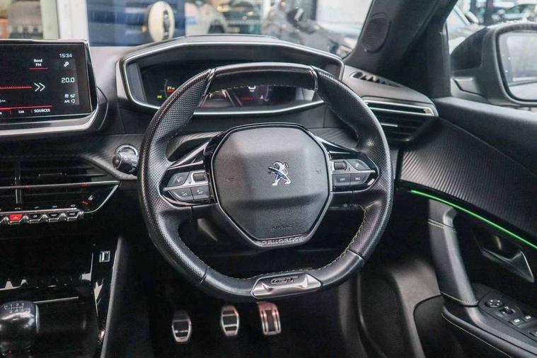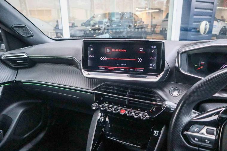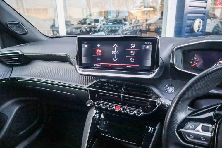 Bluetooth telephone facility, Connected 3D navigation, Driver attention warning, Exterior temperature indicator with ice warning, Front and rear parking sensors, Lane keep assist, Mirror screen with mirror link, apple carplay and android auto, Multi function trip computer, PEUGEOT i-Cockpit with 10" capacitive colour touchscreen, PEUGEOT i-Cockpit with compact steering wheel, PEUGEOT i-Cockpit with configurable 3D headup instrument panel, PEUGEOT SOS and assistance, Smart phone docking station, Speed limit recognition and recommendation, Start/stop system, Visio Park 1 with 180 degree Colour reversing camera, 2 front USB socket with USB-C, 2 USB sockets in rear, 6 speakers radio with mp3 compatible, DAB Radio (Digital Audio Broadcasting), Voice recognition for radio, navigation and telephony features, 2 X Rear number plate lights, Acoustic windscreen, Automatic hazard light activation upon heavy brake application, Black diamond roof, Black front wing trim with gloss black detail and GT badging, Body coloured exterior door handles, Chrome exhaust tailpipe, Chrome Lion Badge front and rear, Dark tinted rear side and tailgate windows, Diamond black mirror shells, Diamond black rear spoiler (roof), Electric, heated, and power folding door mirrors, Frameless electrochrome interior rear view mirror, Front bumper - Silver lower trim, Full LED headlights with smartbeam assist, Gloss black longitudinal roof rails, Gloss black rear cluster connecting strip, Gloss black roof bars, Gloss black window surround, GT model designation badging on tailgate, Headlights left on audible warning, LED daytime running lights with 3 claw headlight with distinctive tooth design, LED side indicator lights integrated into door mirrors, LED third brake light, Model designation badges front and rear, One touch electric front/rear windows with pinch protection, Radiator grille - Dark chrome chequered and gloss black edge trim, Radiator grille - gloss black top edge trim, Rear full LED 3D peugeot signature claw effect lights with daylight function, Rear reversing lights, Rear side wing doors, Rear windscreen wiper triggered automatically in reverse gear, Saline grey finish on B pillar, Stainless steel door sill scuff plates, Tailgate with heated rear windscreen and wiper blade, Trailer Stability Programme, Variable front intermittent wipers, Welcome lighting, Wheel arch extensions, 1/3 to 2/3 split folding rear seats, 12v power outlet - front, 12V socket, 3 seat bench in 2nd row, 8 Colour personalisable ambient lighting, Aluminium pedals, Automatic air conditioning with pollen and active carbon filter, Central front armrest with storage compartment, Driver and front passenger sport seats, Electric power steering with reach and rake adjustable steering column, Front and rear carpet mats in black with lime green stitch detail, Front centre armrest, Front LED interior light with 2 reading spotlights and rear interior light with timer, Front passenger seat manual adjustment - height, longitudinal and back rest angle, Gear lever top - manual in full grain leather, Gear shift indicator, Heated front seats, High centre console, ISOFIX child seat mounting points on passenger seat, Lime green contrast stitching to front centre console, door panels and dashboard facia, Mistral full-grain perforated leather steering wheel with Lime Green stitch detail and satin chrome 'GT' emblem, Modular boot floor, Multifunction steering wheel, Piano keys: Gloss black and chrome toggle switches to access main functions of the vehicle and touchscreen functions, Roof lining - Saline grey, Seatbelt unfastened on the move audible and visual alert for front and rear seats, Single front passenger seat, Switch for Push Button Start finished in black with chrome surround, Visibility pack - 2008, 2x 2nd row ISOFIX child seat mountings, ABS (Anti-lock Braking System) with EBD (Electronic Brakeforce Distribution) and EBA (Emergency Braking Assistance), Acoustic vehicle alerting system, Active safety brake with night function/cyclists/pedestrians, Adaptive driver and front passenger airbags with passenger airbag deactivation function, Child locking functionality on rear doors, Driver/front passenger side airbags, Electric parking brake, ESP (Electronic Stability Program) + Hill Start Assist, Front and rear curtain airbags, Front and rear disc brakes, Front and rear three-point retractable seatbelts, with force limiters, Front optimised safety headrests and rear retractable headrests (x3), height adjustable, Tyre pressure sensor, Alarm system with anti-lift sensor, Automatic door locking when moving off, Deadlocks, Electronic code immobiliser, Exterior door lock x1 (Left-hand or passenger’s side), Remote central locking, Carbon effect Dashboard, front and rear door panel finish,