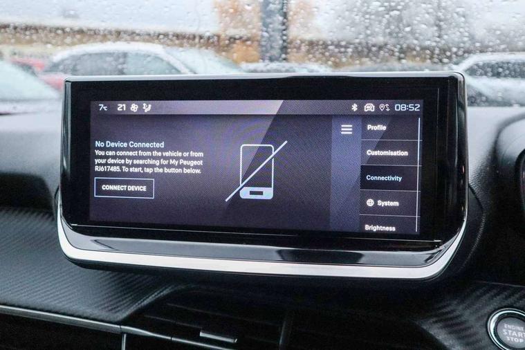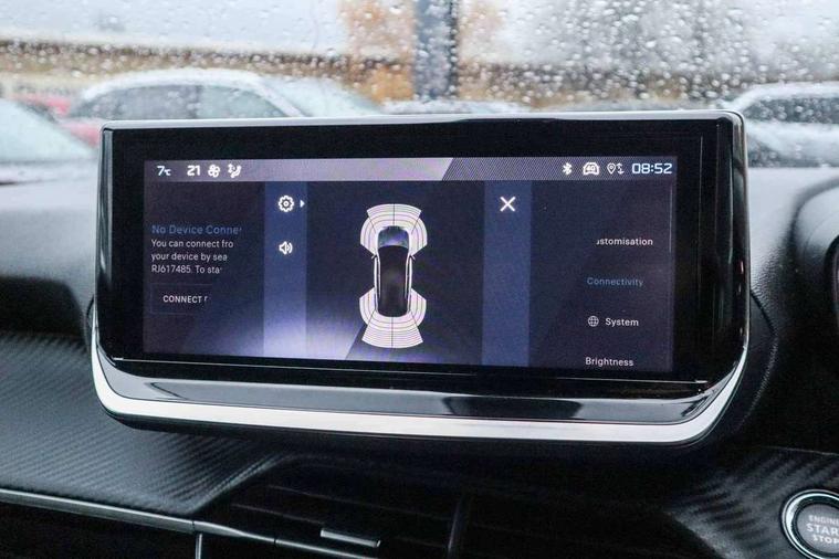 Bluetooth telephone facility, Driver attention warning, E-call, Exterior temperature indicator with ice warning, Front and rear parking sensors, Lane keep assist, Multi function trip computer, PEUGEOT i-Cockpit with 10" high definition capacitive touchscreen, PEUGEOT i-Cockpit with compact steering wheel, PEUGEOT i-Cockpit with configurable headup instrument panel, Programmable cruise control and speed limiter, Speed limit recognition and recommendation, Wireless mirror screen with apple carplay and android auto, Petrol Particulate Filter, 1x USB-C socket in rear and 1x USB-A socket in rear, 2 USB-C ports in the front, 6 speakers radio with mp3 compatible, DAB Radio (Digital Audio Broadcasting), 2 X Rear number plate lights, Automatic hazard light activation upon heavy brake application, Black front wing trim with gloss black detail, Body coloured exterior door handles, Colour coded rear roof spoiler, Colour coded roof, Dark tinted rear side and tailgate windows, Diamond black mirror shells, Eco LED headlights, Electric, heated, and power folding door mirrors, Electrochrome rear view mirror, Front bumper - Meteor grey lower trim, Gloss black finish on B pillar, Gloss black rear cluster connecting strip, Gloss black roof bars, Headlights left on audible warning, LED daytime running lights with distinctive 3 claw signature, LED side indicator lights integrated into door mirrors, LED third brake light, Model designation badges front and rear, One touch electric front/rear windows with pinch protection, Radiator grille - Body coloured top edge trim, Radiator grille - body coloured vertical chequered grille, Rear full LED 3D peugeot signature claw effect lights with daylight function, Rear reversing lights, Rear side wing doors, Rear windscreen wiper triggered automatically in reverse gear, Tailgate with heated rear windscreen and wiper blade, Wheel arch extensions, 1/3 to 2/3 split folding rear seats, 12V socket, 3 seat bench in 2nd row, Automatic air conditioning with pollen and active carbon filter, Central front armrest with storage compartment, Driver and front passenger comfort seats, Driver seat manual adjustment - height, longitudinal and back rest angle, Electric power steering with reach and rake adjustable steering column, Front LED interior light with 2 reading spotlights and rear interior light with timer, Front passenger seat manual adjustment - height, longitudinal and back rest angle, Gear lever top - manual in full grain leather, Gear shift indicator, High centre console, Leather steering wheel, Multifunction steering wheel, Piano keys: Gloss black and chrome toggle switches to access main functions of the vehicle and touchscreen functions, Roof lining - Mistral black, Seatbelt unfastened on the move audible and visual alert for front and rear seats, Single front passenger seat, Tri material cloth/leather effect upholstery, Two position modular boot floor, Visibility pack - 2008, 2x 2nd row ISOFIX child seat mountings, ABS (Anti-lock Braking System) with EBD (Electronic Brakeforce Distribution) and EBA (Emergency Braking Assistance), Active safety brake with night function/cyclists/pedestrians, Adaptive driver and front passenger airbags with passenger airbag deactivation function, Child locking functionality on rear doors, Driver/front passenger side airbags, Electric parking brake, ESP (Electronic Stability Program) + Hill Start Assist, Front and rear curtain airbags, Front and rear disc brakes, Front and rear three-point retractable seatbelts, with force limiters, Front optimised safety headrests and rear retractable headrests (x3), height adjustable, Tyre pressure sensor, Automatic door locking when moving off, Deadlocks, Electronic code immobiliser, Thatcham category 1 alarm, Carbon effect Dashboard, front and rear door panel finish, 17" Karakoy diamond cut alloy wheels,