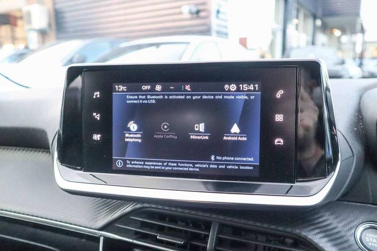 Bluetooth telephone facility, Driver attention warning, Emergency call service, Exterior temperature indicator with ice warning, Lane keep assist, Mirror screen with mirror link, apple carplay and android auto, Multi function trip computer, PEUGEOT i-Cockpit with 3.5" instrument panel display, PEUGEOT i-Cockpit with compact steering wheel, Programmable cruise control and speed limiter, Push button start, Rear parking sensors, Smart phone docking station, Speed limit recognition and recommendation, Start/stop system, 1x USB socket in front, 6 speakers radio with mp3 compatible, DAB Digital radio, Voice recognition for radio, navigation and telephony features, 2 X Rear number plate lights, Automatic hazard light activation upon heavy brake application, Automatic lights, Automatic windscreen wipers, Body coloured exterior door handles, Dark tinted rear side and tailgate windows, Diamond black rear spoiler (roof), Eco LED headlights, Electric front windows + one touch + anti-pinch, Electric rear windows with one touch/anti-pinch, Electrically adjustable, heated and power folding door mirrors, Electrochrome rear view mirror, Follow me home headlights, Gloss black rear cluster connecting strip, Headlights left on audible warning, LED daytime running lights with distinctive tooth design, LED third brake light, Model designation badges front and rear, Nera black door mirror shells, Radiator grille chrome chequered, Rear reversing lights, Rear side wing doors, Rear windscreen wiper triggered automatically in reverse gear, Roof mounted aerial, Roof spoiler, Single exhaust tailpipe, Tailgate with heated rear windscreen and wiper blade, Variable front intermittent wipers, 1/3 to 2/3 split folding rear seats, 12V socket, 3 seat bench in 2nd row, Automatic air conditioning, Driver and front passenger comfort seats, Driver and front passenger seat manual adjustment in longitudinal and back rest angle, Driver seat mechanical height adjustment, Electric power steering with reach and rake adjustable steering column, Front interior light with 2 reading spotlights, Gear shift indicator, Leather steering wheel, Low centre console, Map pockets on the backs of the front seats, Piano keys gloss black plated toggle switches to access main functions of the vehicle, Rear centre headrest, Roof lining - light grey, Seatbelt unfastened on the move audible and visual alert for front and rear seats, Single front passenger seat, Tri material cloth upholstery, 2x Isofix child seat fitting on outer rear seats, 3 rear 3 point seatbelts, ABS (Anti-lock Braking System) with EBD (Electronic Brakeforce Distribution) and EBA (Emergency Braking Assistance), Adaptive driver and front passenger airbags with passenger airbag deactivation function, Child locking functionality on rear doors, Driver/front passenger side airbags, ESP with Hill Assist, Front and rear curtain airbags, Front and rear disc brakes, Front optimised safety headrests and 3 x rear retractable headrests with height adjustable, Front three point retractable seatbelts with force limiters, Manual parking brake, Pedestrians active safety brake, Tyre pressure sensor, Acoustic vehicle alert system (AVAS), Automatic door locking when moving off, Deadlock, Electronic code immobiliser, Remote central locking, Thatcham cat. 1 alarm with anti lift sensor, Carbon effect Dashboard, front and rear door panel finish, 16" Soho diamond cut alloy wheels,