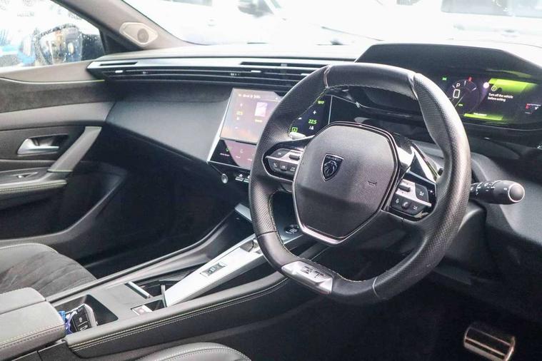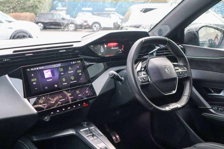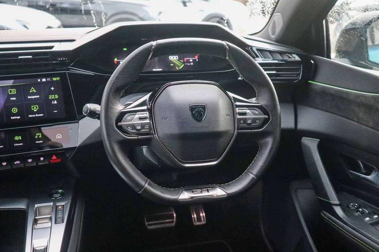 Bluetooth telephone facility, Compact automatic gearbox impulse selector, Driver attention warning, Driver's profile setting, Emergency call service, Extended traffic sign recognition, Exterior temperature indicator with ice warning, Front and rear parking sensors, Intelligent speed adaptation, Lane keep assist, Multi driving mode selector - Eco / Normal / Sport mode selector, Multi function trip computer, PEUGEOT i-Cockpit with 10" 3D digital customisable instrument panel display, PEUGEOT i-Cockpit with 10.0" high definition (HD) capacitive touchscreen, PEUGEOT i-Cockpit with compact steering wheel, PEUGEOT i-Connect Advanced - Over the air updates, PEUGEOT SOS and assistance, Push button start, Speed limit recognition and recommendation, Wifi and voice recognition, Wireless apple car play/android Auto, 2x USB sockets in front, 2x USB sockets in rear, DAB Digital radio, PEUGEOT i-Cockpit with PEUGEOT configurable i-Toggles, 3rd brake light, 408 Model designation badges on front and rear, Acoustic laminated front windows, Acoustic tinted windscreen, Automatic hazard light activation upon heavy brake application, Body colour door handles, Body colour rear spoiler, Dark tinted rear side and tailgate windows, Electric, heated, and power folding door mirrors, Frameless electrochrome rear view mirror, Front and rear electric windows with one touch/anti pinch, Front grille with vertical body colour stamping, Full LED matrix headlights with automatic adjustment, Gloss black finish B pillar, Gloss black rear cluster connecting strip, GT model designation badging on tailgate, High beam assist, LED rear number plate lights, LED side indicator lights integrated into door mirrors, Lower body and wheel arch "SUV style" protection, Nera black door mirrors, PEUGEOT shield on front doors, PEUGEOT signature LED front daytime running lights incorporating indicators, Rear bumper grained black, Rear full LED 3D Peugeot new claw effect lights with sequential welcome sequence upon unlocking the vehicle, Rear reversing lights, Rear side wing doors, Roof mounted 'fin' style antenna, Smart electric tailgate, Tailgate with heated rear windscreen and wiper blade, 1/3 2/3 'Magic Flat' folding rear seats with controls located in the boot, 2x 12V sockets, 3 seat bench in 2nd row, 4 Grab handles retractable and damped, 8 Colour personalisable ambient lighting, Air purification system 'Clean Cabin', Aluminium door sills and boot sill, Aluminium pedals and footrest, Arch design central console with storage, Central front armrest with storage compartment, Dual Zone automatic air conditioning with AQS 3, Dynamic front seats, Electric power steering with reach and rake adjustable steering column, Front central console with two cup holders, Gloss black waistbelt (window weather strips), Glovebox with LED lighting, Heated steering wheel, High air vent system, Luggage cover, Luxury carpet mats with adamite green stitching, Multifunction full grain leather steering wheel with admite green stitching & GT badging, Piano keys toggle switches to access main functions, Roof lining - Mistral black, Seatbelt unfastened on the move audible and visual alert for front and rear seats, Single front passenger seat, Ski hatch with central rear armrest with cup holder, Steering wheel mounted gearshift paddles, Sunvisor with concealable vanity mirrors with LED lighting, Driver Sport Pack - 408, Visibility pack - 408, 2x Isofix child seat fitting on outer rear seats, 3x3 point rear seat belts, ABS + EBD + EBA, Active safety brake with night function/cyclists/pedestrians, Adaptive driver and front passenger airbags with passenger airbag deactivation function, Advanced emergency braking system (Video - AEB), Automatic post collision braking, Child locks on rear doors, Driver/front passenger side airbags, Electronic parking brake, ESP, Front and outer rear seatbelts with pyrotechnic pretensioners, Front and rear curtain airbags, Front and rear disc brakes, Front optimised safety headrests and rear retractable headrests (x3), height adjustable, Front three point retractable seatbelts with force limiters, Hill start assist, Tyre under inflation monitoring and indirect detection with visual indicator and warning sound, 2x keys, Anti-theft wheel bolts, Automatic door locking when moving off, Deadlocking system, Electronic code immobiliser, Locking wheel nuts, Peugeot open and go system includes keyless entry with proximity locking and unlocking, Thatcham cat. 1 alarm with anti lift sensor, 19" Graphite diamond cut alloy wheels in Onyx black gloss, Alloy wheel 'star' centre cap, Tyre puncture repair kit,