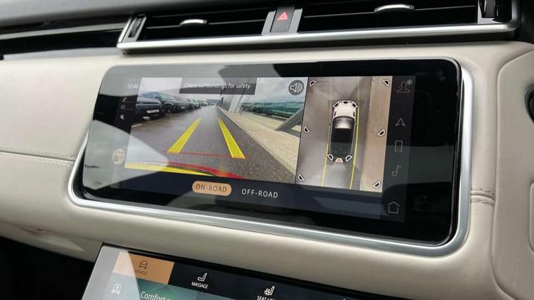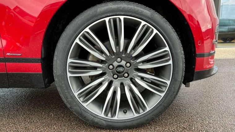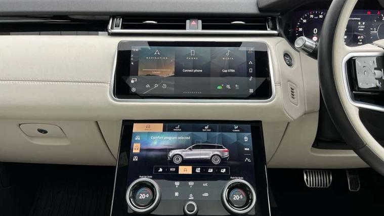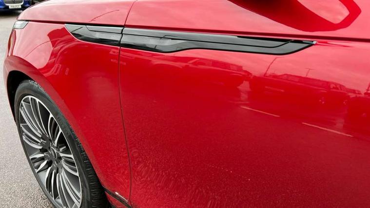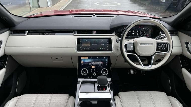 10" touch screen, Adaptive cruise control with steering assist, Android Auto, Apple car play, Blind spot assist, Bluetooth connectivity, Brake pad wear indicator warning light, Driver condition monitor, InControl remote, Interactive Driver display instrument cluster, Land Rover InControl apps, Lane keep assist, Pivi pro connected includes upgraded infotainment, smart settings, connected navigation pro, Nuance speech licence, Push button start, Rear collision monitor, Rear traffic monitor, Service indicator, Speed proportional electronic power assisted steering (EPAS), Traffic sign recognition with adaptive speed limiter, Trip computer, Voice control system, 8 speed automatic transmission, Adaptive dynamics, All terrain progress control, Electronic air suspension, Open differential with torque vectoring by braking, Single speed transfer box, Digital Audio Broadcast radio-DAB, Steering wheel mounted controls, Acoustic laminated windscreen, Adaptive front lighting system, Auto dimming interior rear view mirror, Automatic headlamp levelling, Automatic headlights, Body coloured bumpers, Boot protection plate, Electric heated/power fold door mirrors with approach lights and auto dimming driver side, Electric windows with one touch open/close and anti trap, Flush deployable exterior door handles, Follow me home headlights, Heated rear window with timer, Heated windscreen, HSE badge, Metal load space scuff plates, Rain sensor windscreen wipers, Rear fog lights, Rear wash/wipe, Tailgate/boot lid spoiler, Trailer stability assist, Velar and R-dynamic badge, Ambient lighting, Bright metal pedals, Driver/passenger sunvisors with illuminated vanity mirrors, Electric adjustable steering column, Isofix system on outer rear seats, Loadspace cover, Overhead lighting console, Overhead stowage for sunglasses, Passive front headrests, Rear air vents, Rear centre headrest, Satin chrome gearshift paddles, Twin front cupholders, Twin sliding front centre armrest, Online pack with data plan - Velar, 355mm front brakes and 325mm rear brakes, 3x3 point rear seatbelts, Anti-lock braking system (ABS), Cornering brake control, Curtain airbags, Customer configurable autolock, Door side intrusion beams, Driver airbag, DSC - Dynamic Stability Control, Electronic brake force distribution, Electronic parking brake, Electronic traction control, Emergency brake assist, Emergency braking, Front and rear seatbelt reminder, Hill descent control, Hill launch assist, Low traction launch, Passenger airbag, Power operated child locks, Rear airbags, Roll stability control, Side airbags, Tyre pressure monitoring system, Unpainted brake calipers, Global lock and unlock switch on driver door, Immobiliser, Intrusion sensor, Keyless entry, Lock only switch on front passenger door, Locking wheel nuts, Perimetric alarm, Remote central locking,