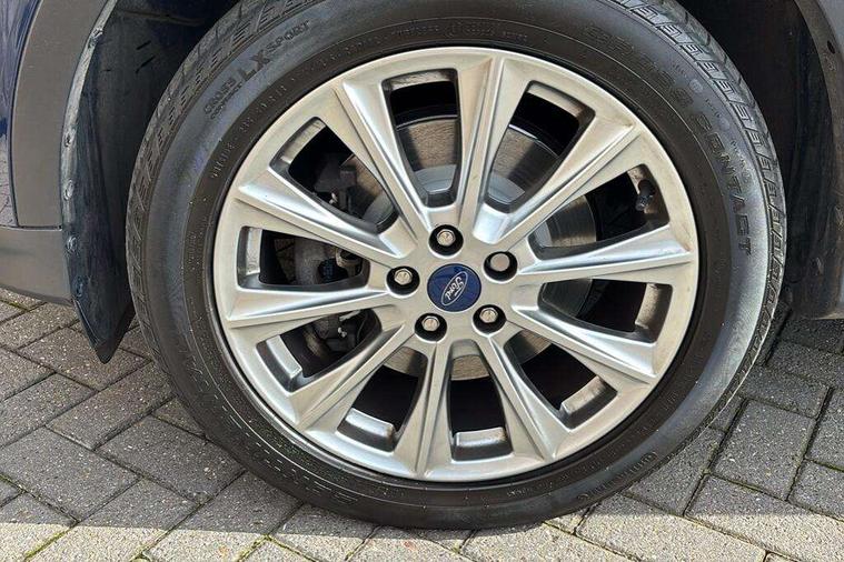 Apple car play/Android Auto, EPAS, Hands free telephone, Trip computer, Auxiliary socket for external device, Remote audio controls on steering wheel, USB connection, Auto dimming rear view mirror, Automatic halogen headlights with LED daytime running lights, Body colour bumpers, Body colour rear spoiler, Electrically operated and heated door mirrors with side indicators, Electrically operated front and rear windows with global closing, Front fog lights, Front scuff plate, Power folding door mirrors, Quickclear heated windscreen, Rain sensor windscreen wipers, Tailgate wash/wipe, Twin exhausts and rear diffuser, 6 way manually adjustable passenger seat with lumbar support, 60/40 split/folding rear back and cushion, Auxiliary power socket in luggage area, Centre console with stowage tray/bottle holder/CD stowage/front and rear 12V power point, Driver/passenger front seatback pockets, Dual electronic automatic temperature control, Folding rear centre armrest, Footwell courtesy lights front and rear, Front floor mats, Front head restraints, Front overhead courtesy lights with theatre style dimming and delay, Front/rear reading lights, Gearshift paddles, Isofix system on outer rear seats, Leather steering wheel and gear knob, Multi-colour ambient interior lighting, Part leather upholstery, Reach + rake adjustable steering column, Rear floor mats, Rear head restraints, Sports style front seats, Stowage unit in upper instrument panel, Tie down hooks, Tonneau cover, Variable intensity instrument illumination, Appearance pack - Kuga, 3 point seatbelts on all 3 rear seats, ABS/EBD, Airbags - front driver/passenger, front and rear curtain, Drivers knee airbag, EBA, Electric traction assist system, Electronic Stability Programme, Front passenger airbag deactivation switch, Hill start assist, Intelligent Protection System (IPS), Tyre pressure monitoring system, Immobiliser, Keyless entry, Keyless start with 'Ford Power' starter button, Locking wheel nuts, MyKey system, Remote central locking, Thatcham Cat.1 alarm, Mini steel spare wheel,