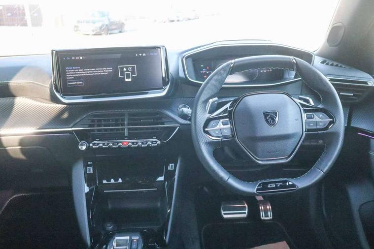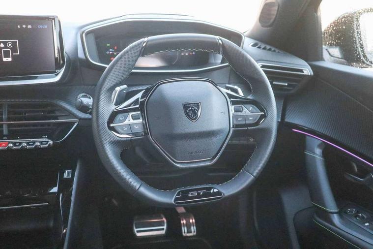 Bluetooth telephone facility, Driver attention warning, E-call, Exterior temperature indicator with ice warning, Front and rear parking sensors, Multi function trip computer, PEUGEOT i-Cockpit with 10" high definition capacitive touchscreen, PEUGEOT i-Cockpit with compact steering wheel, PEUGEOT i-Cockpit with configurable 3D headup instrument panel, PEUGEOT SOS and assistance, Speed limit recognition and recommendation, Wireless mirror screen with mirror link, apple carplay and android auto, Petrol Particulate Filter, 1x USB-C socket in rear and 1x USB-A socket in rear, 2 USB-C ports in the front, 6 speakers radio with mp3 compatible, DAB Radio (Digital Audio Broadcasting), Voice recognition for radio, navigation and telephony features, 2 X Rear number plate lights, Aluminium door sill scuff plates with peugeot lettering, Automatic hazard light activation upon heavy brake application, Black diamond roof, Black front wing trim with gloss black detail and GT badging, Body coloured exterior door handles, Dark tinted rear side and tailgate windows, Diamond black mirror shells, Diamond black rear roof spoiler, Electric, heated, and power folding door mirrors, Frameless electrochrome interior rear view mirror, Front bumper - Meteor grey lower trim, Full LED headlights with smartbeam assist with auto height adjustment, Gloss black finish on B pillar, Gloss black rear cluster connecting strip, Gloss black roof bars, Gloss black window surround, GT model designation badging on tailgate, Headlights left on audible warning, LED daytime running lights with distinctive 3 claw signature, LED side indicator lights integrated into door mirrors, LED third brake light, Model designation badges front and rear, One touch electric front/rear windows with pinch protection, Radiator grille - body coloured vertical chequered grille, Radiator grille - gloss black top edge trim, Rear full LED 3D peugeot signature claw effect lights with daylight function, Rear reversing lights, Rear side wing doors, Rear windscreen wiper triggered automatically in reverse gear, Reinforcement of the front bumper, Tailgate with heated rear windscreen and wiper blade, Twin chromed exhaust pipes, Wheel arch extensions, 1/3 to 2/3 split folding rear seats, 12V socket, 3 seat bench in 2nd row, 8 Colour personalisable ambient lighting, Automatic air conditioning with pollen and active carbon filter, Central front armrest with storage compartment, Driver and front passenger sport seats, Electric power steering with reach and rake adjustable steering column, Front and rear carpet mats in black, Front LED interior light with 2 reading spotlights and rear interior light with timer, Front passenger seat manual adjustment - height, longitudinal and back rest angle, High centre console, ISOFIX child seat mounting points on passenger seat, Mistral full-grain perforated leather steering wheel with Lime Green stitch detail and satin chrome 'GT' emblem, Multifunction steering wheel, Piano keys: Gloss black and chrome toggle switches to access main functions of the vehicle and touchscreen functions, Roof lining - Mistral black, Seatbelt unfastened on the move audible and visual alert for front and rear seats, Single front passenger seat, Two position modular boot floor, Visibility pack - 2008, 2x 2nd row ISOFIX child seat mountings, ABS (Anti-lock Braking System) with EBD (Electronic Brakeforce Distribution) and EBA (Emergency Braking Assistance), Active safety brake with night function/cyclists/pedestrians, Adaptive driver and front passenger airbags with passenger airbag deactivation function, Advanced emergency braking system (AEB) with enhanced camera with the high beam and radar, Child locking functionality on rear doors, Driver/front passenger side airbags, Electric parking brake, ESP (Electronic Stability Program) + Hill Start Assist, Front and rear curtain airbags, Front and rear disc brakes, Front and rear three-point retractable seatbelts, with force limiters, Front optimised safety headrests and rear retractable headrests (x3), height adjustable, Tyre pressure sensor, Automatic door locking when moving off, Deadlocks, Electronic code immobiliser, Thatcham category 1 alarm, Carbon effect Dashboard, front and rear door panel finish,