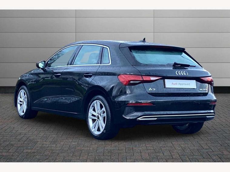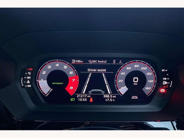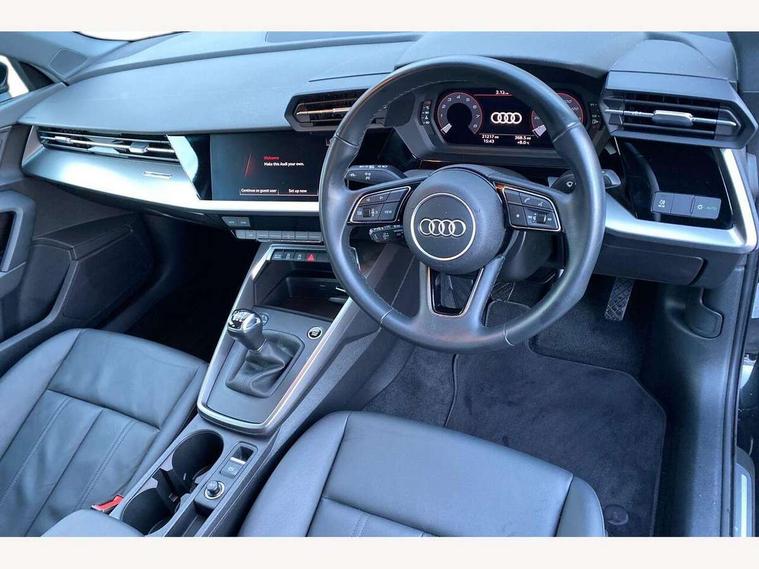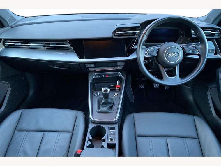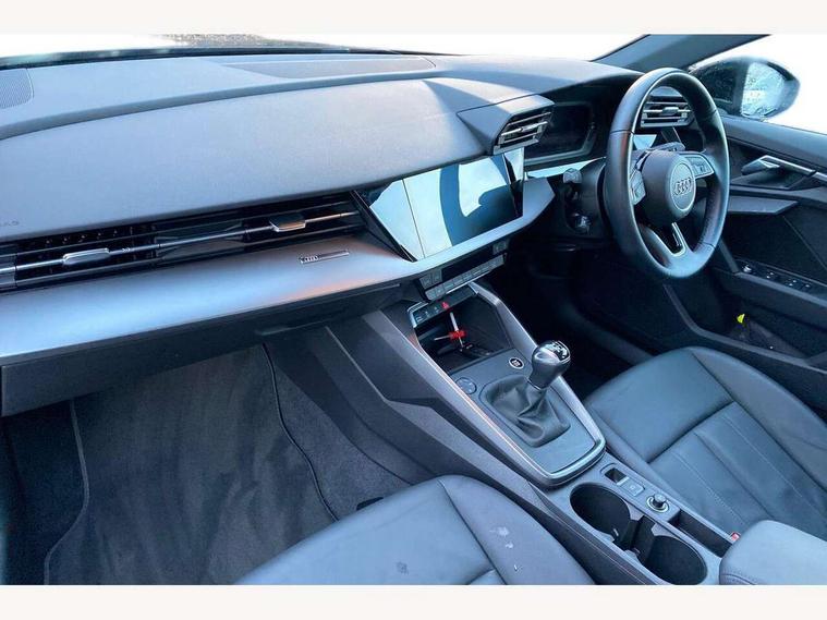Audi drive select (Auto, Comfort, Dynamic, Efficiency and Individual), Audi smartphone interface, Audi Virtual Cockpit - 10.25" digital and colour instrument cluster, Automatic start/stop system with recuperation, Bluetooth interface, Collision avoidance assistant, Cruise control, e-Call (emergency call), Electromechanical power speed sensitive steering, Lane departure warning system, MMI Navigation Plus with high resolution 10.1" colour touch screen display, Rear parking sensors, Service indicator, Trip computer, Voice control system with natural language interaction, Standard suspension, 2xUSB-C connection with data and charging functions, 6 passive loudspeakers, DAB Digital radio, 3rd brake light, Acoustic glass windscreen, Aluminium window trim, Auto dimming frameless rear view mirror, Body colour exterior mirrors, Body colour roof spoiler, Electrically adjustable/heated/folding/auto dimming door mirrors with integrated LED indications + kerb view function for passenger side, Front electric windows, LED daytime running lights, LED headlights and halogen rear lights, Light and rain sensors, Rear electric windows, Rear side wing doors, Rear window, rear door windows and rear side windows in clear glass, Rear wiper, 12V socket and storage compartment in front centre console, 3 seat bench in 2nd row, 40/20/40 split folding rear seat bench with cupholder, Dual zone electronic climate control, Front and rear centre armrest, Front and rear headrests, Front door sill trims with aluminium inlay, Front/rear floor mats, Height and reach adjustable steering wheel, Interior lighting - Front and rear roof module including reading lights, glove compartment light and right hand side, Luggage compartment floor covering, Manual boot compartment lid, Manually adjustable front seats, Seat side bolsters, Single front passenger seat, Steel grey cloth headlining, Twin leather upholstery, Aluminium interior elements pack - A3 Sportback, Sport styling pack - A3 Sportback, 3x3 point rear seat belts, Audi pre sense front, Driver and front passenger airbag with passenger airbag deactivation, Electronic Stabilisation Control (ESC) including ABS, ASR and EDL, First aid kit with warning triangle and 2 safety vests, Front side airbags with head airbags and interaction airbag, Pre-sense front with pedestrian and cyclist detection, Seatbelt monitoring, Tyre pressure loss indicator, Anti theft alarm, Anti-theft wheel bolts, Electronically operated child lock, Immobiliser, Remote control central locking, Inlays with silk effect paint in platinum grey,