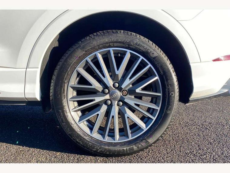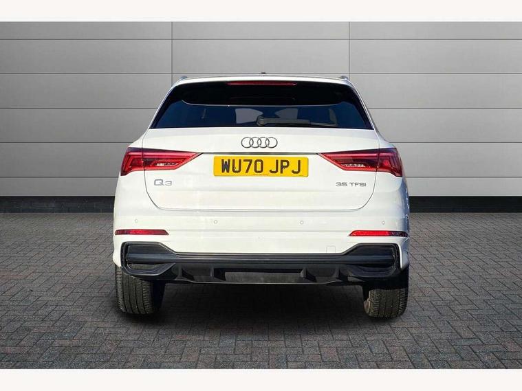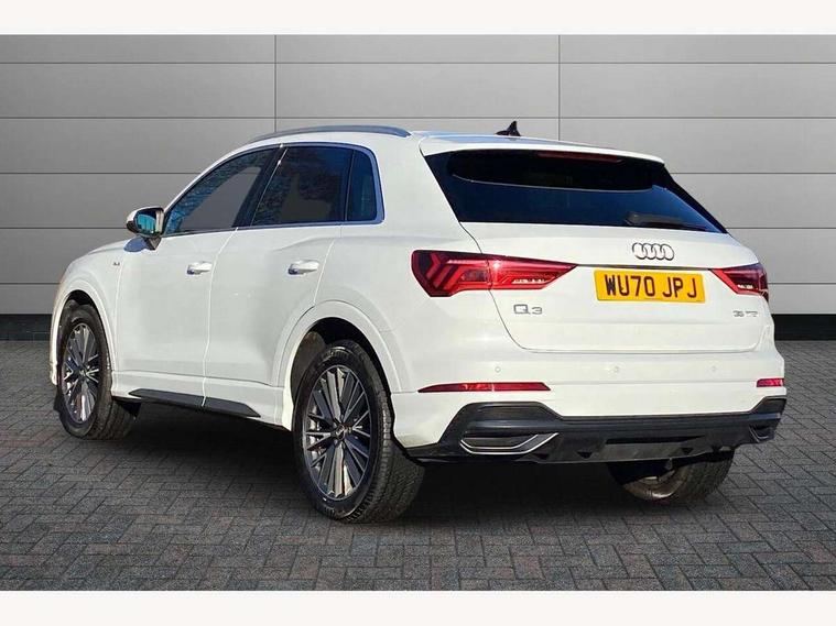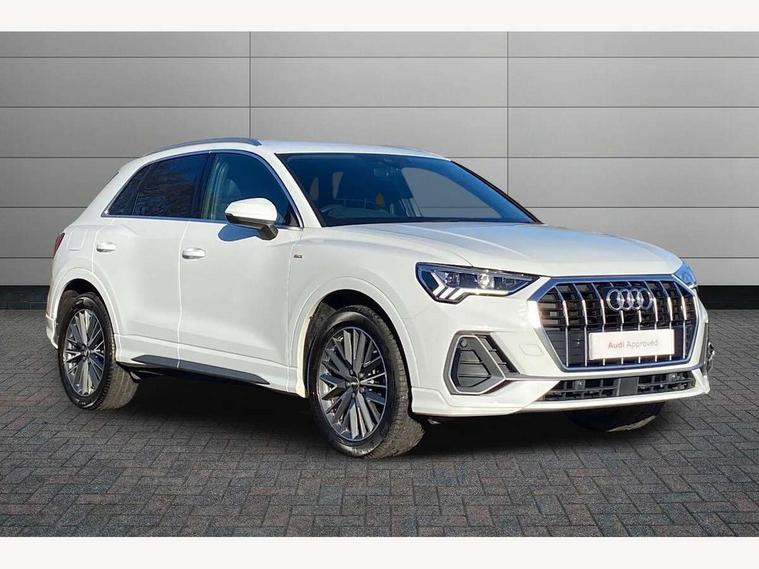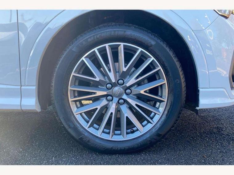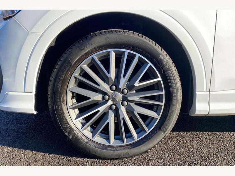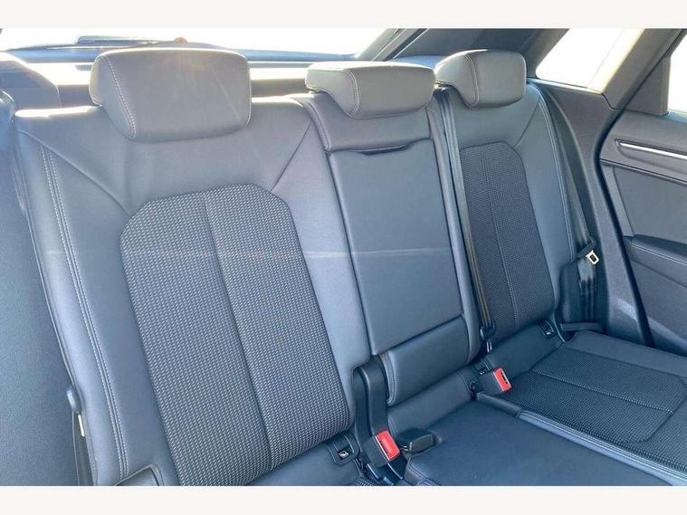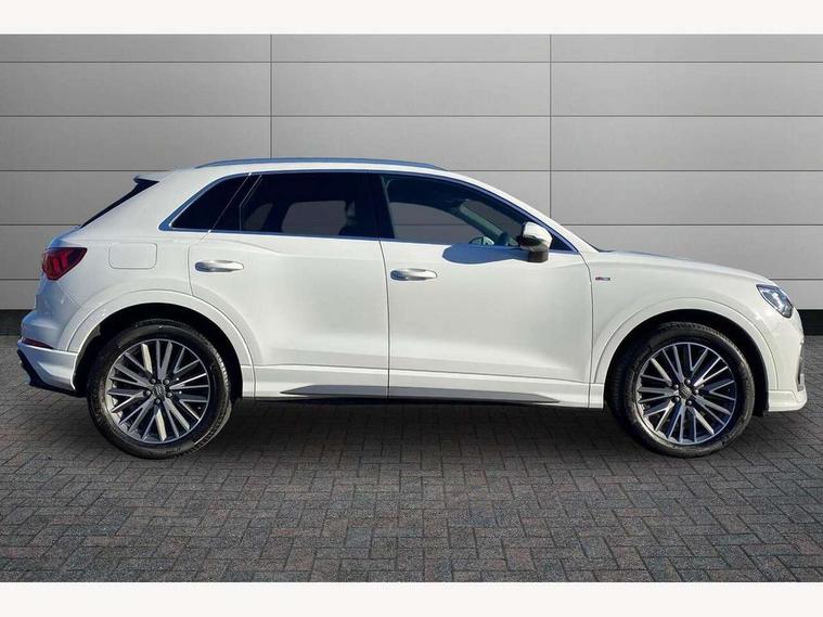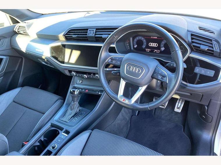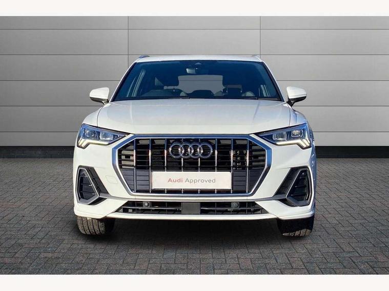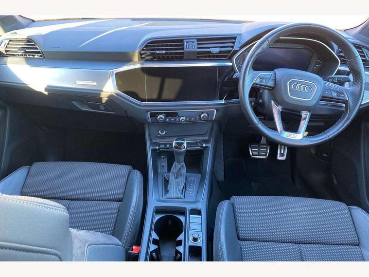 Audi connect safety and service (e-call), Audi drive select, Audi lane departure warning, Audi side assist, Audi smartphone interface includes wireless Apple carplay/Android Auto, Audi Virtual Cockpit - 10.25" display, Bluetooth interface, Camera based traffic sign recognition, MMI Navigation Plus with high resolution 10.1 inch touchscreen colour display, Power operated tailgate, Progressive steering, Service interval indicator, Start stop system with recuperation, Voice control system with natural language interaction, 48V Mild hybrid technology, Sports suspension, 1 x USB type C and 1 USB type A charging points, 6 passive loudspeakers, DAB digital radio module, Acoustic windscreen, Aluminium roof rails, Aluminium window trim, Auto dimming frameless rear view mirror, Body coloured bumpers, Electrically folding, adjustable and heated door mirrors with integrated LED side indicators and kerb view function for passenger side, Front and rear electric windows, Front fog lights, Front side air inlets in matt platinum grey, Front spoiler blade in matt platinum grey, Grille vertical bars in aluminium silver/Matt, High gloss black finish B and C pillars, LED headlights with LED daytime running lights and dynamic rear indicator, LED rear lights, Privacy glass dark tinted rear and rear-side windows (from B-pillar backwards), Rain and light sensors, Rear diffuser strip in matt titanium black, S line badges on front wings, S Line front and rear bumpers, Side skirt insert in matt Platinium grey, Silver chrome grille surround, Titanium black radiator grille, 12V socket in rear centre console, 40:20:40 folding with manual adjustment for 60:40 forwards/backwards position and backrest angle, Adjustable rear seat bench/backrest with centre armrest and cupholder, Black cloth headlining, Dual zone electronic climate control, Front and rear black floor mats with contrast stitching in rock grey, Front and rear headrests, Front and rear roof module including reading lights, Front centre armrest, Glove compartment lighting, Height and reach adjustable steering wheel, Illuminated door sill trims with S logo, ISOFIX child seat mounting for front passenger with airbag deactivation and outer rear seat including top tether attachment point for outer rear seats, Luggage compartment light, Manual front seats with height adjustment, Perforated leather gearknob, Stainless steel luggage compartment sill finisher, Stainless steel pedals, Tool kit, Non smoking pack - Q3, 3x3 point rear seatbelts, 6 airbags - Driver, front passenger, curtain and side windows, Electrically operated child locks on rear doors, Electromechanical parking brake, Electronic stabilisation control including ABS, ASR and EDL, Hill descent control, Hill hold assist, Pre sense basic, Seatbelt monitoring, Tyre pressure warning, Warning triangle and first aid kit, Anti theft alarm, Anti theft wheel bolts, Audi pre-sense front with pedestrain and cyclist recognition, Remote central locking, Dark matt brushed aluminium inlay, Leatherette door armrest, MMI touch colour display in glass look, black with surround in aluminium look, Tyre repair kit,