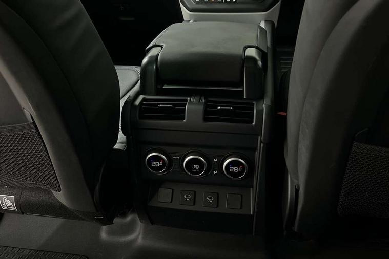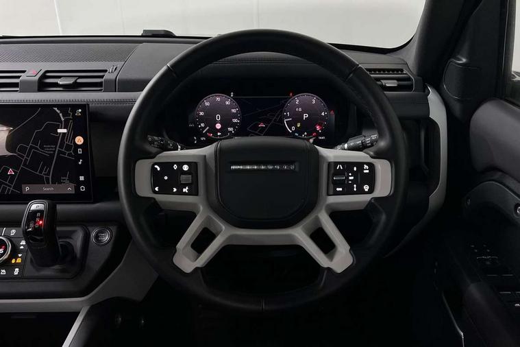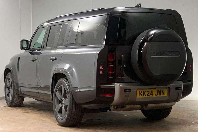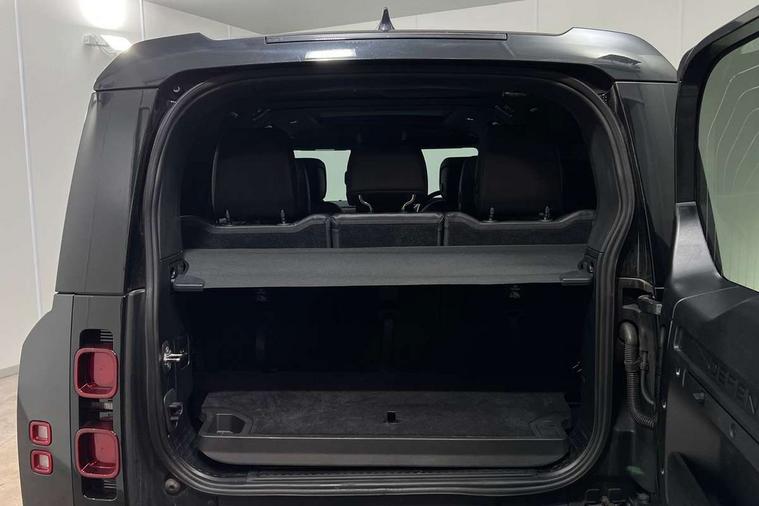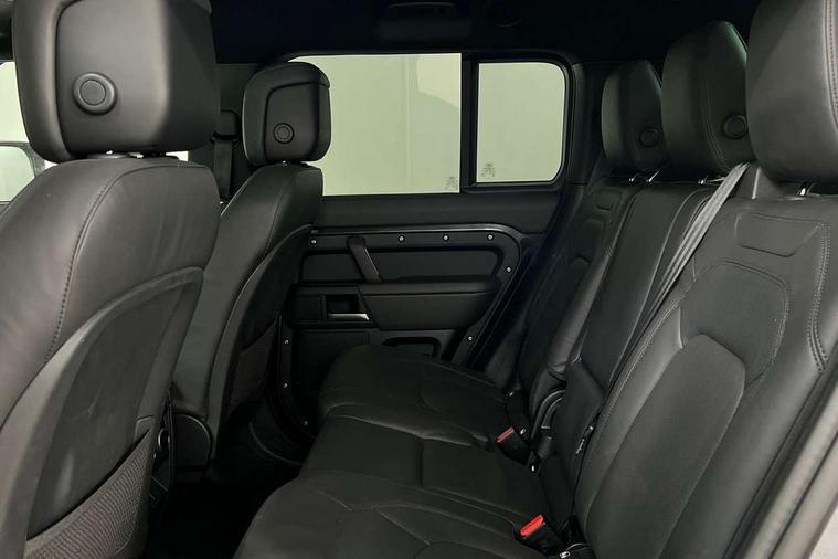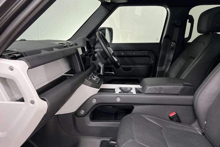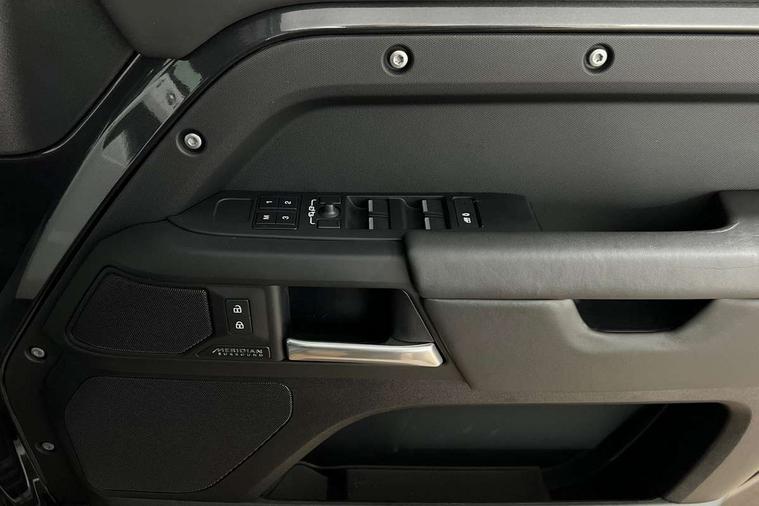 1 x USB-C (power only) & 1 x USB-C (power & data) in Row 1, 2 x USB-C in Row 2, 11.4" touchscreen, 2 x USB-C in Row 3, 360 degree parking aid, 3D Surround Camera with 360 View, 180 Rear View, Front Traffic Detection, Forward Vehicle Guidance, Tow Hitch Assist and clear sight Ground View, Adaptive cruise control, Android Auto, Apple CarPlay, Blind spot assist, Bluetooth system, Brake pad wear indicator, Clear exit monitor, Connected navigation pro, Driver condition monitor, Electric power assisted steering (EPAS), Interactive driver display, Lane keep assist, Push button start, Rear collision monitor, Rear traffic monitor, Traffic sign recognition with adaptive speed limiter, Trip computer, Wireless device charging, 8 speed automatic transmission, Adaptive dynamics, All wheel drive system, Electronic air suspension, Twin speed transfer box, DAB Radio (Digital Audio Broadcasting), Meridian 700w surround sound audio system with 15 speakers, Pivi pro connected, Automatic headlight levelling, Automatic headlights, Black exposed rear recovery eyes, Black roof rails, Body coloured bonnet, Centre high mounted stop light, Electric heated/power fold door mirrors with approach lights and auto dimming driver side, Electric windows with one touch open/close and anti-trap, Follow me home lighting, Front fog lights, Heated rear window with timer, Heated windscreen, Illuminated metal treadplates with brand name script, LED tail lights, Matrix LED headlights with signature DRL, Privacy glass, Puddle lights, Rain sensing windscreen wipers, Rear fog lights, Rear side wing doors, Rear wiper, Side hinged tailgate, Sliding panoramic roof, Standard tail door, Trailer stability assist, 12V power socket in loadspace, 3 seat bench in 2nd row, 3 seat bench in third row, Air quality sensor, Cabin Air Purification plus, Configurable cabin lighting, Durable rubber cabin flooring, Durable rubber loadspace flooring, Electric reach + rake adjustable steering column, Electrically adjustable steering column, Extended leather upgrade, Footwell lights, Front passenger isofix child seat attachment, Heated steering wheel, Loadspace cover, Loadspace Hook, Multifunction steering wheel, Overhead stowage for sunglasses, Rear headrests, Rear ISOFIX, Rear reading lights, Single front passenger seat, Soft close tail door, Storage glovebox, Sunvisors with illuminated vanity mirrors, Twin front cupholders, Non-smoker package, Online pack with data plan - Defender, 5 x 3 point seatbelts, ABS, Brake hold function, Cornering brake control (CBC), Customer configurable autolock, Driver and passenger airbags, DSC - Dynamic Stability Control, EBD - Electronic brakeforce distribution, Electric parking brake (EPB), Emergency brake assist, Emergency braking, ESP + traction control, Front airbags with passenger seat occupant detector, HDC - Hill descent control, Hill launch assist, Low traction launch, Power operated child locks, Remote for (e-Call, Optimised assistance call, InControl app, Climate, beep and flash and door), RSC - Roll stability control, Seat belt reminder, TPMS (Tyre pressure monitoring system), Alarm, Immobiliser, Intrusion sensor, Keyless entry, Locking wheel nuts, Secure tracker pro, All season tyres,