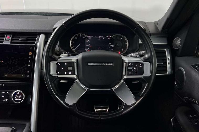 11.4" touchscreen, 3D surround camera, Adaptive cruise control, Android Auto, Apple car play, Blind spot assist, Driver condition monitor, Electric power assisted steering (EPAS), Emergency services call system, Front and rear parking aid, Lane keep assist, Power inner tailgate, Push button start, Rear collision monitor, Rear traffic monitor, Remote, Remote boot release, Service interval indicator, Speed proportional steering, Sportshift selector, Stop/start system, Traffic sign recognition with adaptive speed limiter, Trip computer, Wade Sensing, Adaptive dynamics, Dynamic stability control, Electronic air suspension, Front axle open differential, Digital Audio Broadcast radio-DAB, Dynamic volume control, Pivi pro connected, USB/aux input socket, Acoustic laminated windscreen, Animated directional indicators, Auto dimming interior rear view mirror, Automatic headlight levelling, Automatic headlights, Body colour bumpers, Body colour door handles, Centre high mounted stop light, D300 badge, Electric heated/power fold memory door mirrors with approach lights and auto dimming driver side, Electric windows with one touch open/close and anti-trap, Heated rear window, Heated windscreen, LED darkend tail lights, Metal treadplates with R-Dynamic branding, Narvik black Discovery script, Privacy glass, Puddle lights, Rain sensing windscreen wipers, Rear fog lights, Rear side wing doors, Rear wash/wipe, Trailer stability assist, Variable intermittent wiper, 12V power sockets, 12V USB charging socket in loadspace, 2 seat bench in 3rd row, 3 seat bench in 2nd row, Central hinged twin lidded storage, Ebony morzine headlining, First and second row door bins, Footwell lights, Front and rear 12V with front USB, Front passenger seat isofix location point, In-facia storage, Isofix child seat preparation for front passenger seat, Loadspace cover, Loadspace Hook, Loadspace light, Lockable glovebox, Lower centre console storage, Luggage tie downs in loadspace, Multi function steering wheel, Overhead lighting console, Premium carpet mats, Rear ISOFIX, Shopping bag hook, Single front passenger seat, Storage glovebox, Sunvisors with illuminated vanity mirrors, Third row storage, Twin front cupholders with cover, USB with 12V socket in centre console, Online pack with data plan - Discovery, R-Dynamic black exterior pack - Discovery, 3x3 point rear seatbelts, Anti-lock braking system (ABS), Brake pre-fill technology, Cornering brake control, Curtain airbags, Customer configurable autolock, Driver and passenger airbags, EBD - Electronic brakeforce distribution, Electronic traction control, Emergency brake assist, Emergency braking, ESP, Front side airbags, Gradient acceleration control, Hill descent control, Hill launch assist, Power operated child locks, Rear airbags, Roll stability control, Seat belt reminder, Torque vectoring brake, Tyre pressure monitoring system, Immobiliser, Intrusion sensor, Keyless entry, Locking wheel nuts, Remote central locking, All terrain tyres,