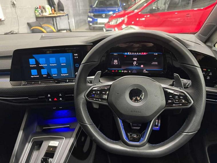 Adaptive cruise control (ACC) with speed limiter and front assist (reacting to vehicles pedestrians and cyclists), Car2X communication, Digital cockpit pro - 10.25" high resolution TFT dash display screen with customizable menus and information, Driver alert system, Driver profile selection, Dynamic road sign display, eCall - Emergency call service for SOS calls to emergency response, Lane assist, Lane change assistant, Mobile phone interface with wireless inductive charging function, Progressive steering, Speedo, rev counter, electronic odometer, trip, service interval display, exterior temperature and fuel gauge, Start/Stop function, Travel assist with emergency side assist with electrically foldable door mirrors, Warning buzzer and light for front seatbelts unfastened, Wireless app connect, 4Motion 4 wheel driver, Front differential lock, Petrol Particulate Filter, XDS electronic differential lock for improved traction and handling, Premium USB cable in choice of either Apple or Android smartphone compatibility, Ambient lighting, exterior illuminated styling elements at the sides, Auto dimming rear view mirror, Automatic headlamp activation with Coming home and Leaving home feature, Body colour bumpers, Body colour door handles, Body colour rear roof spoiler, Front and rear electric windows, Heat insulating glass windscreen, Heated rear windscreen, High level 3rd brake light, Highway light, Illuminated front grille, IQ.Light - LED Matrix headlights, dynamic headlight control with advanced high beam control matrix dipped main beam + LED DRL + 22 LED lights, LED front fog lights with 5 honeycomb design, LED License plate illumination, LED rear combination lamp inlcuding dynamic turn signal, Matt chrome effect door mirrors with integrated indicators, Rain sensor, Rear fog light on one side and reversing lights on both sides, Rear tinted glass 65% light absorbing from B pillar backwards, Rear windscreen washer and wiper with interval delay, Remote electrically heated, adjustable and foldable door mirrors, including door mirror puddle lights and reverse activated kerb-view adjustment on pa, Welcome light, 12V socket in front centre console, 12V socket in luggage compartment, 3 rear head restraints, 3 zone climate with controls in the rear, Aluminium gear knob, Ambient lighting - Customisable 30 colour ambient lighting, Black roof lining, Brushed stainless steel pedals, Centre console, Chrome plated surround to electric mirror button, window switch and air vent surrounds, Drivers and front passengers sun visors with vanity mirrors, Front + rear carpet mats, Front centre armrest with storage compartment, Front cupholders x 2, Front reading lights x 2 incorporating LED technology, Front seat lumbar support adjuster, Front sports seats, Glovebox, Height adjustable front seats, Height and reach adjustable steering wheel, Isofix child seat preparation for 2 rear child seats and front passenger seat, Luggage compartment lighting, R leather wrapped multi function sports heated steering wheel with extended paddle shift, Removable luggage compartment cover, Split folding backrest with centre armrest and unsplit rear seat bench, Woven fabric storage compartments in front and rear doors, R styling pack - Golf, 3 point height adj front seatbelts + pretensioners, 3 rear three point seatbelts, ABS, Blue brake callipers in front with R logo, Driver and front passenger airbag with front passenger airbag deactivation, Drivers and front passengers safety optimised head restraints, Electronic parking brake with auto hold, ESC (Electronic Stability Control), Extended pedestrian protection measures, Front and rear passengers curtain airbag system including front side airbags, Front disc brakes, Rear disc brakes, Two tone horn, Tyre pressure monitoring system, Alarm with interior protection and deactivation via infotainment system, Electronic engine immobiliser, Keyless entry with start/stop button on centre console, Black metal chrome decorative inserts in dash and front door trim panels, Soul dashboard, Tyre mobility kit Includes 12V compressor and tyre sealant,