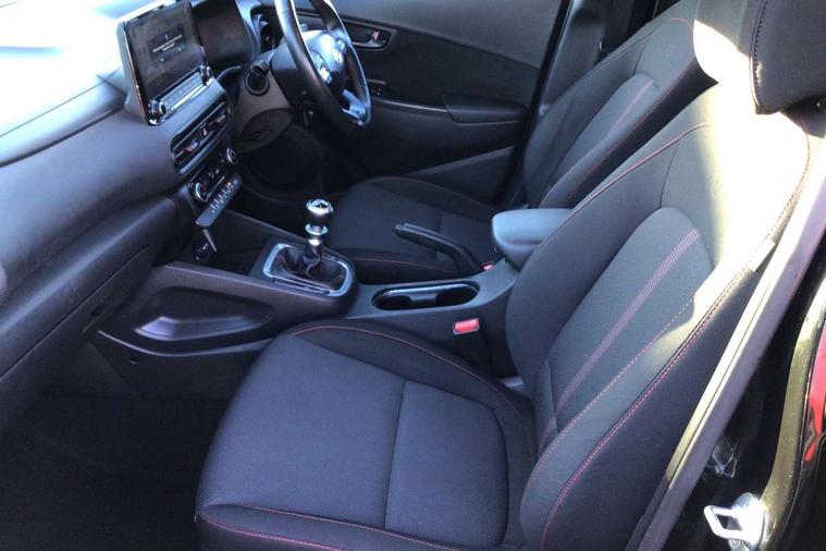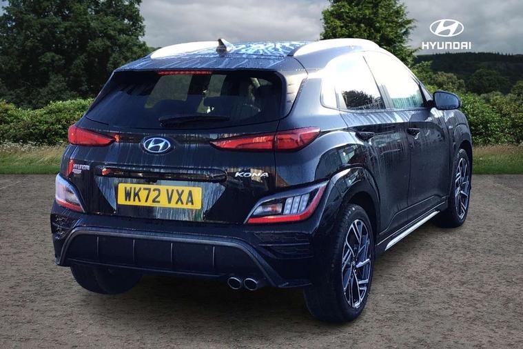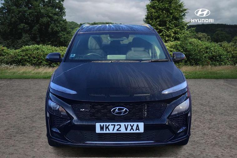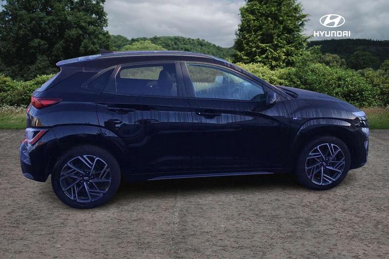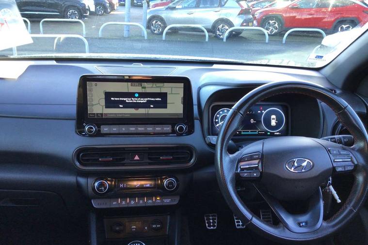 10.25" touchscreen centre console display satellite navigation with live services and mapcare, Bluetooth connectivity, Cruise control + speed limiter, Digital clock, Driver attention warning, Driver supervision instrument cluster with 10.25" LCD display, eCall emergency call system, Forward collision avoidance assist with pedestrian detection, Lane follow assist, Lane keep assist, Leading vehicle departure alert (LVDA), Parking system with rear camera and guidance system, PAS, Phone connection with apple carPlay and android auto, Rear parking sensor, Roadside assistance, Windscreen washer fluid sensor and warning indicator, Wireless phone charging pad, 6 speed intelligent manual transmission, Front and rear USB ports, Krell premium audio system with 8 speakers including external amplifier and subwoofer, RDS and Digital DAB, Steering wheel mounted audio/phone controls, Auto dimming rear view mirror, Automatic headlights with dusk sensor, Automatic windscreen wipers with rain sensor, Black radiator grille, Body colour bumpers, Body colour door mirrors and handles, Body colour side cladding, Body coloured garnish, Door mirror integrated indicators, Electric front/rear windows with drivers one touch/anti-trap, Electrically adjustable and heated door mirrors, Halogen headlights, LED daytime running lights, LED rear lights, Positioning Lights - LED, Power folding door mirrors, Privacy glass - Rear windows and tailgate, Rear roof spoiler with integrated LED brake light, Rear side wing doors, Rear skid plate - silver, Rear wiper, Roof rails, Solar glass with front door glass and windscreen shade band, Windscreen auto defog function, 12V power outlet in front console, 3 seat bench in 2nd row, 60/40 split folding rear seat, Adjustable head restraints, Air conditioning climate control, Ambient lighting, Centre interior light, Cloth upholstery, Door scuff plate, Driver and passenger front seat pockets, Driver's seat electric lumbar support, Driver's seat height adjustment, Driver/passenger sunvisors and illuminated vanity mirrors, Front interior light, Front passenger seat manual adjustments, Height/reach adjustable steering column, Isofix rear child seat fastenings, Leather wrapped steering wheel and gear knob, Luggage compartment lighting, Luggage hooks, Luggage net, Metal paint effect interior door handles, Metal pedals, N logo on the gear shift, Parcel shelf, Rear centre console with air vents, Single front passenger seat, Sunglasses holder, Vertical adjustment rear head restraints, Trailer wiring package - Kona, Airbags - front, front side and curtain airbags, Anti-lock brake system (ABS), Childproof rear door locks, Downhill brake control, EBD + Brake Assist, Electronic stability control, Fasten seatbelt reminder, Fixed 3 point for second row centre passenger seatbelt, Front seatbelt pretensioners, Height adjustable front seatbelts, Hill start assist control (HAC), Manual parking brake, Passenger airbag deactivate switch, Rear seat alert, Traction control, Tyre pressure monitoring system, Alarm/immobiliser, Deadlocks, Folding key, Locking wheel nuts, Remote central locking, 18" Alloy wheels,