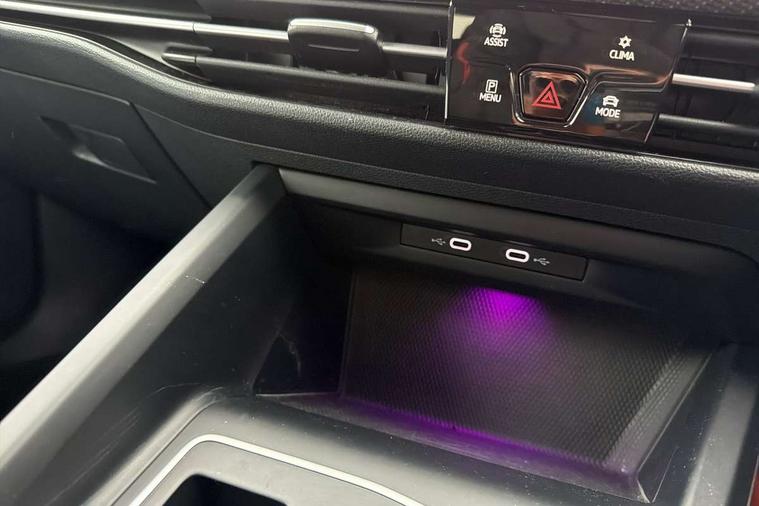 Adaptive cruise control (ACC) with speed limiter and front assist (reacting to vehicles pedestrians and cyclists), Car2X communication, Digital cockpit pro - 10.25" high resolution TFT dash display screen with customizable menus and information, Driver alert system, Dynamic road sign display, eCall - Emergency call service for SOS calls to emergency response, Lane assist, Mobile phone interface with wireless inductive charging function, PAS, Speedo, rev counter, electronic odometer, trip, service interval display, exterior temperature and fuel gauge, Start/Stop function, USB-C ports in the front and rear centre console with increased charging performance, Warning buzzer and light for front seatbelts unfastened, Wireless app connect, Petrol Particulate Filter, XDS electronic differential lock for improved traction and handling, Premium USB cable in choice of either Apple or Android smartphone compatibility, Ambient lighting, exterior illuminated styling elements at the sides, Auto dimming rear view mirror, Automatic headlamp activation with Coming home and Leaving home feature, Automatic headlights, Body colour door handles, Body colour door mirrors with integrated indicators, Body colour rear roof spoiler, Dynamic headlight range control, Electrically heated and adjustable door mirrors with memory feature, Front and rear electric windows, Heat insulating glass windscreen, Heated rear windscreen, High level 3rd brake light, Highway light, LED daytime running lights, LED headlights incorporating turn signals, LED License plate illumination, R Line body coloured bumpers, Rain sensor, Rear fog light on one side and reversing lights on both sides, Rear lights incorporating LED technology, Rear side wing doors, Rear tinted glass 65% light absorbing from B pillar backwards, Rear windscreen washer and wiper with interval delay, Welcome light, 12V socket in front centre console, 12V socket in luggage compartment, 3 rear head restraints, 3 seat bench in 2nd row, Ambient lighting - Customisable 30 colour ambient lighting, Black roof lining, Brushed stainless steel pedals, Chrome plated surround to electric mirror button, window switch and air vent surrounds, Drivers and front passengers sun visors with vanity mirrors, Front + rear carpet mats, Front centre armrest with storage compartment, Front cupholders x 2, Front passenger seat, Front reading lights x 2 incorporating LED technology, Front seat lumbar support adjuster, Front sports seats, Glovebox, Height adjustable front seats, Height and reach adjustable steering wheel, Isofix child seat preparation for 2 rear child seats and front passenger seat, Luggage compartment lighting, R Line door and side trim panel, R Line front seats integrated head restraints, R-Line leather wrapped multi function sports heated steering wheel, Removable luggage compartment cover, Sardegna cloth upholstery with front and outer rear seats Art Velour inner sides of bolsters, Split folding backrest with centre armrest and unsplit rear seat bench, Woven fabric storage compartments in front and rear doors, 3 point height adj front seatbelts + pretensioners, 3 rear three point seatbelts, ABS, Child locks on rear doors, Driver and front passenger airbag with front passenger airbag deactivation, Drivers and front passengers safety optimised head restraints, Electronic parking brake with auto hold, ESC (Electronic Stability Control), Extended pedestrian protection measures, Front and rear passengers curtain airbag system including front side airbags, Front disc brakes, Rear disc brakes, Two tone horn, Tyre pressure monitoring system, Alarm with interior protection and deactivation via infotainment system, Electronic engine immobiliser, Carbon grey decorative inserts in dash and front door trim panels, High gloss black centre console, Soul dashboard,