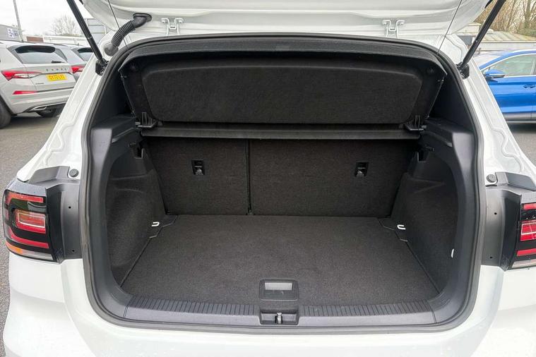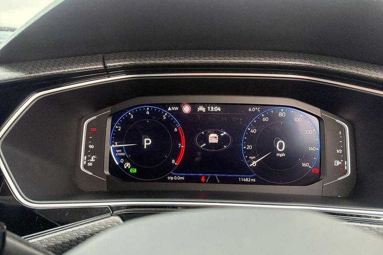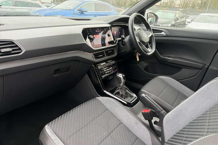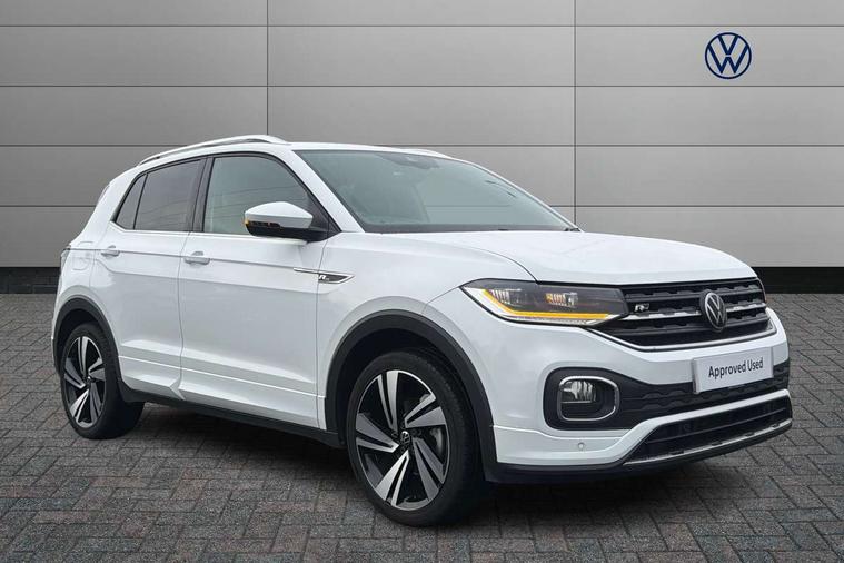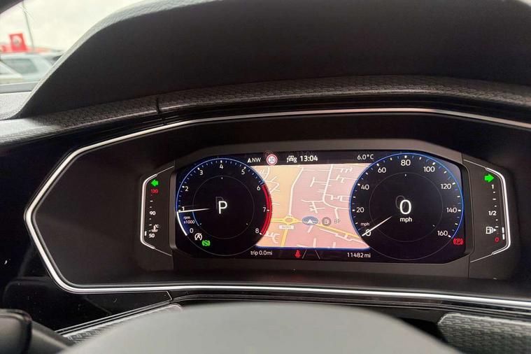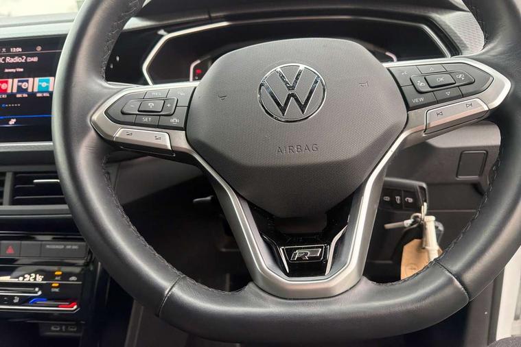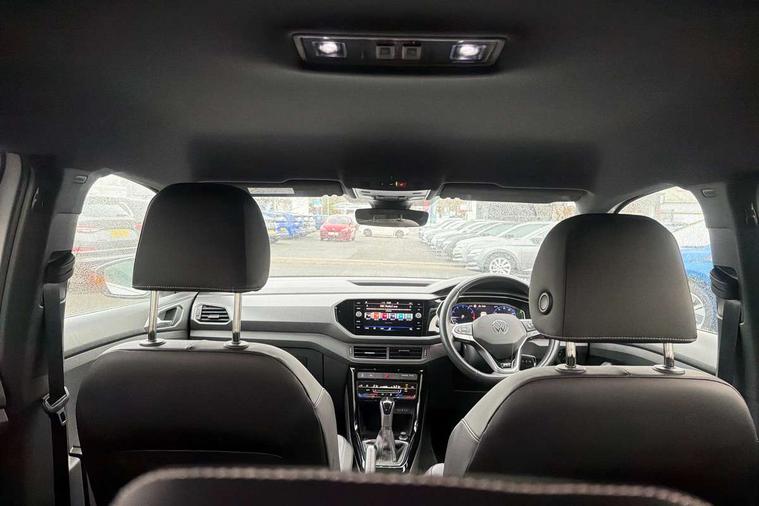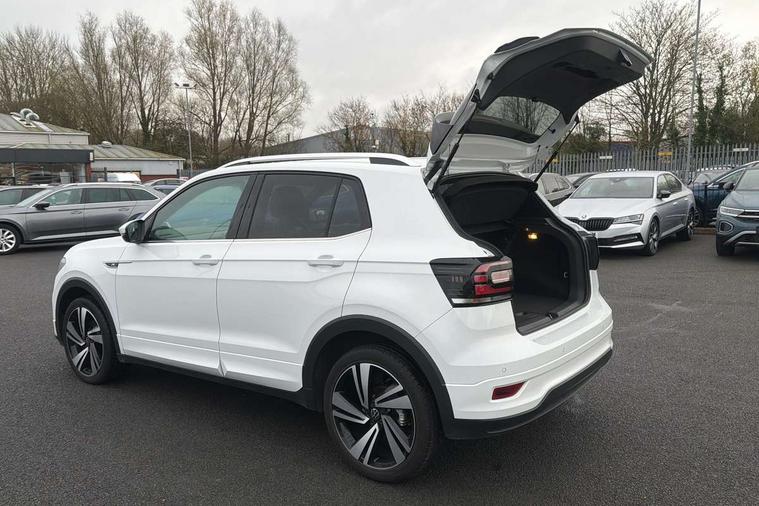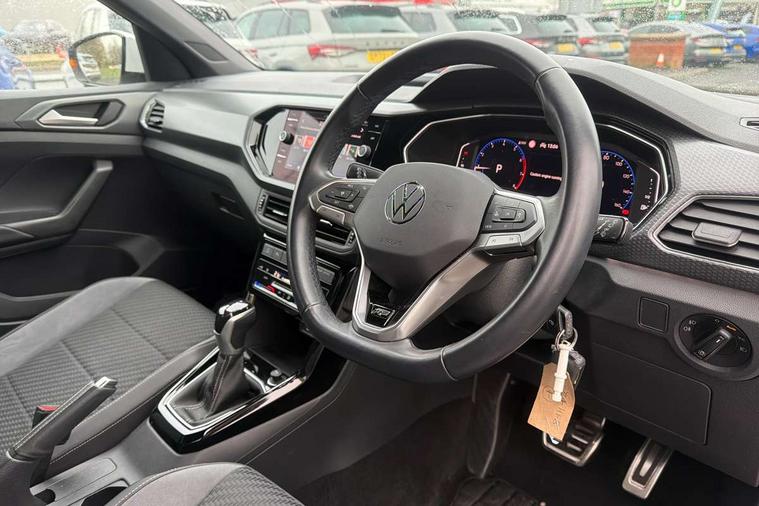 'Lights On' Reminder warning buzzer, 2D/3D map view, Active info display - 10.25" High resolution TFT dash display screen, Adaptive cruise control including front assist, forward collision warning, autonomous emergency braking, speed limiter, Blind spot monitoring, Bluetooth telephone and audio connection for compatible devices, Car information display, Driver alert system, eCall emergency call system, Lane assist, Low washer fluid warning light, Multifunction computer with visual gear change recommendation for fuel consumption, Operating permit alteration, Power assisted speed sensitive steering, Speed limit display, Speedo, rev counter, electronic odometer, trip, service interval display, exterior temperature and fuel gauge, Stop/start system, Tailgate, Warning sound and light for doors and tailgate open, Warning sound and light for front seatbelts unfastened, We connect plus preparation, Wireless Car net app connect with Apple CarPlay, combined functionality of Apple CarPlay/Android Auto and MirrorLink, Battery regeneration during braking, Misfuel prevention device, 2x USB connection with USB charging sockets and in rear centre console, DAB Digital radio receiver, Diversity antenna for FM reception, Multi device interface (MDI) with USB connection, Music playback - MP3, WMA and AAC files, Premium USB cable for Apple or Android smartphone compatibility, Simultaneous pairing of 2 compatible mobile devices, SMS Functionality, Three route options - Fast, Short, Eco, Title and cover art display, Automatic hazard lights activation under emergency braking, Body colour door handles, Body colour door mirrors with integrated indicators, Body colour rear roof spoiler, Body coloured bumpers, Dusk sensor + automatic driving lights, Electrically foldable, adjustable and heated door mirrors with reverse activated kerb view adjustment on passenger's side, Front and rear electric windows, Front fog lights with static cornering function, Galvanised body, Heated rear window, LED third brake light, Lower door sills and door pillars in black, Radiator grille with chrome trim and chrome bezel front fog lamp, Rear fog light on one side, reversing light on both sides, Rear lights incorporating LED technology, Rear side wing doors, Rear tinted glass 65% approx light absorbing from B pillar backwards, Rear window aerial, Rear windscreen washer and wiper with interval delay, Reflectors in all doors, Silver roof rails, Stainless steel door sill protection, Tailgate with integrated roof spoiler, Unique R Line badging, Windscreen wipers/ intermittent wipe + 4 position delay, 12V Accessory socket in centre console, 2 Front and rear reading lights incorporating LED technology, 2 Zone electronic climate control with automatic air recirculation, 3 rear head restraints and 3 rear three point seat belts with ECE label, 3 seat bench in 2nd row, 60/40 split folding rear seat backrest, Ambient lighting and sourround lighting, Black headlining, Branded points of interest, Brushed stainless steel pedals, Carbon flag cloth upholstery, Drawer under drivers seat, Driver and front passenger sunvisor with vanity mirror, Driver's sunvisor with ticket holder, Dust and pollen filter, Front and rear carpet mats with contrast stitching, Front centre armrest with storage compartment, Front footwell illumination, Front seat back storage pockets, Front seat R Line logo with rear seat backrest, Front sports seat with height and lumbar adjustment, Glovebox, Heating and fresh air system with 4 stage blower, Height/reach adjust steering wheel, Instrument lighting white adjustable panel illumination, Interior light with delay, Isofix child seat preparation for 2 rear child seats, Leather trimmed three spoke multifunction steering wheel with contrast stitching and aluminium inserts with R Line logo, Luggage compartment cover, Luggage compartment lighting, Moveable and foldable Rear bench seat, Scuff plates in door apertures, Steering wheel paddle shift, Storage compartment in drivers and front passengers door, R Line styling pack - T-cross, 3-point seat belts in front with electric tensioner + height adjustment, Anti-lock Braking System (ABS) with Hydraulic Brake Assist (HBA), Automatic post collision braking system, Driver and front passenger safety-optimised head restraints, Drivers and Front Passengers airbags with front passengers airbag deactivation switch, ESC with EDL, ASR, EDTC and trailer stabilisation function, Front and rear curtain airbags, Front seat side impact airbags, Hill start assist, Pre crash preventive occupant protection, Proactive passenger protection system in combination with front assist, Rear door child safety locks, Rigid safety cell with front and rear crumple zones, Single torn horn, Tyre pressure loss indicator, Volkswagen roadside assistance, Alarm with interior protection and deactivation via infotainment system, Child security locks in rear doors, Electronic engine immobiliser, Remote tailgate unlocking using key fob, Race decorative inserts in dash and doors, 18" Nevada black alloy wheels, Breakdown kit,