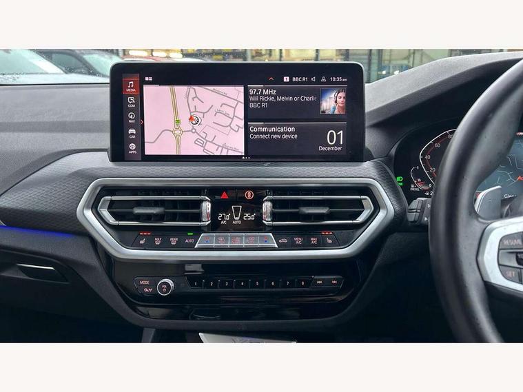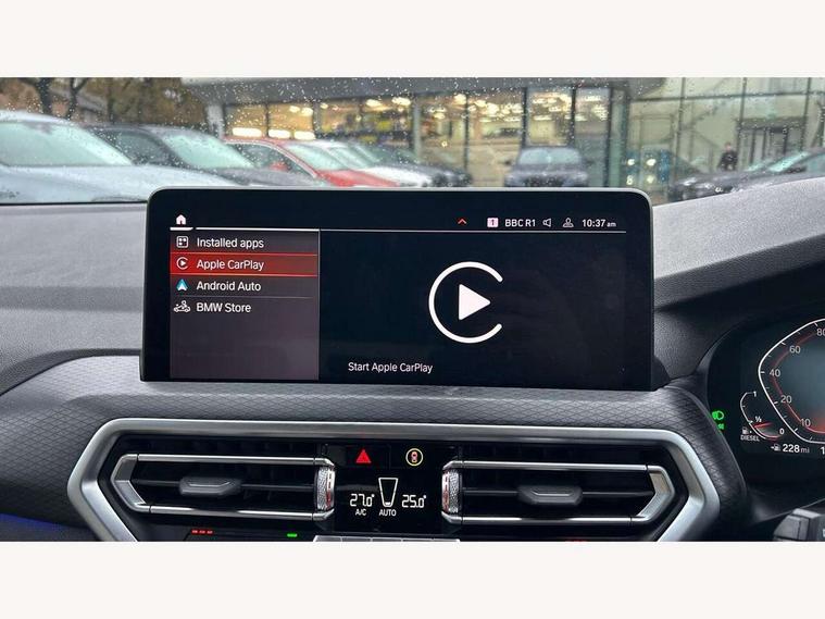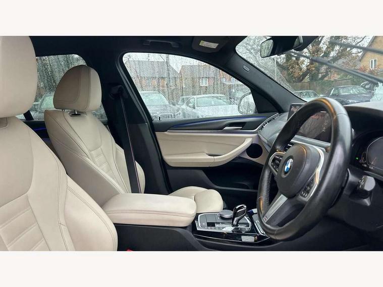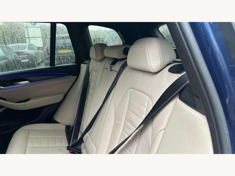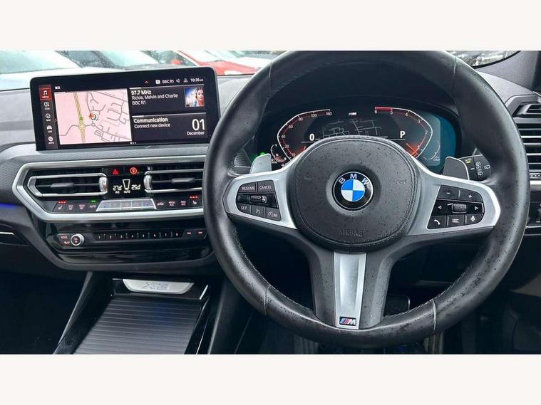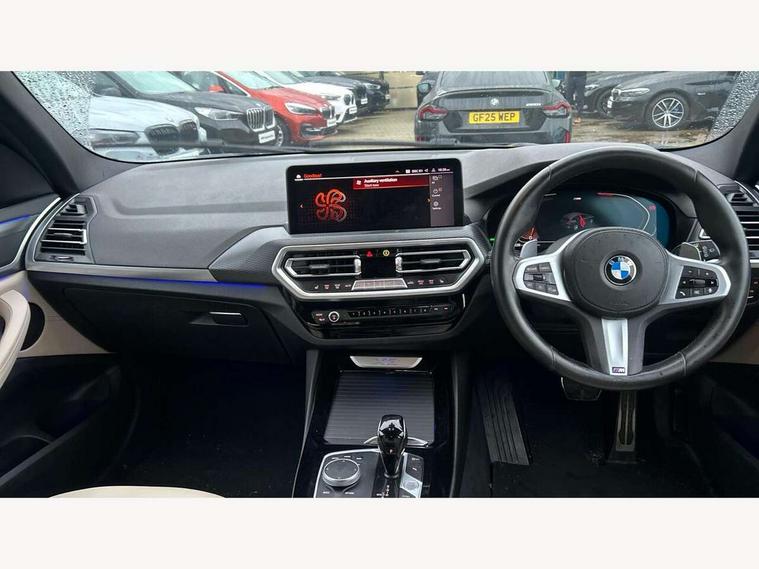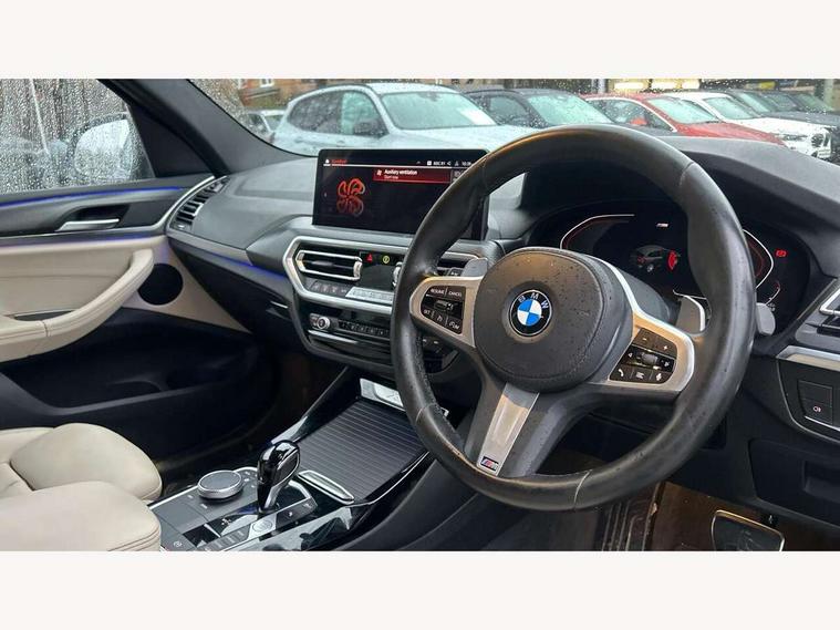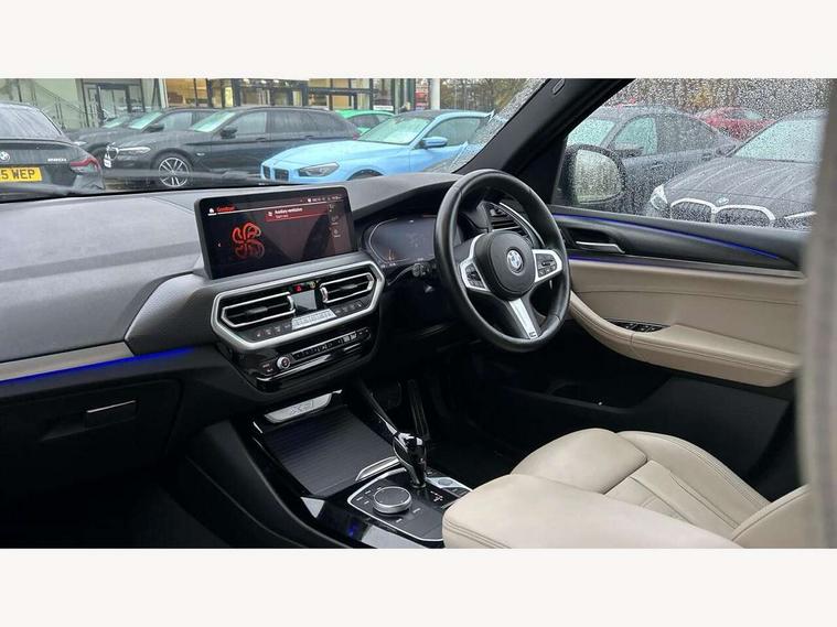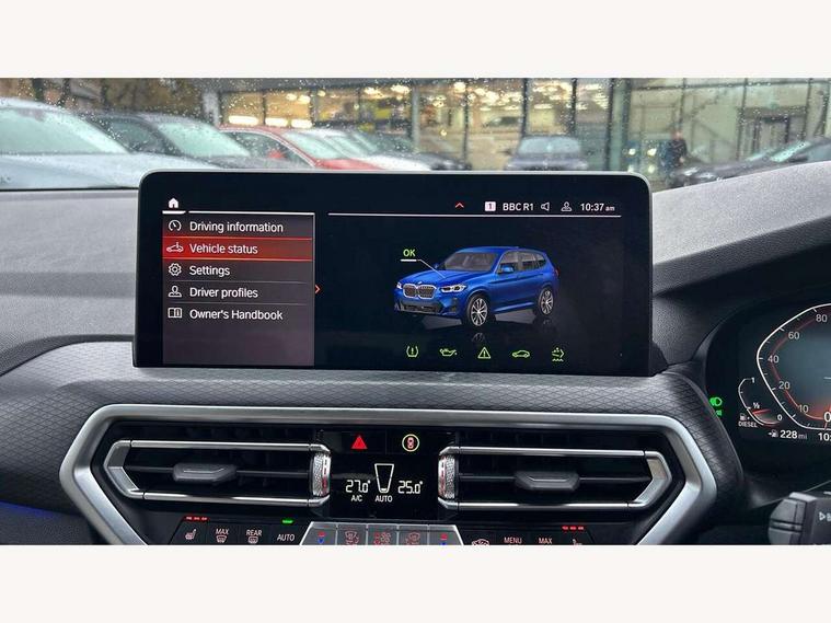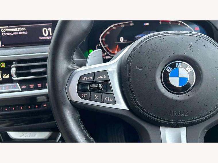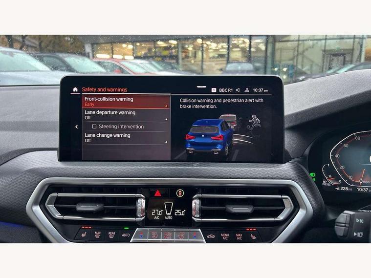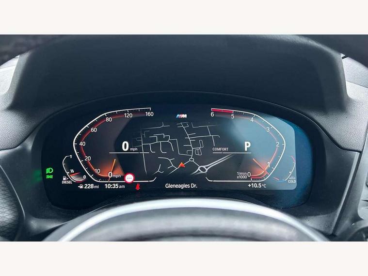 Active Guard, Attentiveness assist, BMW Live Cockpit Professional nav system including 12.3" instrument display + 12.3 high resolution control display, BMW Online services, BMW Teleservices, Brake pad wear indicator in front and rear, Check Control warning system for monitoring of lights and door/luggage compartment open warning, Condition based service - BMW service history, electronic service booklet, integrated owner's handbook, Connected drive services, Cruise control with brake function + speed limiter, Electric boot lid, Front/rear Parking distance control, iDrive Controller with 8 favourite buttons, Instrument cluster with speedometer with mph readout, tachometer, fuel gauge and oil temperature gauge, Lights on warning by audio warning signal when ignition is switched off, Oil sensor for level and grade, warning by check control system, On board computer - average speed+fuel consumption, service interval, clock/date, odometer/trip meter, outside temperature display and ice warning, Optimum shift indicator, Personal Profile - automatic lock when driving away selectable, Run flat indicator, Stop/start system, Variable sports power steering with drive performance control Sport+ mode, Diesel particulate filter, Incorrect fuelling protection, Larger capacity fuel tank, M sport suspension, Multi-link rear suspension, Performance Control, Sport automatic transmission with gearshift paddles, BMW professional radio/CD/MP3, DAB tuner, Acoustic glazing, Automatic windscreen wipers and automatic headlight, Black finish on B pillars, Body colour door handles, Body colour electric adjust heated aspherical door mirrors, Body colour roof mouldings, Body coloured bumpers, Direction indicator, side repeaters, integrated in exterior mirrors, Dynamic brake lights, Exhaust tailpipes - dual, round, split left and right with chrome finisher, Fingertip control / anti-trap function on electric window, Folding wing mirrors with auto dimming, Follow me home headlights, Front and rear bumper system with replaceable deformation elements, Front and rear electric windows, Gloss chrome tailpipes finishers, Green tinted heat insulating glass, Heated windscreen washer jets, High beam assistant, High gloss black shadow line roof rails, High gloss shadowline exterior trim in decorative moulding side frame/recess cover/guide rail/B, C pillars/mirror frame and triangle with mirror base, High level 3rd brake light incorporating LED Technology, Interior rear view electrochromatic mirror with automatic anti dazzle function, LED tail lights, Lightweight engineering, M aerodynamic bodystyling, M Sport entry door sill strips, Model designation, Rear side wing doors, Rear wing door, Rear wiper, Shark fin antenna, Side exterior M designation badges, Visible VIN plate, Welcome lighting, Windscreen wipers with adjustable interval, 12V power socket in front centre console, 3 rear headrests, 3 seat bench in 2nd row, 3 zone automatic air conditioning, 4 lashing points to secure luggage, 40:20:40 split folding rear seat with loading system, Ambient lighting, Anthracite headlining, Automatic interior light when door is opened/ignition switched off or via remote key, Driver seat backrest width adjustment, Floor mats in velour, Foldable storage floor with compartment, Four grab handles integrated in roof lining, Front and rear bottle holders integrated into door trim storage compartments, Front and rear side armrests integrated into door trim, Front centre armrest with storage compartment, Front footwell lights, Front head restraints, Front passenger seat, Front sports seats, Front/rear courtesy lights with soft on/off dimming, Front/rear reading lights, Heated front seats, Isofix rear child seat preparation, Leather gear knob, Luggage area underfloor compartment, Luggage compartment lighting, M sport leather steering wheel, Multifunction steering wheel, Parcel shelf removeable and storable under boot floor, Reach and rake adjustable steering column, Rear centre armrest with 2 cupholders, Removable / retractable luggage cover, Slope adjustable rear seats, Storage compartment in rear centre console and front/rear door trims, Sun visors with vanity mirrors and ticket pocket, Toolkit located in luggage compartment, Two front cupholders with removable oddments tray/lid, Vernasca leather upholstery, Connected pro pack - X3, Driving assistant pack - X3, ADB - Automatic Differential Brake, Anti-lock braking system (ABS) with brake assist, Automatic Stability Control (ASC), Battery safety cut-off, BMW emergency call, Brake drying, Brake energy regeneration, Braking pre-tensioning, CBC - (Cornering brake control), Child locks on rear doors, Crash Sensor - activation of central locking release, hazard warning light and interior lighting, Deactivation of fuel pump in the event of a crash, Driver and front passenger front and side airbags with passenger deactivation and ITS front and rear head airbags, DSC+, Dynamic brake control, Dynamic Traction Control - DTC, Electromechanical parking brake, Hill descent control, Hill start assist, Seatbelt security check for front seats, Side impact protection, Three point seatbelts to all seats with front and outer rear pyrotechnic belt tensioners and seat belt force limiters, Two tone horn, Tyre pressure sensor, Ventilated front and rear disc brakes, Warning triangle and first aid kit, Central locking switch for all doors, fuel filler cap and luggage compartment, Electronic engine immobiliser, Locking wheel nuts, Remote control including two integrated key - one button for open/close all lockable content, windows and separate button for open luggage compartment, Remote control Thatcham category 1 alarm, Start/stop button with Comfort Go keyless engine start and auto Start/stop deactivation button, Low rolling resistance tyres,