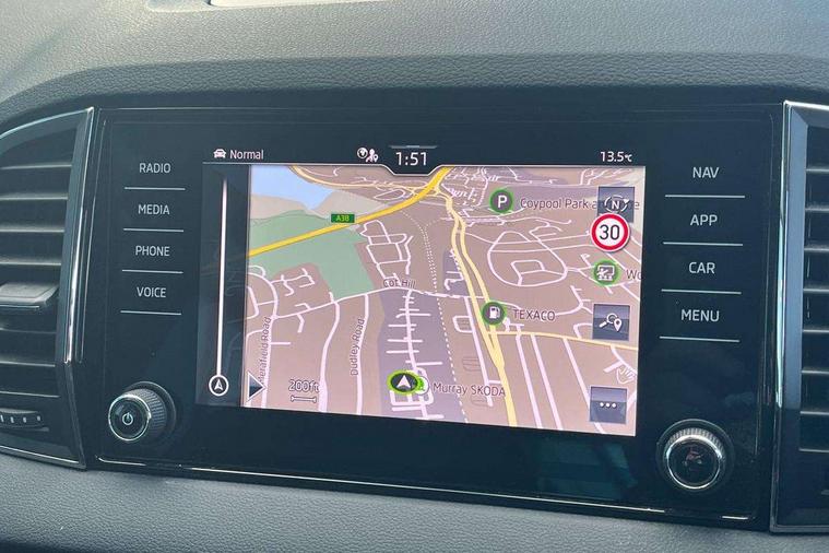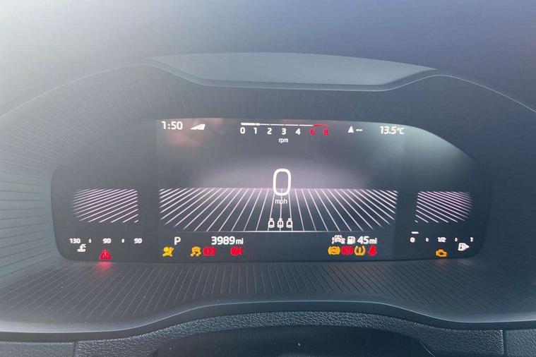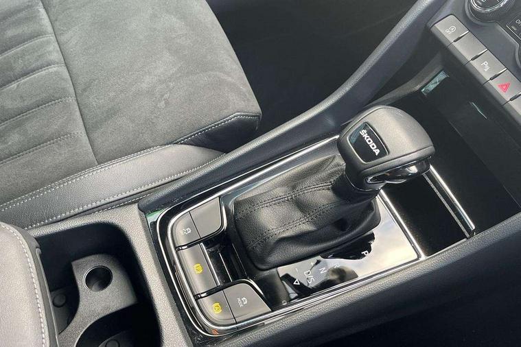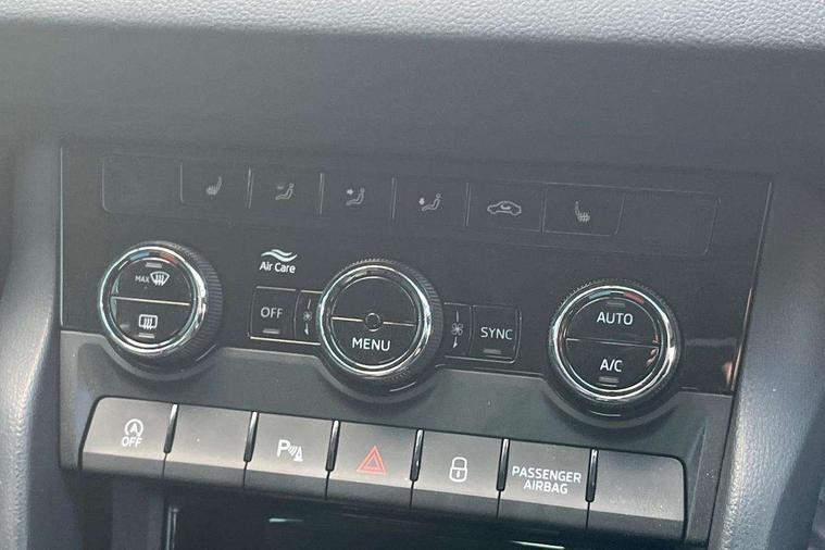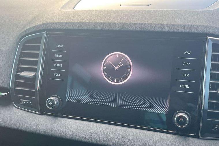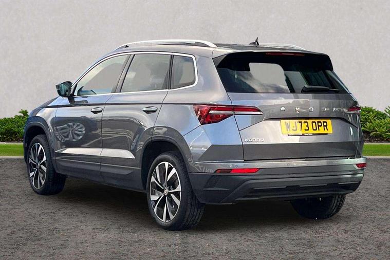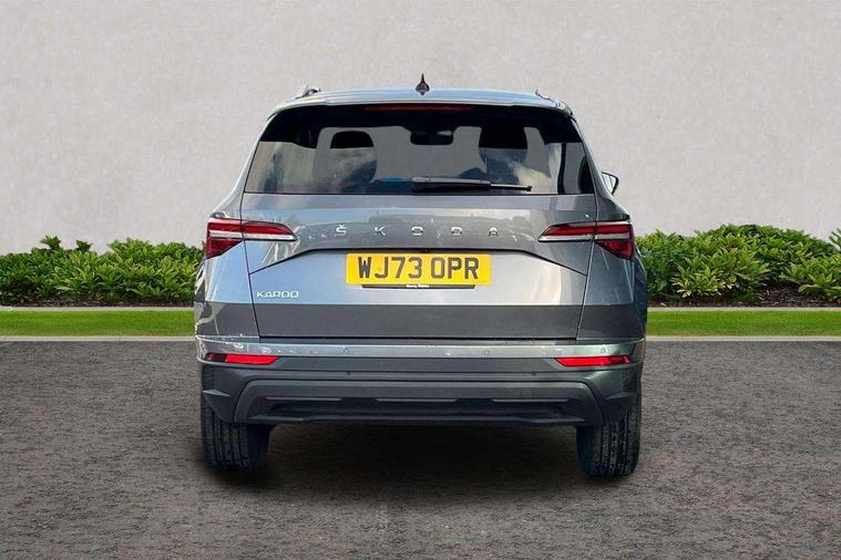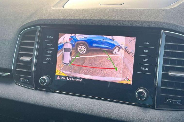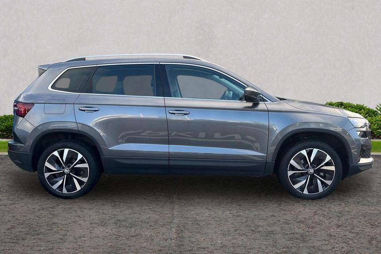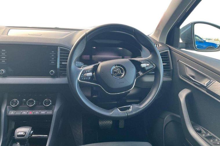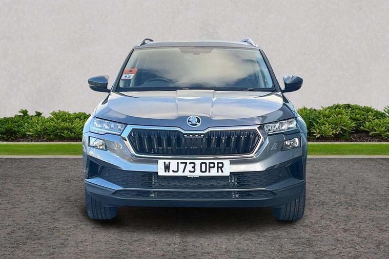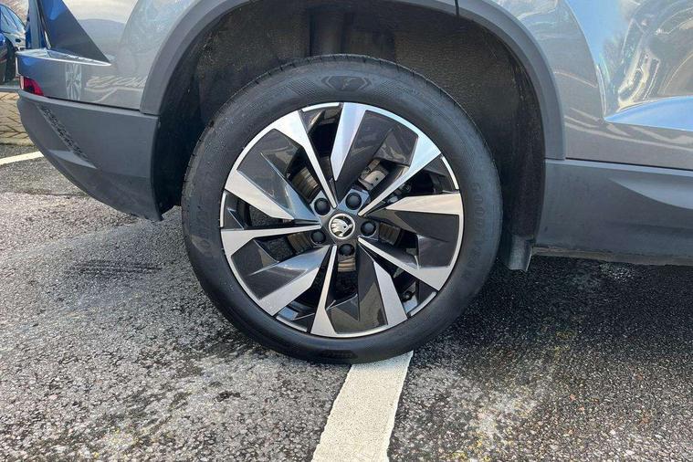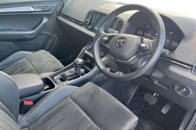 8" Digital display, Care connect, Driver fatigue sensor, Emergency services call system, Outside temperature gauge, Service interval indicator, SmartLink wireless for Apple and wired for Android, Start/stop system with regenerative braking, USB C Port x 2 in front centre console, 8 Speakers, DAB radio with Bluetooth, USB connection, Acoustic glass, Aero front windscreen wipers with intermittent function, Auto dimming rear view mirror with light and rain sensors, Black electric window control buttons, Body colour door mirrors and handles, Dynamic headlight range control with cornering light function, Electric front and rear windows with child proof lock, Heated rear windscreen, LED daytime running lights, LED rear lights with high functionality welcome effect and dynamic indicators, Light assistant (coming/leaving home/tunnel light), Plastic scuff plates, Privacy glass, Rear side wing doors, Rear spoiler, Rear window wiper with washer system and intermittent control, Safety reflectors on front doors, 1.5 litre bottle holders in driver and front passenger door panels, 12V socket in boot, 12v socket in front centre armrest with storage compartment and rear air vents, 2 spoke leather heated multifunction steering wheel with DSG paddles, 2 x Tablet holder, 3 rear height adjustable headrests, 3 seat bench in 2nd row, 4 foldable roof handles with rear coat hooks, Black floor carpet, Chrome inner door handles, Double sided boot floor, Foldable hooks in the boot, Front head restraints, Height adjustable front three point seats belts with tensioners, Height/reach adjust steering wheel, Ice scraper, Illuminated glovebox, Illuminated luggage compartment, Isofix child seat preparation for front passenger seat, Isofix child seat preparation outer rear, Manual lumbar support for front seats, Pen holder, Pollen filter, Rear boot cover, Rear reading lights, Rubbish bin door, Safety vest holder, Single front passenger seat, Storage box in upper central dashboard closed, Sunvisors with illuminated vanity mirrors, Textile floor mats, Ticket holder, VarioFlex seats with standard rear seat release, Boot pack - Karoq, Design Pack - Karoq, Parking pack - Karoq, Automatic door unlocking in case of crash, Automatic fuel cut off in case of crash, Child locks on rear doors, Driver airbag, Electronic parking brake with auto hold function, Emergency rear braking signal, ESC including ABS, MSR, ASR, EDS, HBA, DSR, RBS, MKB and traction control, Front side airbags, Hill hold control, Knee airbags, Passenger airbag with switch-off function, Pedestrian monitor, Seatbelt reminder signalisation and pretensioner for all seats, Three point seatbelts rear, Two tone horn, Tyre pressure display, Tyre pressure monitor, Alarm with interior monitoring, back up horn and tilt sensor with safe function, Electronic engine immobiliser, Keyless entry and start/stop, Remote central locking with 2 remote folding keys, Chrome framed air vents, 18" Miran alloy wheels in black, Anti-theft wheel bolts protection, Tool kit,