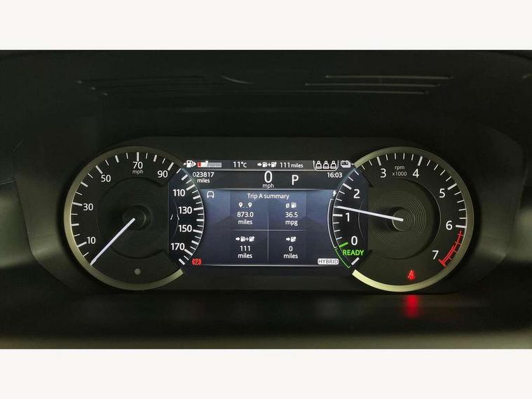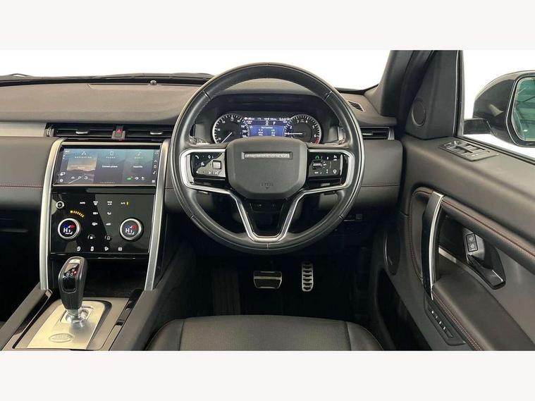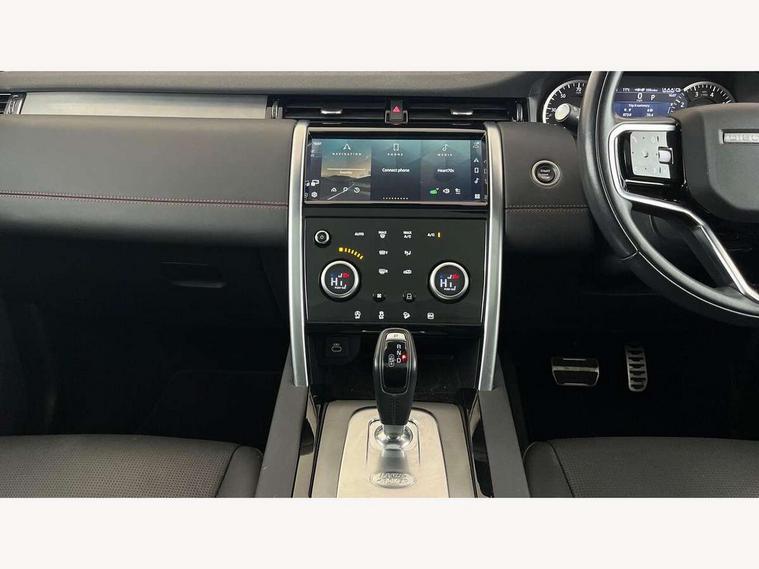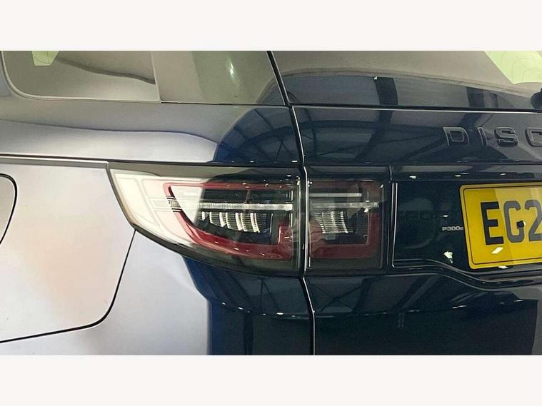10" touch screen, Adaptive cruise control, Android Auto, Apple CarPlay, Blind spot assist, Clear exit monitor, Driver condition monitor, eCall emergency call system, Front and rear parking aid, InControl remote premium, Lane keep assist, Locking fuel flap, PAS, Pivi Pro connected navigation system with upgraded Infotainment, Powered tailgate/boot lid, Push button start, Rear collision monitor, Rear traffic monitor, Service interval indicator, Traffic sign recognition with adaptive speed limiter, Trip computer, Wade Sensing, 7 kW onboard charger, All terrain progress control, Coil suspension system, Configurable dynamics, Dynamic stability control, Home charging cable, Public charging cable, Terrain Response 2, Bluetooth connectivity including audio streaming, Digital Audio Broadcast radio-DAB, Steering wheel mounted audio controls, 3rd brake light, Automatic headlight levelling, Automatic headlights, Electric front/rear windows, Electric heated/power fold door mirrors with approach lights and auto dimming driver side, Front and rear recovery eyes, Front fog lights, Heated rear window, Heated windscreen including heated washer jets, Illuminated metal front treadplates with R dynamic branding, P300e badge, Privacy glass, R Dynamic badge, Rain sensing windscreen wipers, Rear fog lights, Rear side wing doors, Rear wing door, Rear wiper, 5 standard seating configuration, Bright metal pedals, Centre console with armrest, Configurable cabin lighting, Electrically adjustable steering column with memory, Footwell lights, Front and rear grab handles, Front passenger isofix child seat attachment, Heated steering wheel, Loadspace cover, Loadspace light, Overhead lighting console, Overhead stowage for sunglasses, Rear headrests, Satin chrome gearshift paddles, Sunvisors with illuminated vanity mirrors, Tilt/reach adjustable steering wheel, Black exterior pack - Discovery sport R-Dynamic SE/HSE, Online pack with data plan - Discovery, 3 point seatbelts on all seats, ABS, Brake hold function, Child locks on rear doors, Collision mitigation braking system, Cornering brake control (CBC), Driver/Front Passenger airbags, Drivers knee airbag, Electronic brake force distribution, Electronic parking brake, Emergency brake assist, ESP + traction control, Hill descent control, Hill launch assist, Pedestrian airbag system, Rear seat ISOFIX, Roll stability control, Side and curtain airbags for front and 2nd row seats, Trailer stability control, Tyre pressure monitoring system, Battery Back Up System (BBUS) with tilt sensor, Global lock and unlock switch on driver door, Intrusion sensor, Keyless entry, Locking wheel nuts, Centre stack rails in noble chrome,