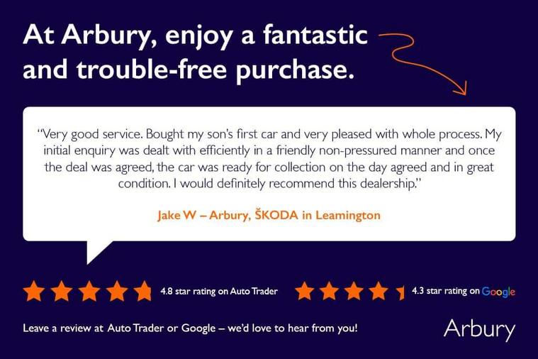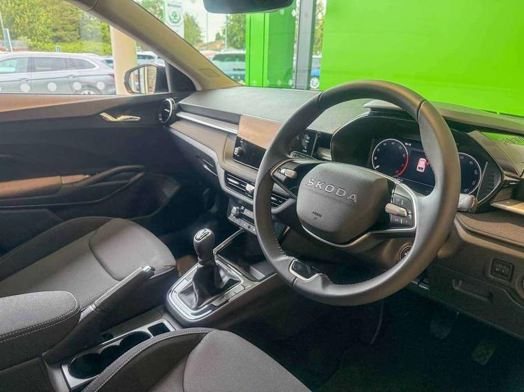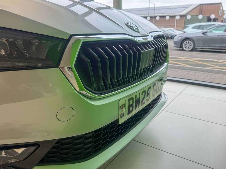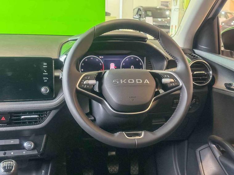 Advanced driver attention and drowsiness monitor, Bluetooth connection, Electromechanical power steering, Exterior temperature gauge, Service interval indicator, Traffic sign recognition, Virtual cockpit with 10.25" colour display, Wireless SmartLink for Apple CarPlay and Android Auto, 6 Speakers (4 in front and 2 in rear), Auxiliary socket for external MP3 player, DAB digital radio reception, Auto dimming rear view mirror, Body coloured bumpers, Door mirror integrated indicators, Front and rear electric windows, Front window wiper intermittent control, Headlight range control - Automatic, Ice scraper in fuel cap, LED daytime running lights with coming and leaving home feature, LED rear lights, Privacy glass, Rear LED fog light, Rear side wing doors, Rear window wiper with washing nozzles, Roof mounted spoiler, SKODA tailgate lettering in chrome, Third brake light, Unique dark chrome design logo on alloy wheels, 2 reading lights in front and 2 reading lights in rear, 3 rear headrests, Backrest split and folding, Central console with removable cup holder and storage box, Chrome handbrake release button, Dual zone air conditioning with climatronic electronic control, Fabric upholstery, Front centre armrest, Gearshift knob/handle in leather, Grain satin black interior door handles, Hand brake lever handle in leather, Height adjustable front headrests, Height adjustable front seats, Height adjustable steering wheel, ISOFIX and TopTether anchorage points to the outer rear seats, ISOFIX and TopTether on the front passenger seat, Luggage compartment lighting, Manually adjustable lumbar support in front seats, Pollen filter, Rear seat bench unsplit, Single front passenger seat, Skoda lettering on steering wheel, Storm grey headlining, Sun visors with mirror and airbag label on passenger side, Textile floor mats, Ticket holder, Umbrella in drivers door, 3-point height adjustable front seats belts with pretensioner and force limiter, Automatic warning lights in case of crash, Driver and passengers airbag with switch off function, e-Call+, ESC including ABS, MSR, ASR, EDS, HBA and XDS, Front and rear seat belt warning, FRONT ASSIST (AEB City and AEB Inter Urban), Front side airbags, Head airbags, One tone horn, Pedestrian protection, Three rear 3-points safety seat belts with pretensioner and force limiter including stop function for outer rear seat belts, Tyre pressure monitoring system, Anti-theft alarm system including immobiliser, interior monitoring, backup horn, and towing protection, Central locking with radio remote control, interior controls, SAFE function and 2 foldable keys, Black painted air vents, Grain satin black central console cover, Metallic grey upper decorative trim, Satin black door and side trim panel in front, Textile Kota grey lower decorative inserts, Anti-theft wheel bolts protection, Super-low rolling resistance tyres,