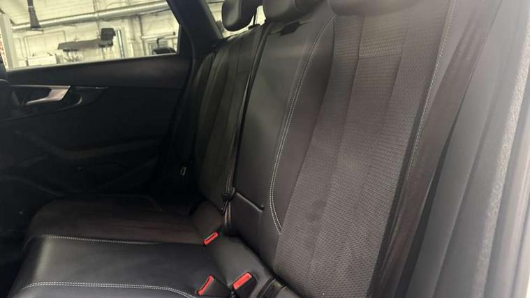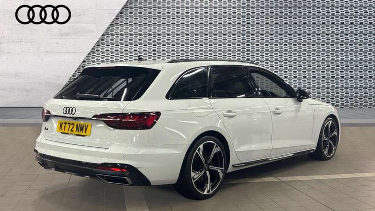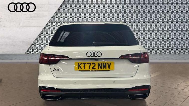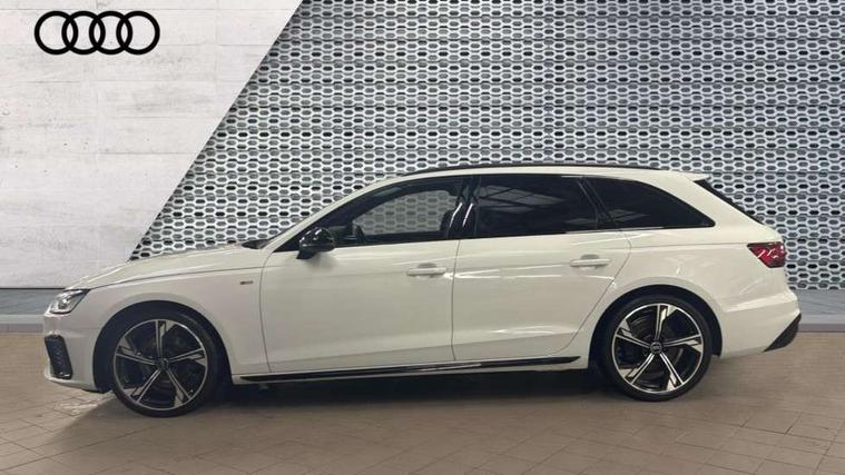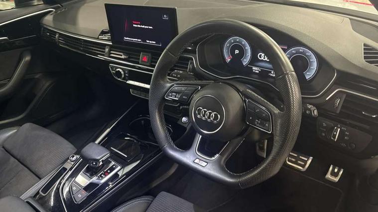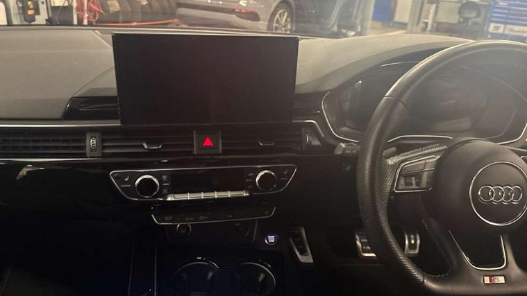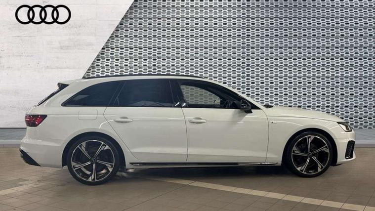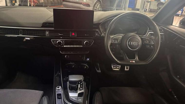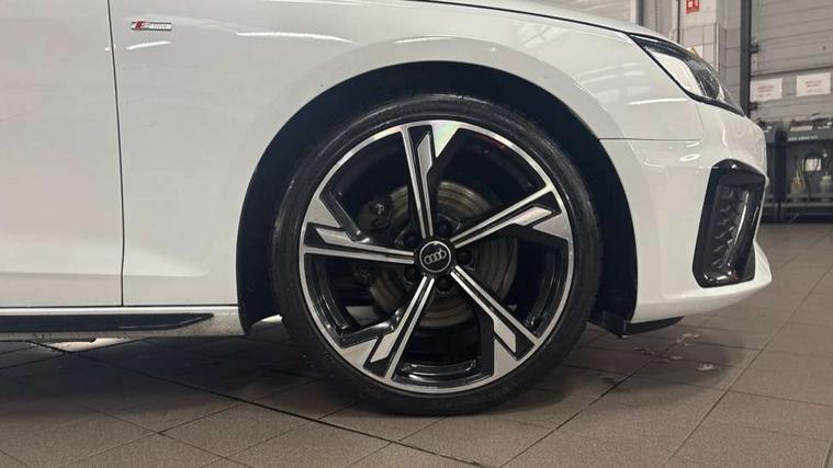 Audi connect safety and service (e-call), Audi connect with Amazon Alexa Integration, Audi drive select, Audi smartphone interface, Audi virtual cockpit, Automatic start-stop system with coasting functionality and efficiency programme, Bluetooth interface, Electromechanical power steering, Email, calendar and text messages displayed via MMI, MMI Navigation plus with MMI touch includes 10.1" high resolution colour MMI display, 3D map, Power operated tailgate, Voice control system, 54 litre fuel tank, Sports suspension lowered by 23mm, 2 USB charging ports, 8 passive loudspeakers, DAB digital radio reception, Audi beam uses LEDs to project the audi logo onto the ground as you exit your A4, Auto dimming rear view mirror, Black Audi rings and black badging (model name in black badging, no engine badging), Body colour door handles, Body colour front spoiler lip, Body colour side sill trim, Electrically folding auto dimming/adjustable/heated door mirrors with LED side indicators and kerb view function for passenger side, Exhaust tailpipes in high gloss black, Front and rear bumpers with side skirts, Grained matt black side air inlets with matt aluminium silver inlay, High beam assistant, High gloss black B pillar trims and triangular rear door trim, LED headlights with LED rear lights + dynamic rear indicators + headlight adjustment and high beam, turning light + LED daytime running lights, LED third brake light, Privacy glass, Rain and light sensors, Rear diffuser in matt titanium black with trim strip in matt aluminium silver, Rear side wing doors, Rear wiper, RS4 rear spoiler in body colour, S Line badges on the front wings, S Line roof edge spoiler, Variable intermittent front wash/wipe, Windscreen with acoustic glazing, 4 way electric lumbar support for driver and front passenger, 40/20/40 split folding 3 rear seat bench in 3 parts with rear centre armrest, Black cloth headlining, Black perforated leather gearknob, Contrast stitching on seats, steering wheel and gear lever gaiter, Deluxe 3 zone electronic climate control, Door sill trims with aluminium inlay, Electric load area cover, Front and rear head restraints, Front centre armrest, Heated front seats, Illuminated door sill trims with S logo, ISOFIX child seat mounting and top tether, Manual seat adjustment, Single front passenger seat, Stainless steel pedals and foot rest, Black styling pack - A4 Avant, LED Interior light pack - A4/S4, 3 rear seatbelts, 6 airbags - Driver, front passenger, curtain and side windows, Electronic Stabilisation Control (ESC) including ABS, ASR and EDL, Hill hold assist, Multi collision brake assist, Pop-up bonnet for pedestrian protection, Pre sense city, Rear door child safety locks, Seatbelt monitoring, Warning triangle and first aid kit, Anti theft alarm, Anti theft wheel bolts, Central locking, Keyless Go, Piano black finish inlay, 19" 5 arm flag design Audi sport diamond cut alloy wheels in gloss anthracite black, Tool kit, Tyre repair kit,
