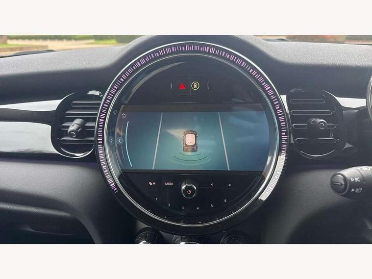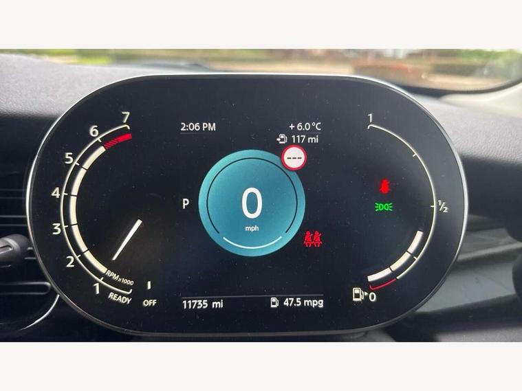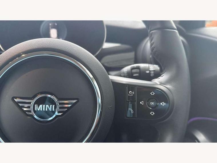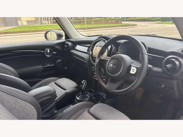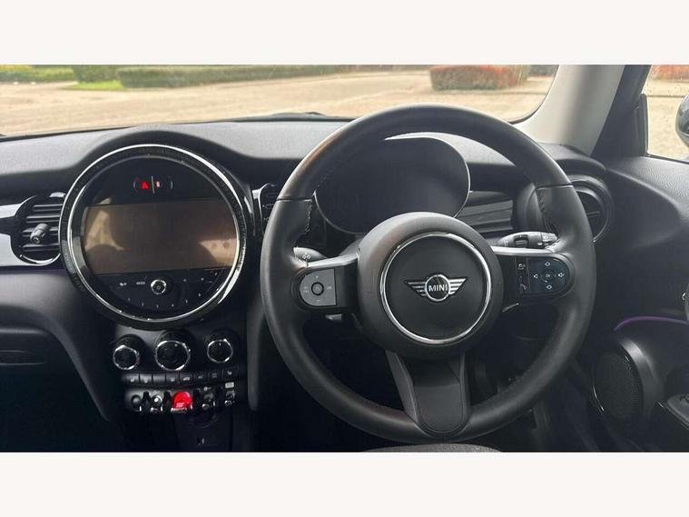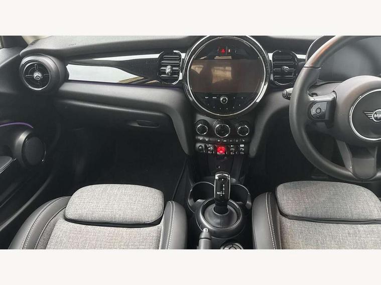 Apple CarPlay, Automatic start/stop function with brake energy recuperation, Compatible mobile phone bluetooth with audio streaming, Cruise control with brake assist, Electro-mechanical speed dependant steering assistance, Flexible car sharing preparation, Instrument cluster, Mini E-call, MINI TeleServices, On board computer, Service interval indicator, Double Vanos system, Fully variable valve control, High precision injection, Performance Control, Steptronic transmission with double clutch, 8.8" touchscreen with LED ring, FM tuner and DAB digital radio, 3rd brake light, Automatic headlight activation switch, Body colour fuel filler cap, Chrome border high gloss black slats radiator grille, Dynamic brake lights, Electric front windows, Exhaust tailpipe on left with chrome finisher, Heated rear window, Heated windscreen washer jets, LED headlight with closed ring and daytime driving lights, Metal door sill strips with MINI imprint, Model logo Cooper on right of tailgate, Rain sensor window wipers, Rear fog lights, Rear LED lights with union jack design, Rear window wiper, Side scuttle panel with integrated indicator, Sun/heat protection glass, White indicator lenses, 12V Accessory socket in centre console, 2 seat bench in 2nd row, 4 lashing eyes in luggage compartment, 60/40 split folding rear seat, Ambient lighting, Carbon black colour line - Knee roll and door armrest, Chrome interior highlights, Cupholders, Front and rear head restraints, Front and rear isofix with front passenger airbag deactivation, Front floor mats in velour, Glove compartment, Height and length steering column adjustment, Interior lighting with 12 different colours across the dashboard, underneath door bezel with illuminated laser-engraved design on central display, Leatherette gearshift lever and handbrake gaiters, LED reading lights, vanity mirror lights, front foot well light and spotlight on front seats, Manual air conditioning, Mechanical seat adjustment - forward/back & backrest for front seats and driver seat height adjust, Multifunction steering wheel, Passenger seat height adjuster, Satellite grey headlining including grab handles and clothes hooks, Single front passenger seat, Sport leather steering wheel with speed limiter and audio/communication controls, Storage compartments in doors, Sunvisors with vanity mirrors, 3 point seatbelts on all four seats, 6 Airbags - front, side, head and seat belt tensioners, Anti-lock braking system (ABS), DSC - Dynamic Stability Control, Front and rear disc brakes, Single tone fanfare horn, Tyre pressure monitoring system, Alarm system with tilt sensor, monitoring doors, bonnet interior and tailgate, Electronic vehicle immobiliser, Start/stop toggle with keyless go, Piano black interior trim, Tool kit, Tyre repair kit,