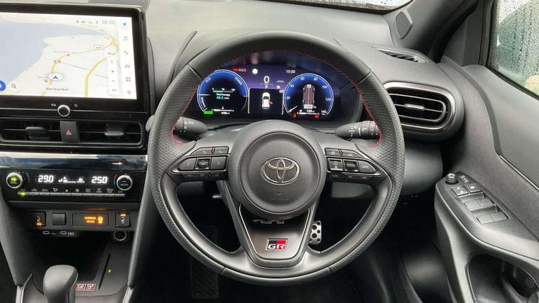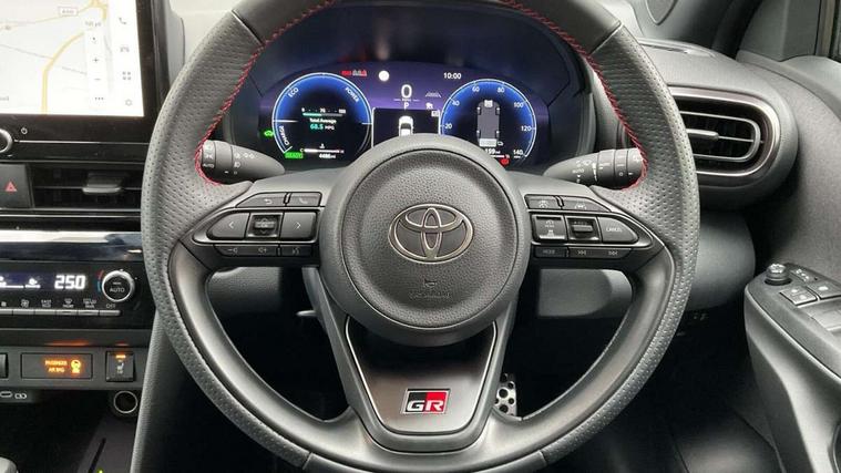 10.5" Multimedia display screen, 10.5" Toyota smart connect+ with navi multimedia system with wireless Smartphone integration incl Apple CarPlay, 12.3" Multi information display screen, Adaptive cruise control, multi info switches on steering wheel, Adjustable speed limiter, Bluetooth connectivity, Color multi-information display, Digital speedometer, Digital tachometer, Drive mode selector, Driver attention alert system, eCall emergency system, Electric power steering, Emergency driving stop system, Full range intelligent adaptive cruise control, Hybrid system indicator, Intersection turn assist, Key reminder warning, Lane trace assist, My T Connected services, Pre-collision system enhanced with emergency steering assist, Reversing camera, Road sign assist - RSA, Static guide lines on reversing camera, Telephone switch on steering wheel, Wireless Mobile Phone Charger, Steering assisted vehicle stability control, 6 speakers, DAB Digital radio, Front USB Type-C connector, Front USB-C device charger, 3rd brake light, Acoustic windscreen glass, Anti-jam protection on power windows, Auto dimming rear view mirror, Auto high beam [AHB] with on/off switch, Auto intermittent windscreen wipers, Automatic headlights, Automatic headlights cut-off, Black door moulding, Black lower front grille, Black protection moulding on side doors, Black rear bumper with diffuser, Black rear under run, Black roof rails, Black wheel arch mouldings, Body colour door handles, Body colour front bumper, Electric adjustable heated door mirrors, Follow me home headlights, Front and rear electric windows with auto up/down function, Gloss black upper front grille, GR Sport meshed lower front grille, GR Sport meshed upper front grille, GR sport scuff plates, Headlight cut off reminder, Indicators integrated on door mirrors, Intermittent rear wiper, LED daytime running lights guide, LED front fog lights, LED front light guide, LED Indicators, LED projector headlights, LED rear lights with sequential indicators, Manual headlight levelling, Noise reduction layer on windscreen, Pre wiring for towing hook, Privacy glass, Rain sensor, Rear side wing doors, Rear spoiler, Rear window defogger, Shark fin antenna, 12v power outlet - front, 12V power point in boot, 2x Rear coat hooks, 3 seat bench in 2nd row, 3 Spoke GR Sport leather steering wheel, 40/60 split deckboard, 40:20:40 split folding rear bench seat, Adjustable rear headrests, Adjustable speed limiter switch on steering wheel, Black roof lining, Boot light, Driver and front passenger personal lights, Driver and front passenger Whiplash injury Lesseing seats, Driver and passenger seatback pockets, Dual zone automatic air conditioning, Fabric door trim, Front console box, Front cup holders, Front door pockets, Front head restraints, Front sport seats, Front/rear assist grips, Gear shift indicator, GR sport floor mats, Heated driver and passenger seats, Height adjustable driver's seat, Height adjustable front passenger seat, Hooks for luggage holding belts, ISOFIX child restraint system, Lane departure alert switch on steering control, Leather gearshift, LED centre room light, Light on driver and passenger sun visor, Manual telescopic and tilting steering wheel, Mirror on driver and passenger sun visor, Nanoe-X air purifier, Pollen air filter, Power adjustable lumbar support on driver seat, Rear cup holders, Rear door pockets, Rear head restraints, Remote air-conditioning system, Single compartment glovebox, Single front passenger seat, Soft tonneau cover, Storage box under boot floor, Ultra suede cloth upholstery, Voice recognition switch on steering wheel, White ambient lighting in centre console, White ambient lighting in footwell, White ambient lighting on front doors, 3x3 point rear seat belts, ABS+EBD+Brake assist, Driver and passenger central airbags, Driver and passenger front airbags, Driver and passenger side airbags, Electronic parking brake, Emergency brake light system (EBS), Front seat belt reminder, Hill start assist control (HAC), Passenger airbag on/off switch, Pre-collision system with pedestrian and cyclist detection, Rear door child safety locks, Rear passenger side airbags, Rear seat belt reminder, Traction control, Tyre pressure warning system, Immobiliser, Intrusion alarm, Keyless smart entry with push button start, Power door locks, Power passenger window lock, Remote door lock, Tyre repair kit,
