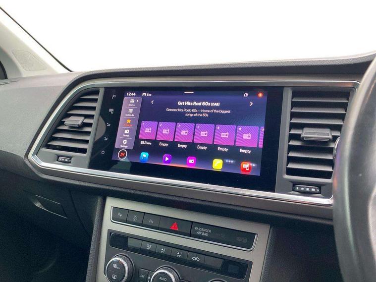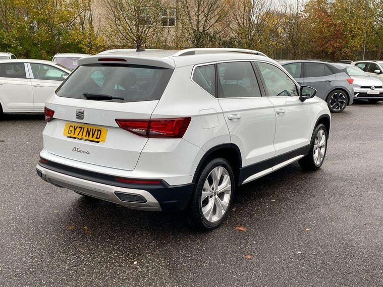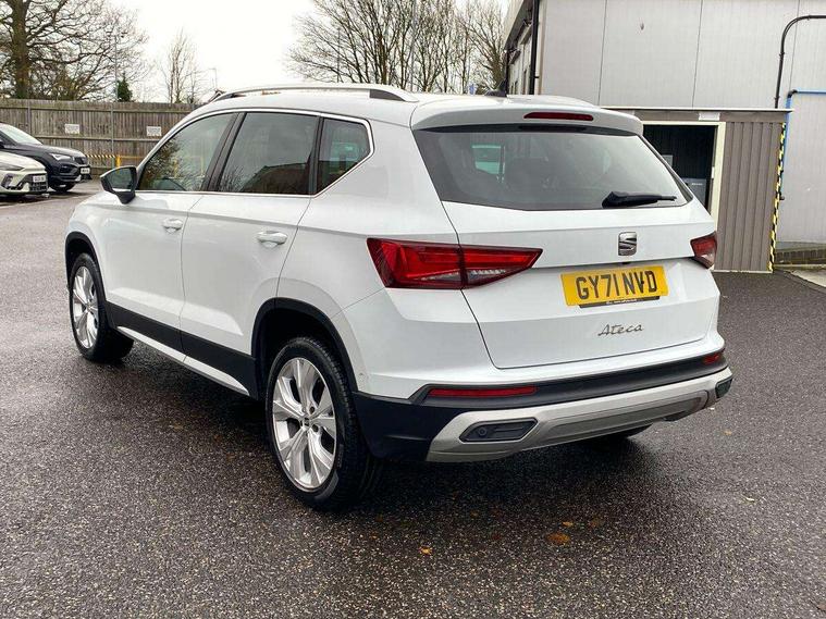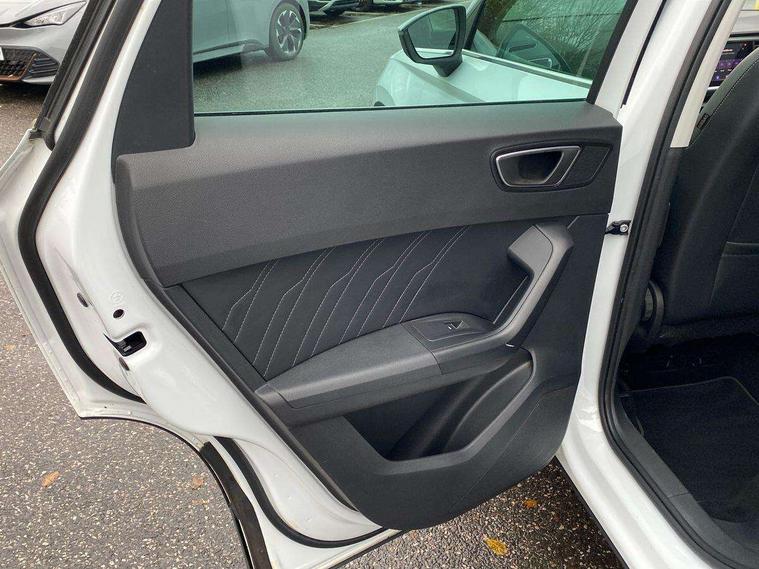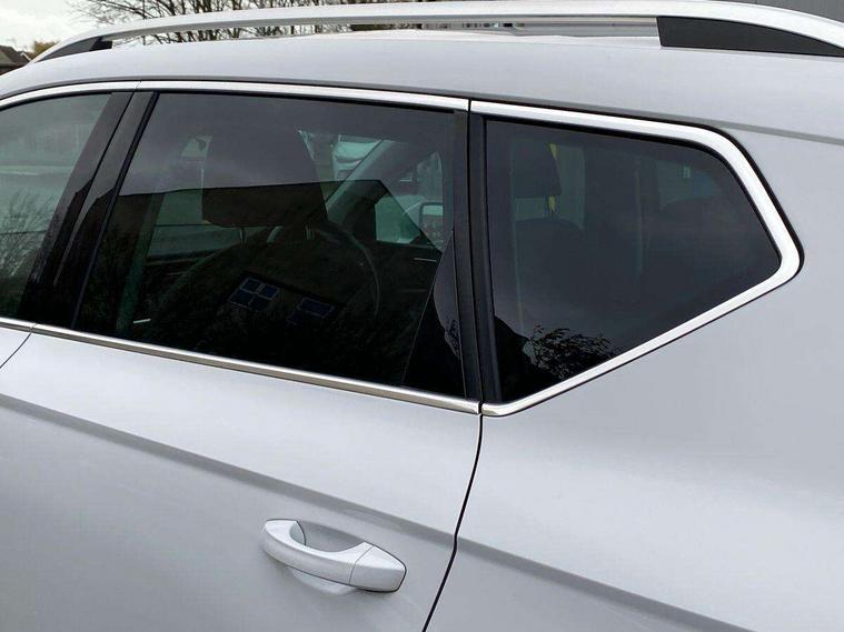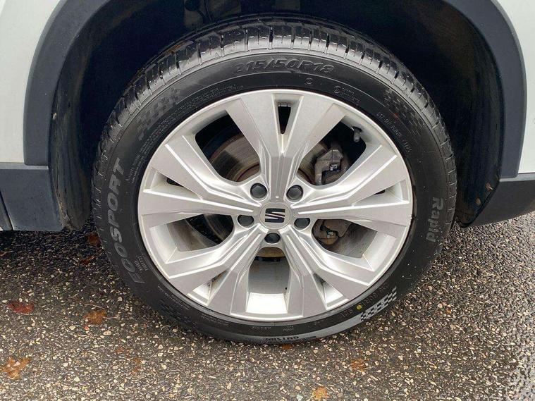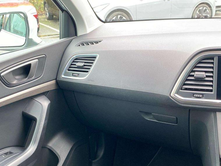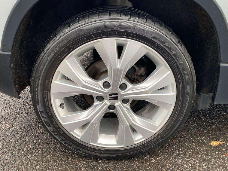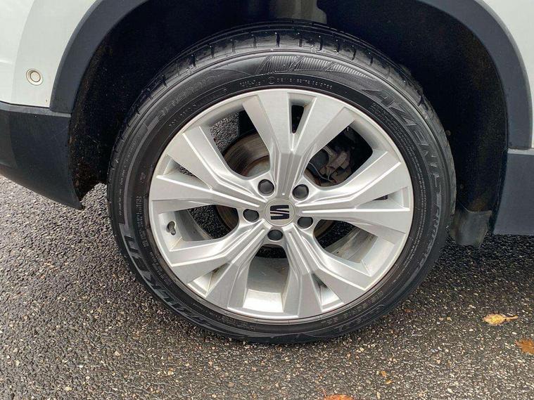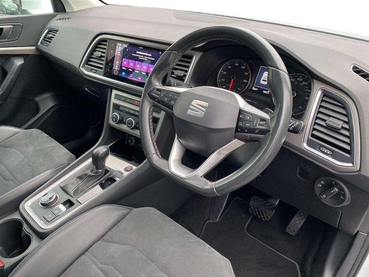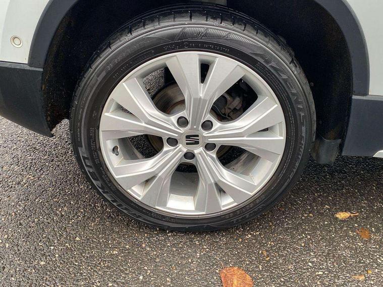 E-call, Outside temperature gauge, Progressive power assisted steering, Rear view camera, SEAT drive profile with driving experience button - Normal, Sport, Eco and Individual mode, gearshift, steering and throttle response, Self parking functionality (includes front and rear parking sensors), Trip computer, Wireless full link smartphone integration, Wireless phone charger, Steering wheel mounted audio/phone controls, Black simulated exhaust pipes, Body colour bumpers, Body coloured wheel arch surrounds, Chrome front grille frame, Chrome roof rails, Chrome side window trim, Dark tinted rear windows, Daytime running lights, Door mirrors with welcome light silhouette, Dynamic headlight range control with self adjusting whilst driving, Electric adjustable/heated/folding door mirrors, Front and rear electric windows, Front grille hot stamping, Full LED headlamps with lens and LED front fog lamps with cornering function, Illuminated aluminium front door sill, LED rear tail lights with dynamic indicators, Rear fog lights, Rear side wing doors, Rear wash/wipe, Reflex silver side mouldings, 12V socket in front, 3 seat bench in 2nd row, 60/40 split folding rear seat, Dual zone climate control, Front and rear head restraints, Front centre armrest, Front seat back storage pockets, Height adjustable driver and passenger seat with lumbar adjustment, ISOFIX points in outer rear seats with top tether anchorage points, Leather steering wheel and gear knob, Microsuede upholstery with front comfort seats, Rear armrest and easy back seat release mechanism from boot, Single front passenger seat, Steering wheel mounted gearshift paddles, Storage compartment under driver's seat, Convenience pack - Ateca, Interior lighting pack - Ateca, Navigation system pack with DAB - Ateca, Safe and driving pack - Ateca, 3x3 point rear seatbelts, ABS, Traction control system (TCS), Electronic stability control (ESC) and Electronic differential lock system (XDS), Airbags - Driver and front passenger airbag with deactivation, front side, two curtain and driver's knee airbags, Electric parking brake with auto hold function, Front and rear seatbelt reminder, Hill hold control, Manual rear child locks, Tiredness recognition system, Traction control, Tyre pressure monitoring system, Alarm, Keyless entry, Locking wheel bolts, Chrome interior detailing, 18" Brillaint silver alloy wheels,
