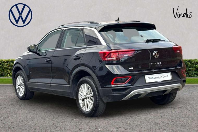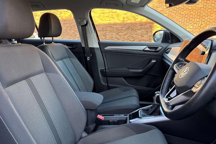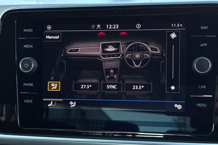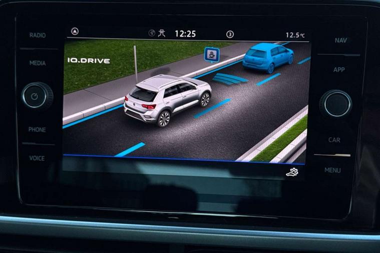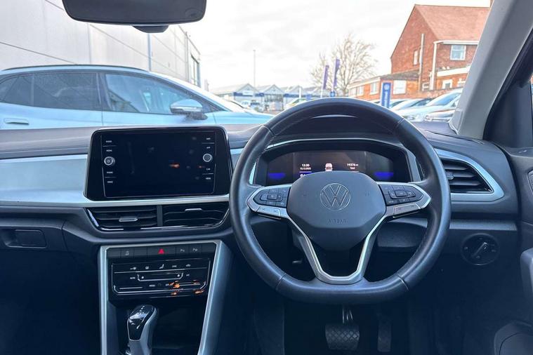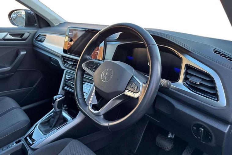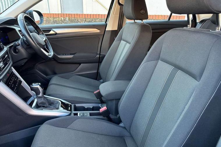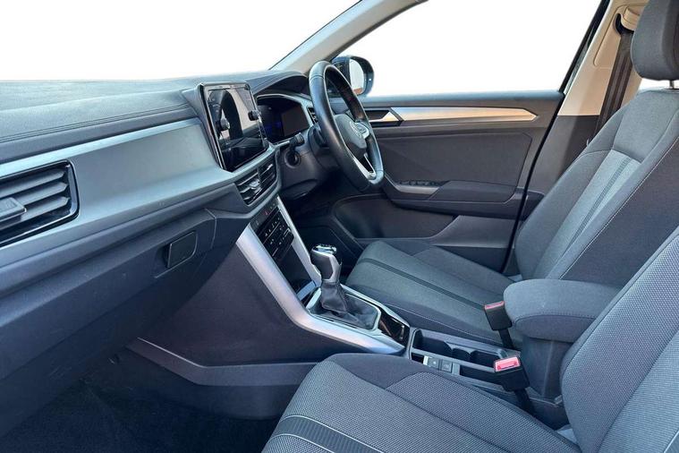 Bluetooth mobile phone interface, Driver alert system with fatigue detection, Driver tips and journey analysis, Emergency call service, Lane keeping system Lane Assist, Modified key software - reduce switch off time for key status change to Long no motion, Online services, Park assist including front and rear parking sensors, Power assisted speed sensitive steering, Service interval indicator, Tailgate/trunk lid release from outside, Think blue trainer driver tips and journey analysis, Warning sound and light for front seatbelts unfastened, Wireless app connect, Battery regeneration during braking, Front shock absorption, Rear shock absorption chassis with increased ride height, Start/stop function with battery regeneration, DAB Digital radio, Diversity antenna for FM reception, Front and rear 6 speakers, Music playback - MP3, WMA and AAC files, Premium USB cable in choice of either Apple or Android smartphone compatibility, SD card slot, Simultaneous pairing of 2 compatible mobile devices, Title and cover art display, We Connect and We Connect Plus functionality, 3rd brake light, Auto dimming interior rear view mirror, Automatic hazard lights activation under emergency braking, Automatic headlight control with LED separate daytime running lights with coming/leaving home function, Black roof rails, Body coloured bumpers and radiator grille with chrome trim and front fog lamps with chrome bezel, Body coloured exterior mirror housings and door handles, Extended roof spoiler, Exterior mirrors aspherical on driver side, convex on front passenger side, External USB type C socket and charging sockets, Front windscreen wiper with intermittent wipe and 4 position delay, Heated rear window, LED Headlights, LED rear combination lamps, LED rear number plate lights, LED tail lamp rear comination lamps, Power windows with comfort operation and circuit breaker, Rain sensor, Rear exhaust tailpipe, Rear fog light on one side and reversing lights on both sides, Rear side wing doors, Rear wash/wipe with intermittent wipe setting, Remote electrically foldable door mirrors, puddle lights and reverse activated passenger's door mirror, 12V power socket in centre console, 3 rear head restraints, 3 seat bench in 2nd row, 4 load lashing points in luggage compartment, Air care climatronic air conditoning system with active combination filter and 2-zone temperature control, Ambient lighting with mirror logo projection, Cloth upholstery, Door and side trim panel in cloth, Drawer under drivers seat, Driver/front passenger seat height adjustment, Front centre armrest, Front comfort sports seats, Front cupholders x 2, Front reading light, Instrument lighting, white adjustable panel illumination, Interior light delay, Isofix child seat preparation, Leather gearshift handle, Load-through provision with cup holder when folded down ('Unsplit rear seat bench, split folding backrest, with centre armrest), Luggage compartment lighting, Lumbar support for driver's and front passengers seat, Non-folding front passenger seat backrest, Single front passenger seat, Storage compartment in left and right luggage area, Storage compartment in rear doors, Storage compartments in driver and front passenger doors, Sunvisors with illuminated vanity mirrors, Variable boot floor, height adjustable and removable, Driver assistance pack without proactive passenger protection - T-Roc, 3 point height adj front seatbelts + pretensioners, 3 point seatbelts in outer rear with ECE label, ABS, Child locks on rear doors, Driver and front passenger airbag with front passenger airbag deactivation, Driver and front passenger safety-optimised head restraints, Drivers seatbelt reminder, Electronic parking brake, Electronic Stability Control (ESC) inc EDL (Electronic Differential Lock) and ASR (Traction Control), Front and rear passengers curtain airbag system including front side airbags, Front assist with city emergency braking and pedestrian monitoring, Front disc brakes, Front seat side impact airbags, Hill start assist, Predictive pedestrian protection, Rear disc brakes, Single tone horn, Tyre pressure loss indicator, Volkswagen roadside assistance, Alarm with interior protection, Anti-theft alarm system with interior monitoring, backup horn, and towing protection, Remote central locking with SAFELOCK, radio remote control with 2 remote control folding keys, Pewter matt decorative inserts for intrument panel and door panels at the front, Trims for alloy wheels,