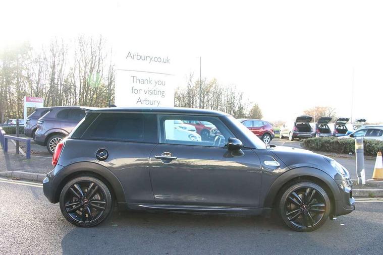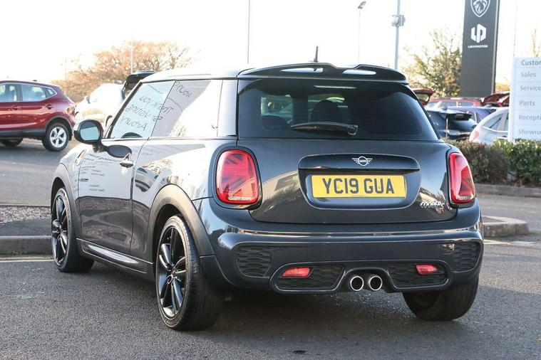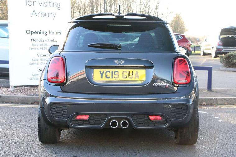 Compatible mobile phone bluetooth with audio streaming, Instrument cluster, Mini E-call, MINI TeleServices, On board computer, Service interval indicator, Performance Control, 6.5" touchscreen with LED ring, FM tuner and DAB digital radio, Automatic headlight activation switch, Bonnet scoop, Chrome border honeycomb structure radiator grille with S badge, Chrome plated fuel cap, Dynamic brake lights, Electric front+rear windows, Heated rear window, Heated windscreen washer jets, John Cooper Works - aerodynamic kit (front and rear apron, spoiler), front and rear sport bumpers and part-painted side sills with door sill finishers, John Cooper Works rear spoiler, LED headlight with closed ring and daytime driving lights, Metal door sill strips with Cooper S imprint, Model logo Cooper S on right of tailgate, Rain sensor window wipers, Rear fog lights, Rear LED lights with union jack design, Rear window wiper, Side scuttle panel with integrated indicator, Sun/heat protection glass, Two central exhaust tailpipes with chrome finisher, White indicator lenses, 12V Accessory socket in centre console, 4 lashing eyes in luggage compartment, 60/40 split folding rear seat, Anthracite headlining, Chrome interior highlights, Cupholders, Front and rear isofix with front passenger airbag deactivation, Glove compartment, Height and length steering column adjustment, Interior lighting with 12 basic colours selectable via toggle switch in roof, John Cooper Works leather steering wheel with contrasting stitching in Chilli Red with John Cooper Works logo, John Cooper Works Logo in seat, Leather gearshift lever and handbrake gaiters, LED reading lights, vanity mirror lights, front foot well light and spotlight on front seats, Manual air conditioning, Mechanical seat adjustment, driver seat height adjust, forward/back and front seats backrest, Mini logo projection on floor from drivers exterior mirror, Multifunction steering wheel, Storage compartments in doors, Storage pocket on back of front seats, Sunvisors with vanity mirrors, Tool kit, 3 point seatbelts on all four seats, 6 Airbags - front, side, head and seat belt tensioners, Anti-lock braking system (ABS), DSC - Dynamic Stability Control, Front and rear disc brakes, Hill start assist, Two tone horn, Tyre pressure monitoring system, Alarm system with tilt sensor, monitoring doors, bonnet interior and tailgate, Electronic vehicle immobiliser, Start/stop toggle with keyless go,