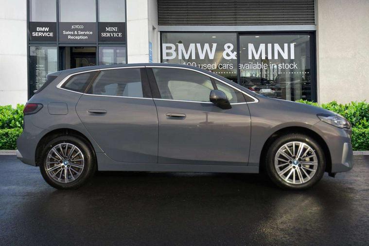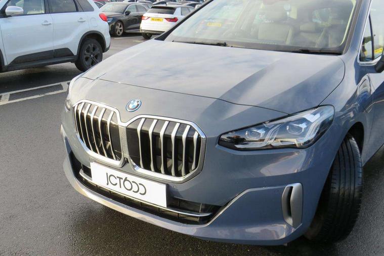 Active Guard, Attentiveness assist, Automatic powered tailgate, Automatic start/stop function, BMW Online services, BMW Operating system 9 with BMW Maps, real-time traffic information, in-car experiences, remote services and smartphone integration, BMW Teleservices, Brake pad wear indicator in front and rear, Condition based service, ConnectedDrive Services, Drive off assistant, Flat air vents on instrument panel in high gloss black, adjustable slats with elements in pearl chrome, iDrive controller, Instrument cluster with speedometer with miles per hour read out, tachometer and fuel gauge, Language version English, On board computer - average speed+fuel consumption, service interval, clock/date, odometer/trip meter, outside temperature display and ice warning, Parking assistant with active park distance control, reversing assistant, lateral parking aid and rear view camera, Servotronic variable electric power steering (EPS), Widescreen display, Wireless charging, Drive performance control with ECO PRO comfort + sport mode, eDrive exterior sound, Gear selector switch with toggle operation, Mode 3 charging cable, Performance Control, Petrol Particulate Filter, Standard suspension, Steptronic transmission with double clutch, 2x USB Type C ports in front centre console for charging and data transfer, 2x USB Type C ports in rear centre console for charging, DAB Digital radio, Personal eSim, Welcome sound upon opening of the front driver or passenger door, Air inlet middle part on front apron in lines specific design with trim strip in satinised aluminium, Automatic headlights, BMW emblem, engine compartment lid and tailgate, BMW Individual aluminium satinated exterior line, BMW radiator grille with grille struts, end face black high-gloss, radiator grille frame chrome high-gloss, Body colour roof mouldings, Body colour sill covers, Body coloured door mirror caps, Contoured rear roof spoiler in vehicle colour with side aeroblades in black high-gloss, Driver side exterior mirror lighting with BMW logo projection, Dynamic brake lights, Electric adjustable heated door mirrors, Electric windows - front and rear, with open/close fingertip control, anti-trap facility and comfort closing, Folding door handles integrated flush with surface, Front and rear windscreen wipers with heated front washer nozzles, Front bumper cover with air inlet trims for air curtains in matt black, Front bumper design elements in satinised aluminium, Front door exit lights, Front entry sills with aluminium inserts + BMW inscription, Front oramental grille with radiator grille bars in satinised aluminium, Heated rear window, Hidden exhaust pipe, High gloss shadow line, Home light, LED Daytime running lights and parking lights with turn indicators, LED number plate light, LED third brake light in rear spoiler, Manual headlight range control, Model inscription on right tailgate, Rain sensor, Rear bumper cover with two L-shaped trims in Pearl chrome, Rear bumper trim strip in satinised aluminium, Rear side wing doors, Shark fin antenna, Trailer stabilisation logic, Visible VIN plate, Welcome lighting, Windscreen washer nozzle for rear view camera, 12V power socket in luggage compartment and front centre console, 12V socket in right side trim panel, 2 bag hooks in luggage compartment, 2 front reading lights, 2 open cup holders in front centre console, 2 x USB Type C ports for charging in front centre console + 2 x USB Type C ports for charging in rear centre console, 3 seat bench in 2nd row, 40:20:40 split folding rear seat backrests, Ambient lighting front and rear, Automatic two zone climate control air conditioning, Bottle trays in all doors, Child seat ISOFIX attachment for two outer rear seats and front passenger seat with anchorage points, Embellishers on steering wheel spokes in pearl chrome, Footrest and pedals in black plastic, Four grab handles integrated in roof lining, Front and rear door pockets, Front and rear footwell lighting, Front and rear side armrest integrated into door trim, Front and rear velour floor mats in anthracite, Front centre console storage compartment, Front head restraints, Glovebox with light, Heated front seats, Height adjustable 3 rear head restraints, Illuminated wireless charging tray, Interior door handle recess light on all doors, Luggage compartment lighting, Manual adjustment of seat height, fore/aft position, seat depth, backrest tilt and head restraint height, Map pockets, Mechanical rear seats with fore/aft adjustment, Middle centre console storage compartment, Multi-function controls for steering wheel, One piece parcel shelf opens together with tailgate and removable, Rear cloth hooks, Single front passenger seat, Steering wheel column manual adjustment, Storage compartment lighting in centre console and storage tray in centre stack, Storage compartment net in left side trim panel, Storage compartment with folding cover under centre console armrest cushion, Sunvisors with illuminated vanity mirrors, Three spoke sport leather steering wheel, 3 point seatbelts on all seats, front pyrotechnic belt tensioners, stopper and belt force limiters, rear coded belt buckles, Acoustic protection for pedestrians, Airbag - Front driver and passenger, front and rear head, front side, curtain head protection, manual deactivation of front passenger airbag possible, Anti lock braking system (ABS) with brake assist, Automatic hold function, BMW emergency call, Brake drying, Braking readiness, Child proof locking system in rear door, Cornering brake control, Crash Sensor - activates hazard/interior lighting + unlocks doors, DSC - Dynamic Stability Control, Dynamic brake control, Dynamic Traction Control - DTC, Electromechanical parking brake, Energy recovery system, Front disc brakes, Integrated braking system, PC iBrake PostCrash approach control warning with light braking function, Rear disc brakes, Tyre pressure monitoring system, Warning triangle and first aid kit, Anti theft alarm system, Closin