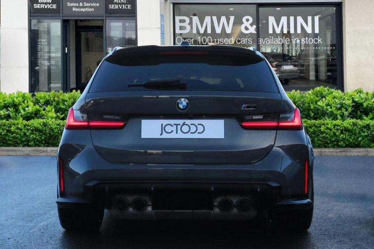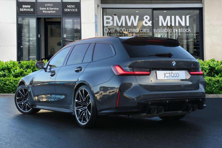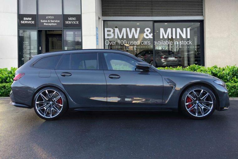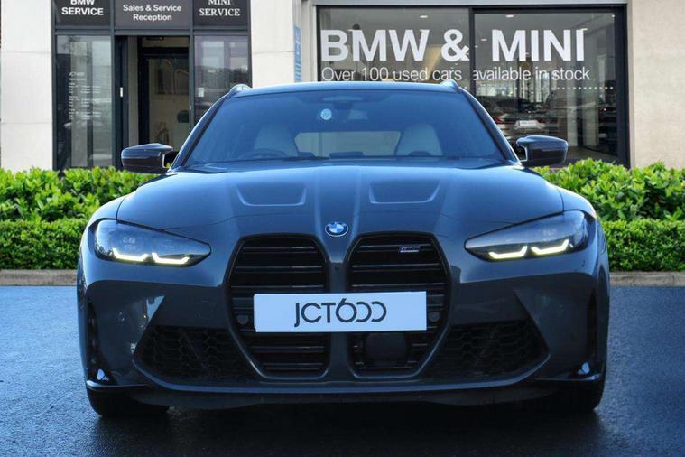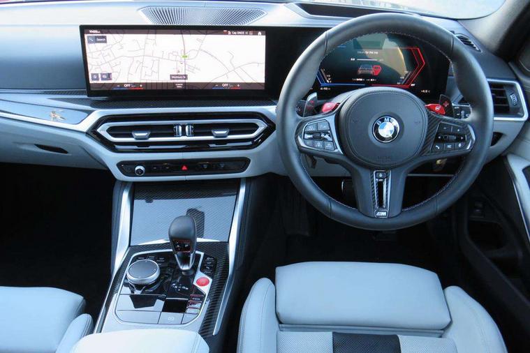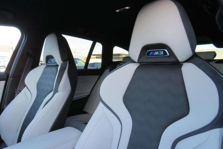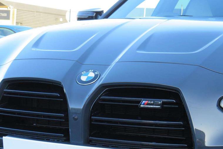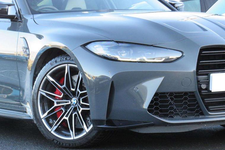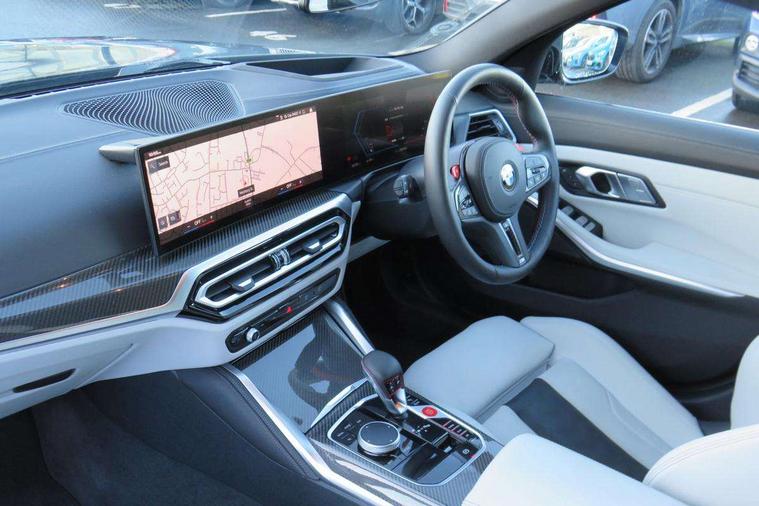 Active guard plus, Automatic start/stop system, Bluetooth functionality with Apple CarPlay/Android Auto, BMW ConnectedDrive online services, BMW iDrive controller on centre console, BMW legal emergency call, BMW Live Cockpit Professional sat nav system with 12.3" instrument display and high resolution control display, BMW Online services, BMW Teleservices, Brake pad wear indicator warning light, Condition based service, Door/boot open warning light, Driving experience switch, Electric boot lid, Head up Display, Illuminated control elements, Instrument cluster with extended contents, Lights on warning, M drive buttons, Oil sensor for level and grade, warning by check control system, Oil temperature gauge, On board computer, On board diagnostics, Optimum shift indicator, Outside temperature display, Pull away assistant, Run flat indicator, Service interval indicator, Shifting point display, Speed limiter, Variable sport steering, Adaptive M Sport suspension, Double joint spring strut front axle, M Drive Professional including track mode, laptimer, traction control & Drift analyser, M Sport differential, M steptronic sport transmission with drivelogic, Safety battery terminal clamp, 8 programmable favourite buttons, Auxiliary point for auxiliary devices, DAB Digital radio, Harman/Kardon loudspeaker system, Personal eSim, 3rd brake light, Acoustic glazing, Auto dimming driver's door mirror, Auto dimming rear view mirror, Automatic headlights + automatic windscreen wipers, Automatic parking function on front passenger's exterior mirror, Black model designation badges, BMW emblem on engine compartment lid and tailgate, BMW high gloss shadow line with extended contents, BMW Individual shadowline lights, Body colour bumpers, Carbon fibre reinforced plastic (CFRP) roof with high gloss black roof aerial bulge and roof mouldings, Day time running light, Door mirror integrated indicators, Door sill finishers with aluminium inserts, Dynamic brake lights, Electric adjustable heated door mirrors, Electric folding door mirrors, Electric front and rear windows with one touch/convenient open/close function, Follow me home headlights, Front and rear apron plastic in body colour, Front and rear bumper system, Headlight beam throw control, Heat protection, sun protection glazing, Heated rear window with automatic switch off, Heated washer jets, High beam assistant, High gloss black frameless kidney grille with M badge, High gloss black lower bumper edges, side sills and diffuser edge binding, High gloss black M roof rails, Illuminated bow type door handles in body colour drivers side with door lock, LED number plate light, LED tail lights with 3D L-shaped LED light design, M designation, M Sport entry door sill strips, Mirror glass aspheric on driver's side, convex on passenger side, Rear fog lights, Rear reflectors, Rear right M3 competition inscription, Rear side wing doors, Rear wiper, Reversing light, Shark fin roof aerial, Strakes in front side panel, black matt/black high-gloss, with model badge, Visible VIN plate, Welcome lighting, 2 front cupholder in centre console with clamping elements and matt black inlay, 2 x 12 V Power sockets (luggage compartment and front centre console), 2 x USB Type C ports for charging and data transmission in front centre console, 3 folding rear headrests, 3 seat bench in 2nd row, Ambient inside door handle light, Ambient lighting for instrument panel, Ambient lighting for storage compartment, Ambient lighting front and rear, Ambient lighting in door panels, Anthracite headlining, Battery in luggage compartment, Carbon fibre centre console incl. cover for cupholders and storage compartment, Carbon fibre decorative steering wheel finishers, Carbon fibre shift paddles, Carbon fibre strip in instrument panel on front passenger side, Centre console armrest with storage compartment, Compartment in front of cupholder, Driver/passenger sunvisors with illuminated vanity mirrors + covers, Dynamic ambient interior lighting, Electric front seats + driver memory, English handbook, Floor mats in velour, Folding rear centre armrest with 2 cupholders, Front door storage bins with bottle holder, Front isofix attachment + airbag deactivation, Front seat backrest width adjustment, Front seats lumbar support, Front/rear door armrests, Gearshift lever with embossed M badge, Heated front seats, Height adjustable front headrests, Isofix on 2nd row outer seats, Lockable/illuminated glovebox, Luggage compartment lighting, Manual 40:20:40 split folding rear seat with two tilt positions for backrest, Multifunction steering wheel, Rake/reach adjustable steering wheel, Single front passenger seat, Storage compartment in rear doors, Three zone automatic air conditioning, Through loading system, Toolkit located in luggage compartment, Wireless charging tray, Additional storage compartment pack - M3, Connected package professional - M3, High gloss shadowline exterior trim pack - M3, 3 point seatbelts on all seats, Anti-lock braking system (ABS), Automatic Stability Control (ASC), Brake energy regeneration, Brake fade compensation, Compound structure brake discs, Cornering brake control (CBC), Crash sensor, Driver/Front Passenger airbags, Dry braking, Dynamic brake control, Dynamic stability control + (DSC+), Dynamic Traction Control - DTC, Electromechanical parking brake, Electronic differential lock control (EDLC), Front and rear head airbags, Front seat side impact airbags, Front seatbelt pretensioners + load limiters, Hill start assist, M Sport seat belts, Rear child proof door locks, Seat occupancy detection for driver and passenger side, Seatbelt warning, Side impact protection, Two tone horn, Tyre pressure sensor, Warning triangle and first aid kit, Centre lock switch, Closing system with central locking, Digital key, Electronic immobiliser, Thatcham cat 1 remote alarm, Vehicle Key with 4 buttons including the integrated key, Galvanic finish to control surrounds, High gloss black interior trim, T