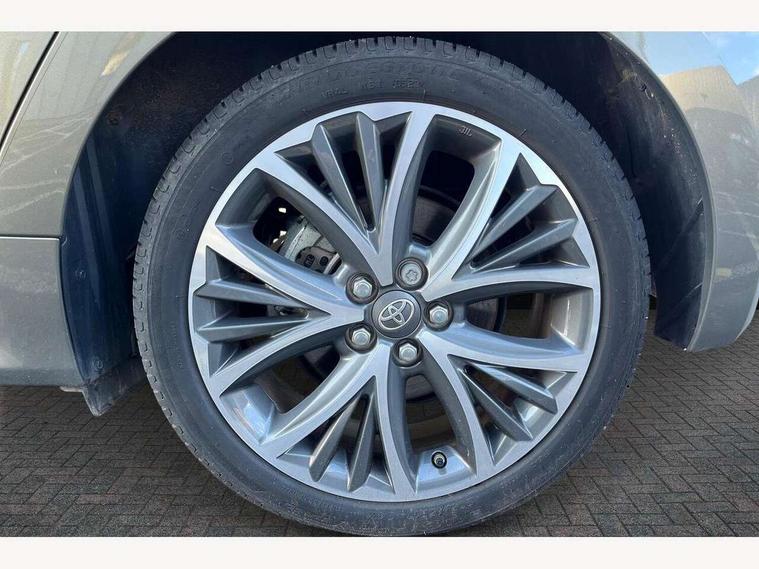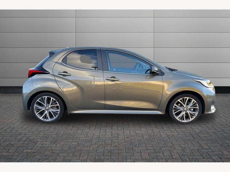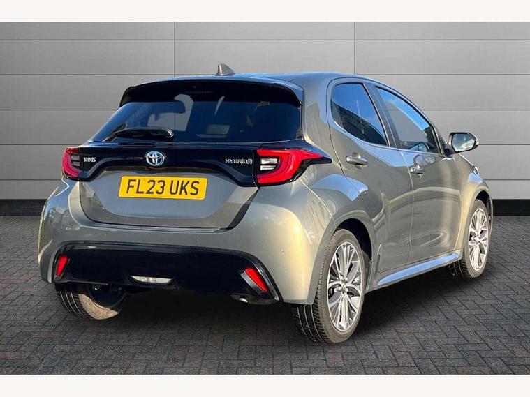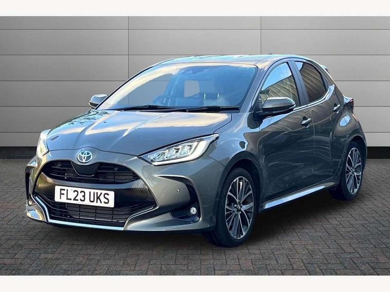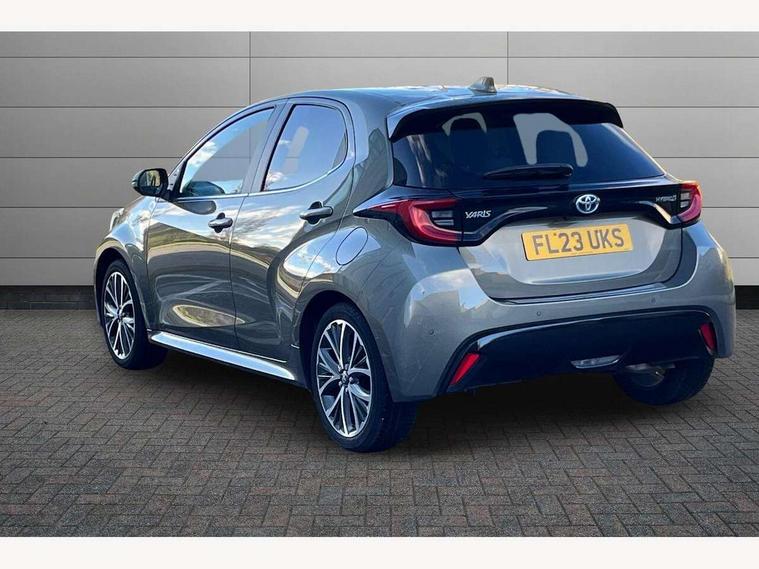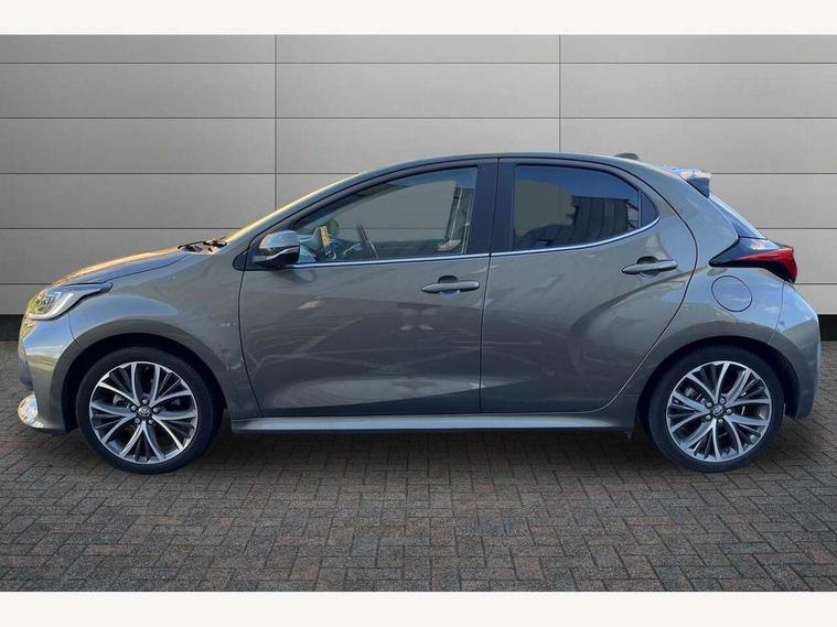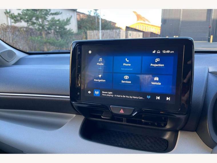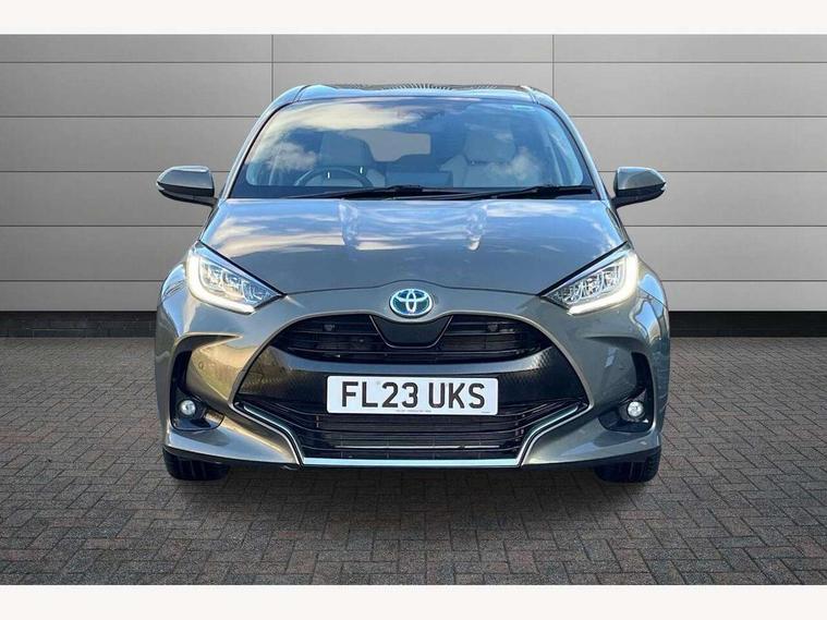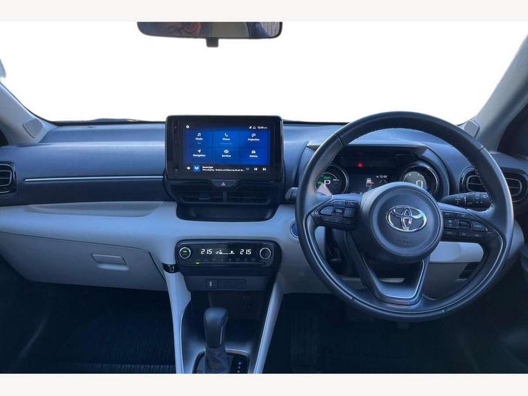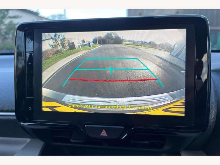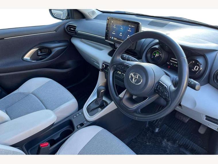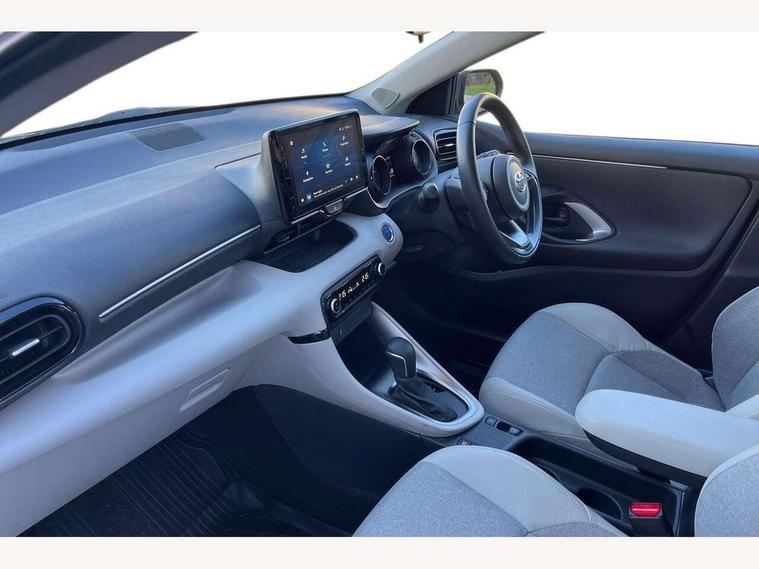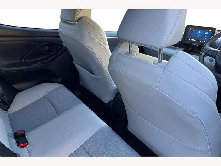 Adaptive cruise control, Adjustable speed limit with speed warning, Blind spot monitoring, Bluetooth connectivity, Colour binocular inspired displays with digital speedometer, E-call, Electric power steering, Hybrid energy display, Multi information display switches on steering wheel, Reversing camera, Smartphone integration with Apple CarPlay and Android auto, Tailgate, Touch 2 navigation system, Voice recognition, Vehicle Stability Control (VSC), 6 speakers, 9" HD multimedia display touch screen with Toyota smart connect, USB connection, Acoustic windscreen glass, Auto windscreen wipers, Automatic headlights, Automatically retractable door mirrors, Body coloured door mirrors, Electric adjustable heated door mirrors, Follow me home headlights, Front auto power windows with anti jam protection, Full LED rear lights, LED daytime running lights, LED front fog lights, LED front light guide, LED Headlights, LED High mounted stop lamp, LED Indicators, LED rear light guide, Manual headlight levelling, Painted chequered front grille, Rain sensor, Rear auto power windows with anti jam protection, Rear privacy glass, Rear side wing doors, Rear spoiler, Rear wiper, Satin lower front grille, Shark fin antenna, Turning signal integrated indicators in door mirrors, Variable front intermittent wipers, 3 adjustable rear headrests, 3 seat bench in 2nd row, 3 spoke leather steering wheel, 60/40 split folding rear seat, Active headrests, Adjustable boot height, Coat hooks in rear grab handles, Cup holders (2 front & door), Data Communication Module (DCM) connected services, Dual zone automatic air conditioning, Fabric seat with partial synthetic leather upholstery, Front armrest, Front sport seats, Glovebox, Grey roof lining, Height adjustable driver's seat, Height adjustable passenger seat, Isofix seat fixing, Leather gearshift, Map pockets on the backs of the front seats, Pollen filter, Shopping bag hooks, Single front passenger seat, Tilt/telescopic steering column, Parking pack - Yaris, 3 point seatbelts on all rear seats, ABS+EBD+Brake assist, Electronic parking brake, Emergency brake light system (EBS), Front passenger airbag on/off switch, Front seatbelt reminder, Hill start assist control (HAC), Rear child proof door locks, Rear seat belt reminder, Supplemental Restraint System (SRS) 8 airbags: Driver & passenger's airbags, dual side curtain airbags, side impact airbags, front centre airbag, Toyota Safety Sense 2, Precollison + Night time Pedestrian & Cyclist Detection, Lane Trace Assist, Auto High Beam, Intelligent ACC & Road Sign Assist, Tyre pressure warning system, 2x Master key, Alarm/immobiliser, Keyless smart entry with push button start, Remote AC via MyT, Remote locking via MyT, Remote powered central double locking doors, Satin chrome interior styling, Soft touch instrument panel, Space saver spare wheel,