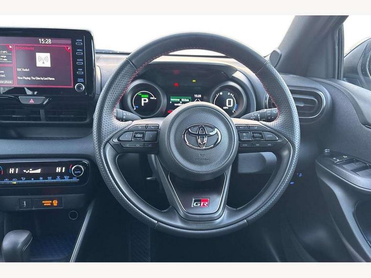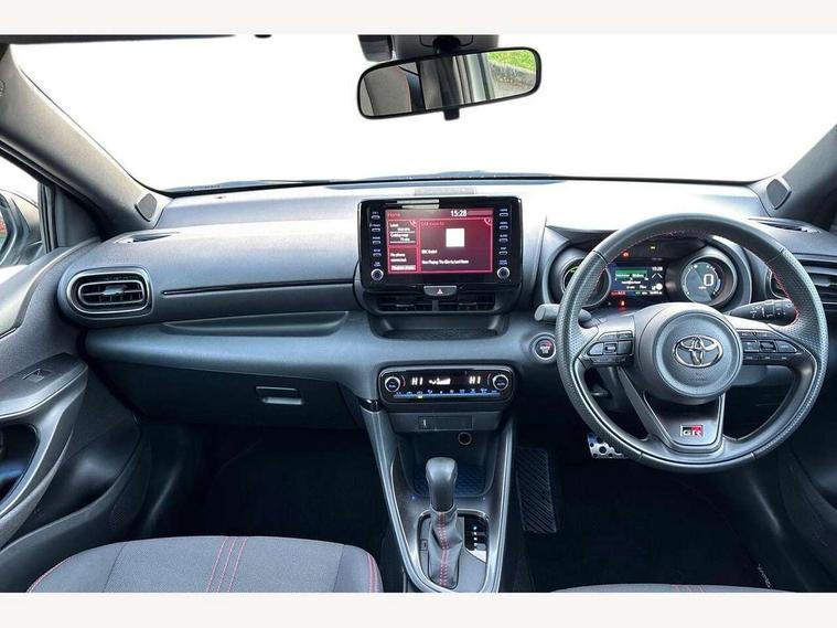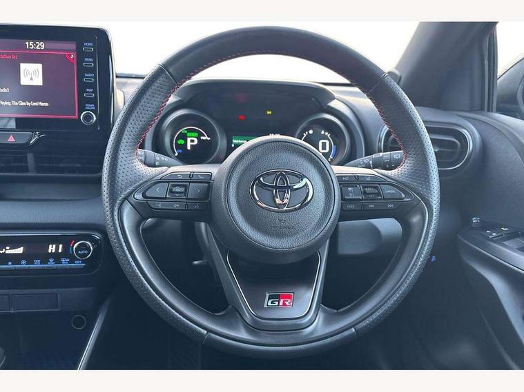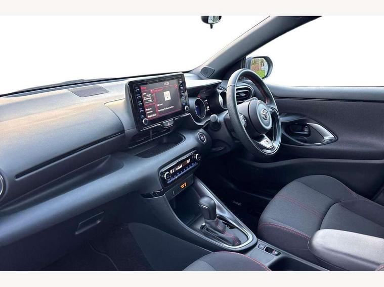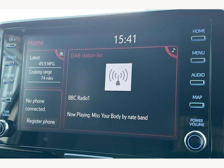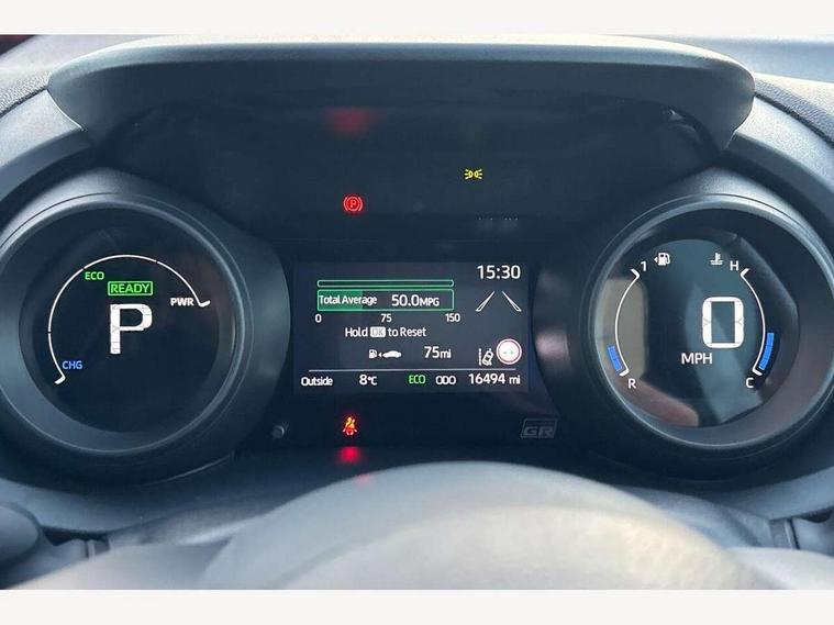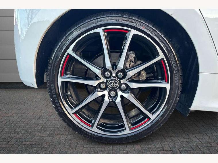 Adaptive cruise control, Adjustable speed limit with speed warning, Bluetooth connectivity, Colour binocular inspired displays with digital speedometer, E-call, Electric power steering, Hybrid energy display, Multi information display switches on steering wheel, Reversing camera, Smartphone integration with Apple CarPlay and Android auto, Tailgate, Voice recognition, Vehicle Stability Control (VSC), 6 speakers, 8" Multimedia display touch screen, Toyota Touch 2 with DAB, USB connection, Acoustic windscreen glass, Auto windscreen wipers, Automatic headlights, Body coloured door mirrors, Dark chrome lower front grille, Electric adjustable heated door mirrors, Follow me home headlights, Front auto power windows with anti jam protection, Full LED rear lights, LED daytime running lights, LED front fog lights, LED front light guide, LED Headlights, LED High mounted stop lamp, LED Indicators, LED rear light guide, Manual headlight levelling, Painted chequered front grille with hot stamp in mesh design, Rain sensor, Rear auto power windows with anti jam protection, Rear privacy glass, Rear side wing doors, Rear spoiler, Rear wiper, Shark fin antenna, Turning signal integrated indicators in door mirrors, Variable front intermittent wipers, 3 adjustable rear headrests, 3 seat bench in 2nd row, 3 spoke leather steering wheel, 60/40 split folding rear seat, Active headrests, Adjustable boot height, Black roof lining, Coat hooks in rear grab handles, Cup holders (2 front & door), Data Communication Module (DCM) connected services, Dual zone automatic air conditioning, Fabric upholstery with red stitching, Front armrest, Front sport seats, Glovebox, Height adjustable driver's seat, Height adjustable passenger seat, Isofix seat fixing, Leather gearshift, Map pockets on the backs of the front seats, Pollen filter, Shopping bag hooks, Single front passenger seat, Tilt/telescopic steering column, 3 point seatbelts on all rear seats, ABS+EBD+Brake assist, Electronic parking brake, Emergency brake light system (EBS), Front passenger airbag on/off switch, Front seatbelt reminder, Hill start assist control (HAC), Rear child proof door locks, Rear seat belt reminder, Supplemental Restraint System (SRS) 8 airbags: Driver & passenger's airbags, dual side curtain airbags, side impact airbags, front centre airbag, Toyota Safety Sense 2, Precollison + Night time Pedestrian & Cyclist Detection, Lane Trace Assist, Auto High Beam, Intelligent ACC & Road Sign Assist, Tyre pressure warning system, 2x Master key, Alarm/immobiliser, Keyless smart entry with push button start, Remote AC via MyT, Remote locking via MyT, Remote powered central double locking doors, GR Sport interior styling with accents and exterior styling, Piano black interior trim, Soft touch instrument panel, 18" machined face alloy wheels with GR Sport red deco lines, Space saver spare wheel,
