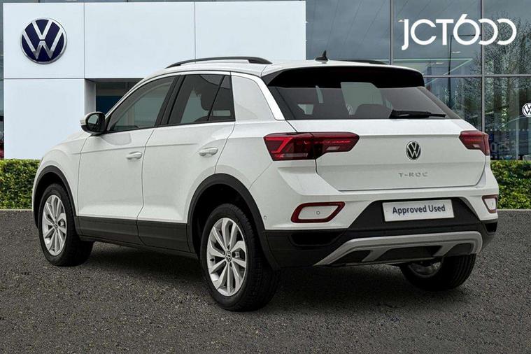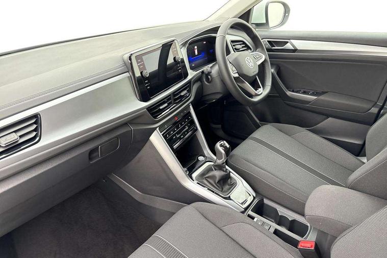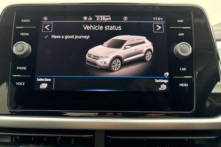 Advanced driver attention and drowsiness monitor, Dynamic road sign display, Emergency call service, Lane keeping system Lane Assist, Mobile phone interface, Modified key software - reduce switch off time for key status change to Long no motion, Online services, Park assist including front and rear parking sensors, Power assisted speed sensitive steering, Rear view camera, Service interval indicator, Tailgate/trunk lid release from outside, Think blue trainer driver tips and journey analysis, Warning sound and light for front seatbelts unfastened, Wireless app connect, Battery regeneration during braking, Front shock absorption, Rear shock absorption chassis with increased ride height, Start/stop function with battery regeneration, DAB Digital radio, Diversity antenna for FM reception, Music playback - MP3, WMA and AAC files, Premium USB cable in choice of either Apple or Android smartphone compatibility, SD card slot, Simultaneous pairing of 2 compatible mobile devices, Title and cover art display, We Connect and We Connect Plus functionality, Auto dimming interior rear view mirror, Automatic hazard lights activation under emergency braking, Automatic headlight control with LED separate daytime running lights with coming/leaving home function, Black roof rails, Body coloured bumpers and radiator grille with chrome trim and front fog lamps with chrome bezel, Body coloured exterior mirror housings and door handles, Electrically adjustable and heated door mirrors, Extended roof spoiler, Exterior mirrors aspherical on driver side, convex on front passenger side, External USB type C socket and charging sockets, Front windscreen wiper with intermittent wipe and 4 position delay, Heated rear window, LED 3rd brake light, LED rear combination lamps, LED rear number plate lights, Power windows with comfort operation and circuit breaker, Privacy glass for rear side windows and rear window, Rain sensor, Rear exhaust tailpipe, Rear fog light on one side and reversing lights on both sides, Rear side wing doors, Rear wash/wipe with intermittent wipe setting, Remote electrically foldable door mirrors, puddle lights and reverse activated passenger's door mirror, 12V power socket in centre console, 3 rear head restraints, 3 seat bench in 2nd row, 4 load lashing points in luggage compartment, Air care climatronic air conditoning system with active combination filter and 2-zone temperature control, Black stitching for floor mats, Ceramique roof liner, Cloth upholstery, Door and side trim panel in cloth, Drawer under drivers seat, Driver/front passenger seat height adjustment, Front centre armrest, Front comfort sports seats, Front cupholders x 2, Front reading light, Front seat back storage pockets, Glove compartment door with light, Instrument lighting, white adjustable panel illumination, Interior ambient lighting and surround lighting, Interior light delay, Isofix child seat preparation, Leather gearshift handle, Load-through provision with cup holder when folded down ('Unsplit rear seat bench, split folding backrest, with centre armrest), Luggage compartment lighting, Lumbar support for driver's and front passengers seat, Non-folding front passenger seat backrest, Single front passenger seat, Storage compartment in left and right luggage area, Storage compartment in rear doors, Storage compartments in driver and front passenger doors, Sunvisors with illuminated vanity mirrors, Variable boot floor, height adjustable and removable, Driver assistance pack without proactive passenger protection - T-Roc Life/Match, 3 point height adj front seatbelts + pretensioners, 3 point seatbelts in outer rear with ECE label, ABS, Child locks on rear doors, City emergency braking and pedestrian monitoring, Driver and front passenger airbag with front passenger airbag deactivation, Driver and front passenger safety-optimised head restraints, Drivers seatbelt reminder, Electronic parking brake, Electronic Stability Control (ESC) inc EDL (Electronic Differential Lock) and ASR (Traction Control), Front and rear passengers curtain airbag system including front side airbags, Front disc brakes, Hill start assist, Predictive pedestrian protection, Rear disc brakes, Two tone horn, Tyre pressure loss indicator, Volkswagen roadside assistance, Alarm with interior protection, Keyless locking and starting system keyless access with safelock, Pewter matt decorative inserts for intrument panel, centre console and door panels at the front, Trims for alloy wheels,