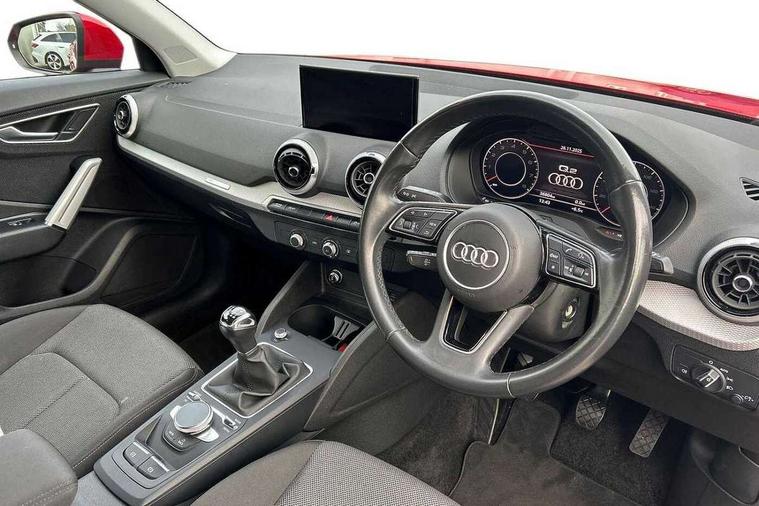 Aluminium interior element, Inlays in silver grey diamond paint, Anti theft alarm, Anti theft wheel bolts, Manual child locks, 2 x SDXC card reader, 6 passive loudspeakers, DAB Digital radio, DVD Drive, 3x3 point rear seatbelts, 6 airbags - Front, curtain and front side airbags, Electromechanical parking brake, Electronic stabilisation control including ABS, ASR and EDL, Front passenger airbag deactivation, Hill hold assist, Pre-sense front with pedestrian recognition, Seatbelt monitoring, Tyre pressure warning light, Warning triangle and first aid kit, Auto dimming rear view mirror, Black window trims, Body colour door mirrors, Electrically adjustable, folding, auto dimming and heated door mirrors with integrated LED side indicators, Front windscreen with grey tinted sunband, LED daytime running lights, LED headlights with LED rear lights + dynamic rear indicators, LED third brake light, Rear side wing doors, Rear wiper, Side skirts in manhattan grey, Variable front intermittent wipers, Wheel arch trims in manhattan grey, 12v socket in front, 3 seat bench in 2nd row, 4-way electric lumbar support for front seats including seat height adjustment for both front seat, 60/40 split folding rear seat bench, Front and rear head restraints, Front centre armrest, Front/rear floor mats, Height/reach adjust steering wheel, Index cloth upholstery + front sports seats, Single front passenger seat, Titanium grey cloth headlining, Tool kit, Audi connect navigation and infotainment includes innovative services, Audi connect remote and control connects your vehicle to your smartphone, Audi drive select, Audi smartphone interface, Audi virtual cockpit, Automatic start/stop system with recuperation, Bluetooth interface includes bluetooth audio streaming, Cruise control, E-call, MMI navigation plus with MMI touch, Power operated tailgate, Progressive steering, Rear parking sensors,