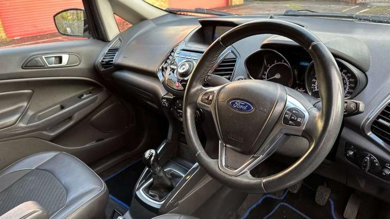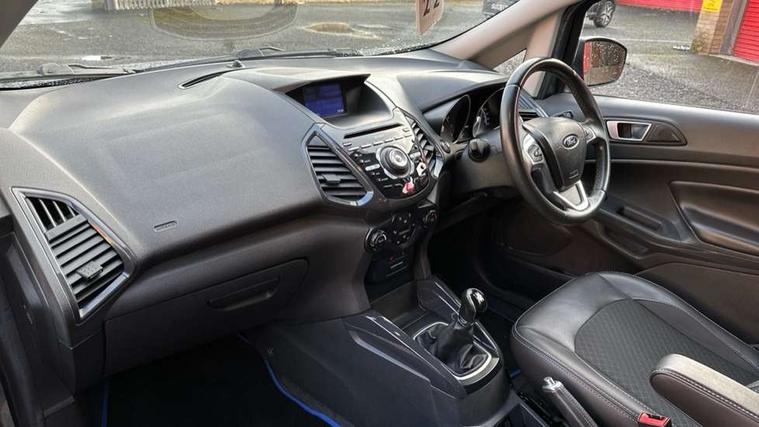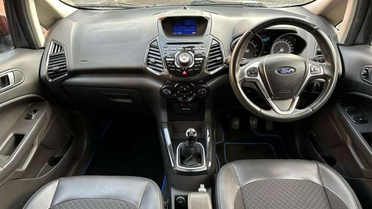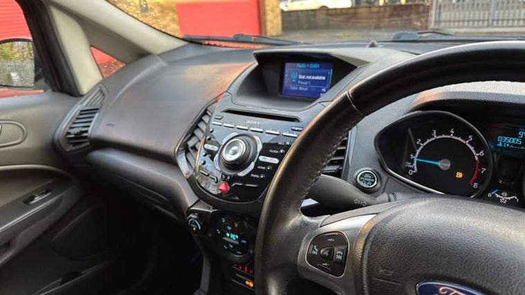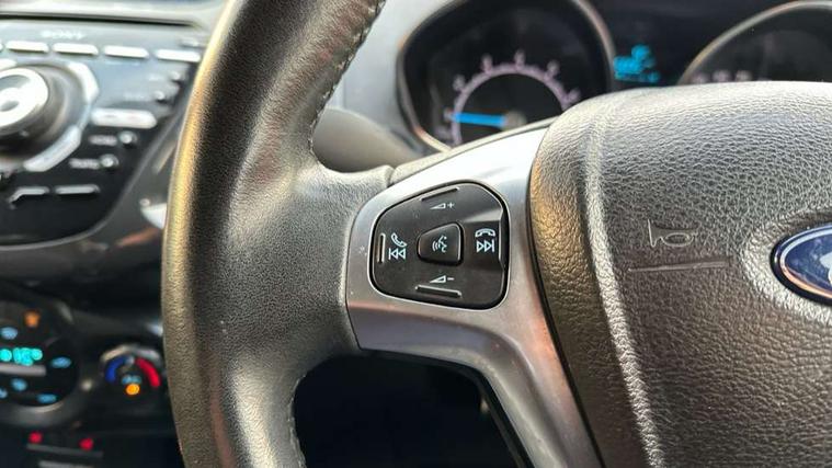 'Ford Power' starter button, Cruise control, Easy fuel capless refuelling system, Ford SYNC including 6 speakers and 3.5" colour screen Bluetooth connection with voice control and USB port, PAS, Trip computer, Sports suspension, Audio remote control, Aux-in socket, Radio/CD, Auto dimming rear view mirror, Automatic headlights + automatic windscreen wipers, Black roof and mirror caps, Chrome front fog lights, Daytime running lights, Electric door mirrors, Front grille with chrome trim surround, LED headlamp signature, Power front and rear windows, Rear privacy glass, Rear wiper, Silver coloured inserts to bumpers, 60/40 split rear seats, Cooled glovebox, Driver seat lumbar adjustment, EATC - Electronic Auto Temperature control, Floor mats, Front armrest, Front head restraints, Front stowage pocket, Height adjustable driver's seat, Multifunction leather steering wheel with leather gear knob/handbrake grip, Part leather upholstery, Rake adjustable rear seats, Reach + rake adjustable steering column, Rear headrests, Silver front scuff plates, Storage drawers under front seats, Sunglasses holder, 3x3 point rear seatbelts, ABS, Curtain airbags, Driver airbag, ESP, Front side airbags, Hill hold control, Passenger airbag, Tyre pressure monitoring system, Immobiliser, Keyless entry, Remote central locking, Thatcham Cat.1 alarm, 17" 7x2 spoke Black alloy wheels, Full size alloy spare wheel,