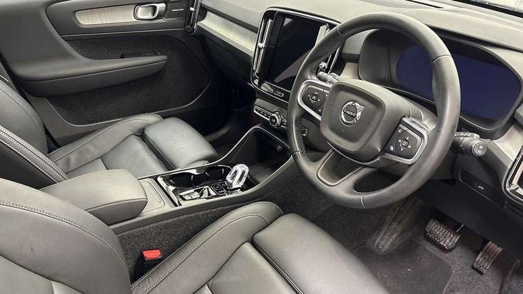12.3" Progressive Driver Display, 360 degree surround view parking camera with side proximity sensors, 9" centre console portrait touch screen, Adjustable steering wheel force, Android auto (Wired), Apple carplay (wired), Bluetooth handsfree system, Driver alert control, Driver assistance (pilot assist and adaptive cruise control), Driver awareness - Blind spot information system with steer assist, cross traffic alert with autobrake and rear collision warning and mitigation, E-call, Front park assist, Google automotive services - Enabled entertainment apps, navigation with google maps, voice recognition with google assistant, Hands free power tailgate, Intelligent speed assistance, Lane keeping aid, Oncoming Lane Mitigation, Rear park assist, Speed sensitive steering, Volvo cars services with app - Driving journal, emergency and breakdown call, engine remote start, remote door locking/unlocking and vehicle dashboard, Wireless/Inductive Mobile Phone Charging, Automatic transmission with start/stop and manual change functions, Dynamic chassis, DAB Digital radio, Premium Sound by Harman Kardon, Dolby Pro Logic II Surround Sound, Dirac Unison, 12 speakers/600W and subwoofer, Steering wheel mounted remote controls, Active bending pixel LED headlights with adaptive shadow technology, Active high beam incorporating daytime running lights, Adaptive brake lights with high level LED brake lights, Auto dimming feature for exterior door mirrors, Auto dimming interior mirror, Automatic headlamp levelling, Dark tinted windows - rear side windows and rear screen, Front aluminium tread plates, Front and rear electric windows, Headlight cleaning system, High gloss black front and rear skid plate, High gloss black front bumper deco, High gloss black mesh front grille with high gloss black surround, High gloss black window trim, Home safe and approach lighting, Integrated roof rails in high gloss black, LED front fog lights with cornering function, Power glass tilt and slide panoramic sunroof with sun curtain, Puddle lights, Rain sensor with automatic windscreen wiper activation, Rear side wing doors, Rear wiper, Roof antenna, Roof spoiler, Visible VIN plate, 12V socket in front tunnel console and luggage compartment, 2-Zone electronic climate control with CleanZone air quality system and pollen filter, 3 seat bench in 2nd row, 3 Spoke tailored steering wheel with chrome trim, 60/40 versatile split folding rear seat, Centre console cupholders and storage, Flexible load floor and grocery bag holder, Floor mats, Front cabin courtesy lights, Front door pocket, front cupholder, ambient front door, rear reading, rear courtesy, instrument panel and tailgate lighting, Front footwell illumination, Front headrests, Front reading lights, Front seat cushion extensions, Front side step illumination (under door), Glovebox bag hook, Heated front seats, Height/reach adjustable steering column, High gloss centre tunnel deco, Illuminated glovebox, Illuminated luggage compartment, Illuminated vanity mirrors + ticket holder, Integrated waste bin, Isofix attachments on outer rear seats, Load cover, Load protection net, Multi directional lumbar support for driver and passenger seat, Power driver seat with memory + exterior mirrors memory, Power folding rear headrests, Power passenger seat, Rear armrest with cupholders, Single front passenger seat, Underfloor cargo storage, Climate pack without heated front seats - XC40, 3x3 point rear seatbelts, City safety with steering support with Pedestrian + cyclist + front collision warning with full auto brake and rear auto brake, Driver and passenger airbags, Drivers knee airbag, Electronic parking brake with auto hold, First aid kit, Front and outer rear seatbelt reminder and pretensioners, Front seats SIPS airbags, Hill descent control, Hill start assist, Inflatable curtain, Passenger airbag cut-off device, Power child locks on rear doors, Road sign information display, Run off Road Protection, SIPS (Side Impact Protection System), Slippery road and hazard light alert, Stability and Traction Control with Spin control, Engine Drag Control and Corner Traction Control, Tyre pressure monitoring system, Vehicle deceleration control with Anti-lock Brake System, Electronic Brake Distribution and Emergency Brake Assist, Warning triangle, WHIPS whiplash protection system - front, 2 x Key integrated remote control central locking including with deadlocking system and auto open/close windows and sunroof, Anti-theft alarm including immobiliser/volume sensor + level sensor, Keyless drive includes keyless entry and keyless start, Locking wheel nuts,