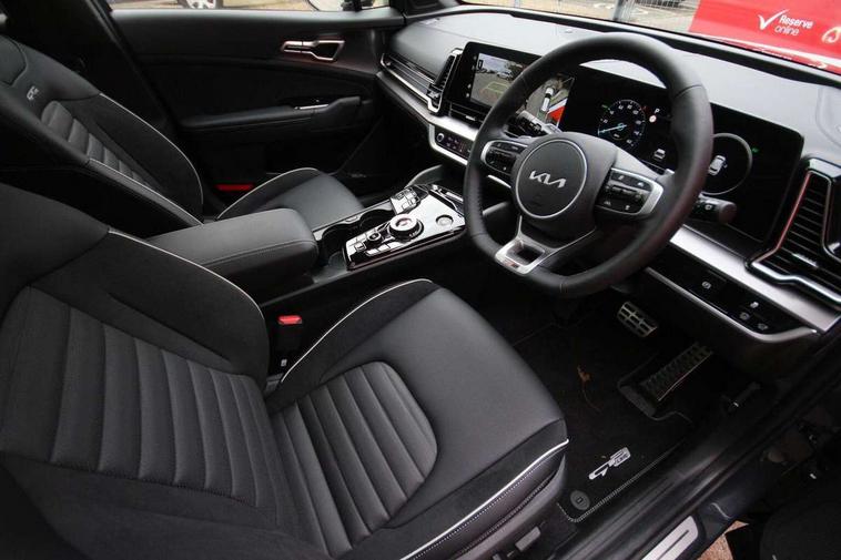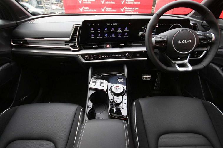 12.3" Driver display screen, 12.3" Touchscreen navigation system, 2 rear USB-C ports, 360 degree around view monitor, Apple car play/Android Auto, Blind spot collision avoidance assist, Blind spot view monitor, Drive mode selector, Driver attention warning, E-call, Emergency stop signalling system, Forward collision avoidance assist (FCA) - city/pedestrian/cyclist/junction covering, Front and rear parking sensors, Highway Driving Assist (HDA), Intelligent speed limit assist, Kia Connect (UVO), Lane Following Assist (LFA), Lane keep assist, Low washer fluid warning, Motor driven power steering, Parking collision avoidance assist (PCA), Rear cross traffic collision avoidance assist (RCCA), Remote smart parking assist, Reversing camera system integrated into centre fascia screen, Safe exit warning (SEW), Smart cruise control with stop and go functionality, Smart power tailgate, Speed limiter, Trip computer, Windscreen washer level indicator, Wireless Smartphone charger, 1x USB-C port in front, Bluetooth audio streaming, DAB Radio with MP3, Harman Kardon premium sound system with 8 speakers, Steering wheel mounted audio controls, USB C type charging ports on centre console, USB port for connection of a media device, All round electric windows with drivers and front passenger auto up/down function, Auto dimming rear view mirror, Automatic headlight control system, Automatic window defogger, Black and body coloured bumpers, Body colour exterior door handles, Body colour radiator upper garnish and door garnish, Dual LED headlights with adaptive driving beam, Electrically adjustable/heated/folding door mirrors with LED indicators, Front and rear chrome skid plates, Gloss black door mirrors, Gloss black radiator grille, Gloss black side sill and wheel arch body mouldings, Glossy black roof rack, GT-Line exterior styling, Heated rear window, High beam assist, Interior electrochromic mirror, LED daytime running lights, LED front fog lamps, LED High mounted stop light, LED rear combination lamp, Panoramic sunroof with tilting and sliding function with electric blind, Rain sensing wipers with aero blades, Rear fog lamp, Rear privacy glass, Rear side wing doors, Rear spoiler, Rear wiper, Satin finished beltline, Silver window surround, Tinted rear glass, Trailer stability assist, 12V power socket in front centre fascia and luggage compartment, 3 seat bench in 2nd row, 3 x passenger assist grips, 40/20/40 split folding rear seat, All-round height adjustable headrests, Alloy pedals, Automatic air conditioning, Black headlining, Centre console storage box, Cupholders in rear armrest, Customisable ambient lighting, Door courtesy lamps, Drink holder at centre armrest, Driver and front passenger side sunvisors with illuminated vanity mirrors, Drivers seat power lumbar support, Electric adjustable driver seat with memory function, Electric adjustable front passenger seat, Front and rear door storage, Front seat and rear pockets, Gear shift indicator, Glovebox illumination, GT-Line Interior Styling, Heated front and outer rear seats, Heated steering wheel, ISOFIX Child seat top tethers and anchor fixings outer rear seats, Leather steering wheel, LED front cabin light, LED interior personal lamp, LED lighting in overhead console, LED rear reading lights, Luggage area LED light, Luggage area load cover, Luggage area parcel shelf, Luggage board, Luggage compartment under floor storage, Luggage net with hooks, Manual adjust steering wheel, Metal paint interior door handles, Paddle shift controls, Rear air conditioning, Rear cabin light, Rear coat hooks, Single front passenger seat, Suede leather upholstery, Ventilated front seats, Ventilation ducts to rear compartment, Active front headrests, All round 3-point seatbelts, Anti-lock braking system (ABS), Dual front side airbags, Dual horn, Dynamic brake control, Electronic parking brake with auto hold function, Electronic stability control with downhill brake control, Front passenger airbag cut-off switch, Front seatbelt pretensioners + load limiters, Height adjustable front seatbelts, Hill start assist control (HAC), Impact sensing auto door unlocking, Multi collision brake assist, Rear airbags, Rear door child safety locks, Rear seat alert system, Seatbelt reminder warning, Traction control, Twin curtain airbags, Twin front airbags, Tyre pressure monitoring system, Vehicle stability management, Customisable automatic door locking, Customisable automatic door unlocking, Door deadlocks, Engine Start/Stop Button with Smart Entry System, Locking wheel nuts, Smart key with motion sensor, Speed sensitive auto door locking, Thatcham category 2 security alarm and immobiliser, Visible vehicle identification number, Aluminium pattern finish centre fascia and door garnish, 18" GT-Line alloy wheels, Tyre mobility kit,