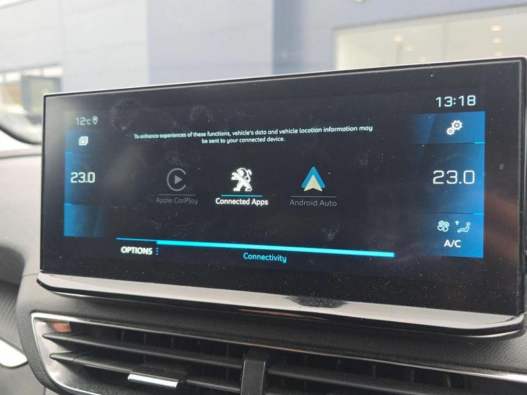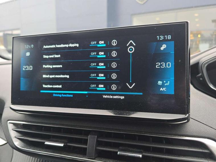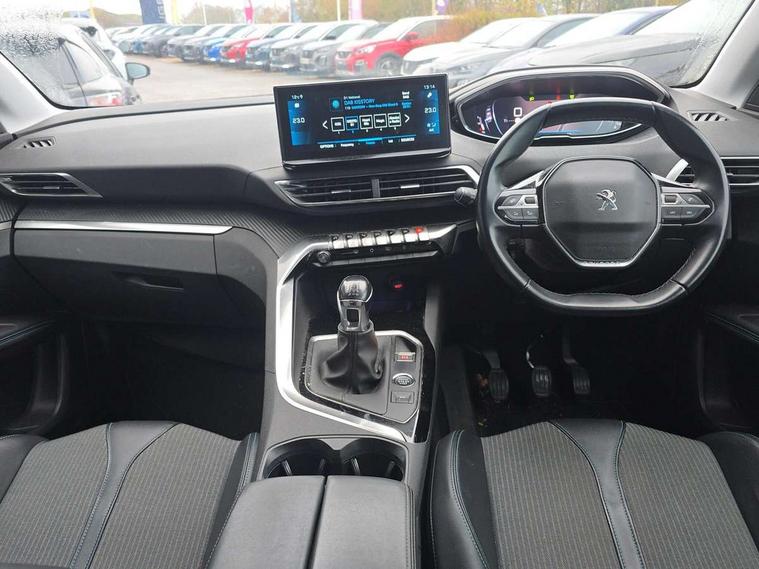 180 degree colour reversing camera, 3D connected navigation with 10" HD touchscreen, Bluetooth telephone facility, Drive modes select (Eco, normal and sport), Driving Time Warning (DAA1), Emergency services call system, Extended traffic sign recognition, Exterior temperature indicator with ice warning, Front parking sensors, Mirror screen with mirror link, apple carplay and android auto, Multi function trip computer, PEUGEOT i-Cockpit with 10" high definition capacitive touchscreen, Peugeot i-cockpit with compact multi-function sports steering wheel, PEUGEOT i-Cockpit with configurable 12.3" Head-up digital instrument panel, Programmable cruise control and speed limiter, Rear parking aid, Speed limit recognition and recommendation, Voice recognition, Dynamic stability control and electronic anti-skid system, Stop/start function, 6 speakers radio with mp3 compatible, DAB Digital radio, USB socket, Automatic hazard light activation upon heavy brake application, Automatic triggered rear windscreen wiper in reverse gear, Black rubber side window trim, Black with chrome detailed front wing trim, Body colour door handles, Body colour rear roof spoiler with stainless steel edging trim, Body colour roof, Body protectors (bottom of front and rear bumpers + wheel arches + protection at bottom of doors) in black, Chrome frameless 'Classic' grille, Chrome rear bumper facia, Dark tinted rear side windows + tailgate window, Diamond Black door mirror shells, Door mirror mounted LED courtesy floor lighting, Eco LED headlights, Electric folding door mirrors with exterior courtesy LED lighting, Electric operated/heated door mirrors, Front and rear door and sill protectors with polished stainless steel insert, Front bumper lower trim in Silver, Front windscreen wiper with magic wash cleaning system, Gloss black B and C pillar and aerodynamic deflector trim, Gloss black front bumper air scoops, Gloss black rear cluster connecting strip, Gloss black windscreen trim, Headlights left on audible warning, Heated rear windscreen with integrated antenna, LED daytime running lights, LED front indicator, LED rear number plate lighting, LED side indicator lights integrated into door mirrors, LED third brake light, One touch electric front/rear windows with pinch protection, Rear LED Peugeot signature 'Claw Effect' lights, Rear side wing doors, Stainless steel roof arches, 1/3 to 2/3 split folding rear seats, 12V Sockets in dashboard, rear cabin and load area, 2 cupholders in front centre console, 2 cupholders in rear armrest, 2 x Rear reading spotlights, 2x Rear coat hooks, 3x Isofix child seat fittings in the front passenger and outer rear seats, 4 Grab handles retractable and damped, Blue ambient lighting for connecting zone, Blue ambient lighting to headup instrument panel, Brumeo fabric trimmed door armrests, Centre front armrest with butterfly wing opening and illuminated storage compartment, Driver seat lumbar adjustment, Driver seat manual adjustment (longitudinal and back rest angle), Dual zone automatic climate control, Electric power steering with reach and rake adjustable steering column, Flocked glovebox interior, Front ambient lighting, Front interior light with 2 reading spotlights and rear interior light with timer, Front passenger seat manual adjustment (longitudinal and back rest angle), Front seat back map pockets, Gear shift indicator, Height adjustable front seats, Illuminated glovebox, Individual left and right controls in boot for seat folding, Leather steering wheel with detail stitch, LED interior lighting in storage spaces and load area, LED roof interior lighting, Rear bench seat with central armrest and ski hatch, Rear centre console ventilation system, Roof lining - Salin light grey, Satin chrome dashboard trim, Satin chrome digital instrument panel and touchscreen trim, Satin chrome interior door handles, Satin chrome scorpion's tail and toggle switch trim, Seatbelt not fastened audible and visual alert for front seats, Seatbelt unfastened on the move audible and visual alert for front and rear seats, Single front passenger seat, Two position boot floor, Safety plus pack with high beam assist - 3008, Visibility pack - 3008, 3x Rear three-point retractable seatbelts with force limiters in the outer rear seats, ABS (Anti-lock Braking System) with EBD (Electronic Brakeforce Distribution) and EBA (Emergency Braking Assistance), Adaptive driver and front passenger airbags with passenger airbag deactivation function, Driver and front passenger side airbags, Electric child locking functionality on rear windows and doors, Electric parking brake, Front and rear curtain airbags, Front optimised safety headrests and 3 x rear retractable headrests with height adjustable, Front three point retractable seatbelts with pre tensioners and force limiters, Front ventilated disc brakes and rear disc brakes, Hill start assist, Two tone horn, Automatic door locking when moving off, Electronic immobiliser, key operated exterior door lock from the left hand door, Keyless Start, Perimetric and volumetric alarm with lift and tilt sensor, Remote control central locking with two plip keys, Carbon effect Dashboard, front and rear door panel finish, Puncture repair kit including compressor, sealant cartridge and towing eye,