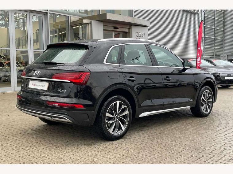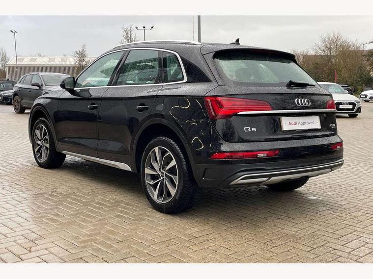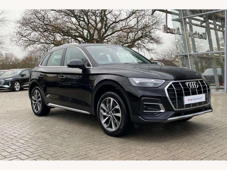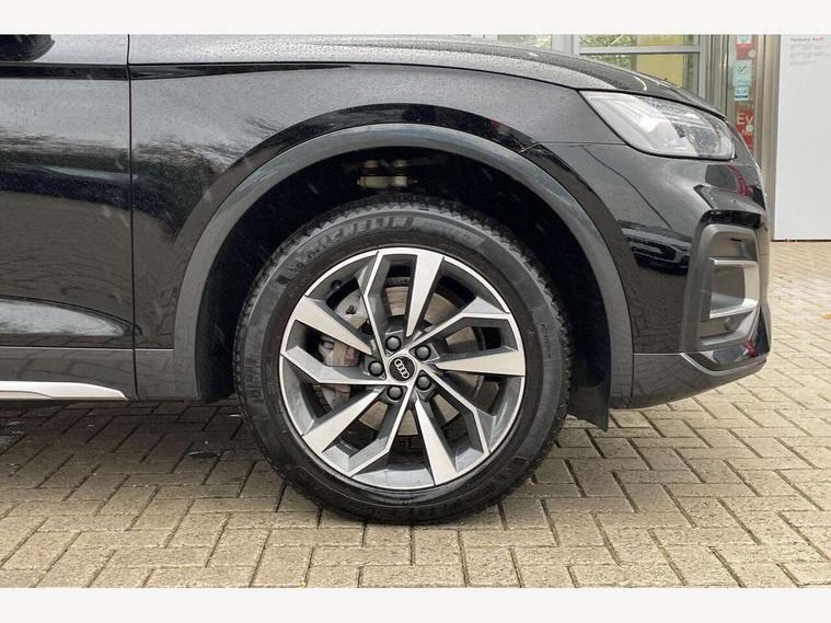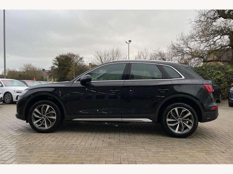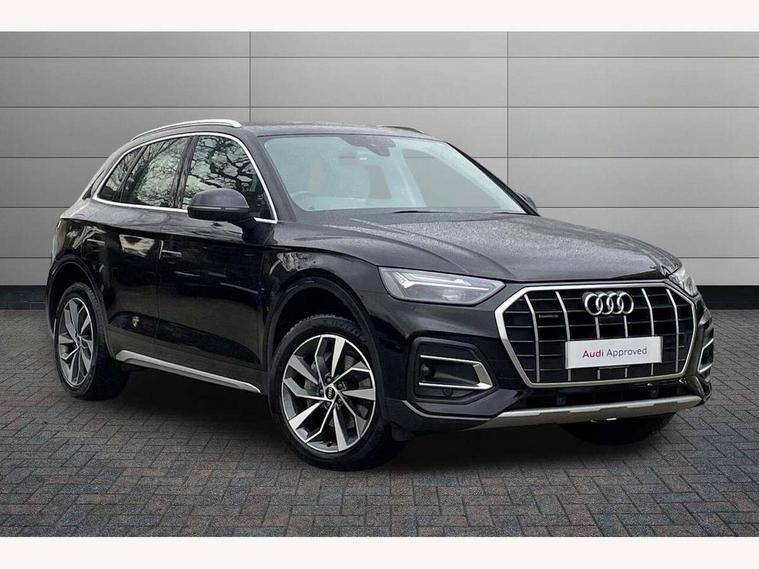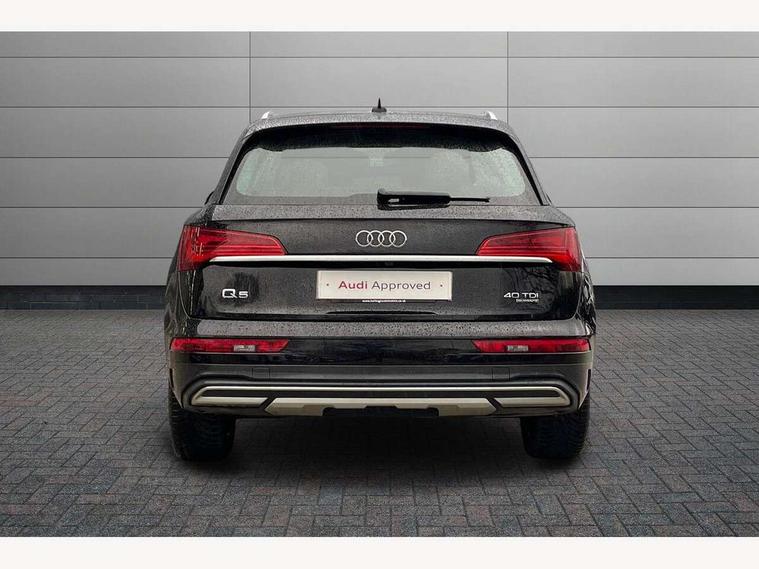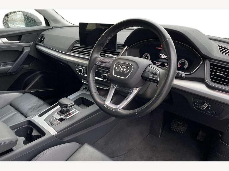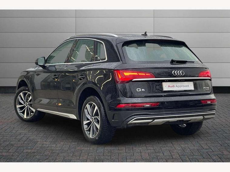 Audi connect safety and service (e-call), Audi connect with Amazon Alexa Integration, Audi drive select, Audi virtual cockpit plus with 12.3" screen and three different layout designs, Audi wireless smartphone interface, Automatic start-stop system with coasting functionality and efficiency programme, Bluetooth interface, Cruise control + speed limiter, Electro - mechanical power assisted steering, MMI navigation plus with 10.1" touch screen, Power tailgate, Reversing camera, Service interval indicator, Voice control system with Audi hotword activation "Hey Audi", Diesel particulate filter, Dynamic suspension, Quattro on demand, 2 x USB charging port with aux input socket, DAB Digital radio, Acoustic windscreen, Air inlets in matt titanium black with blades in matt aluminium silver, Aluminium roof rails, Auto dimming door mirrors, Auto dimming rear view mirror, Automatic headlight adjustment, Automatic headlights and windscreen wipers, Body colour bumpers, Body colour door mirrors, Chrome plated exhaust trims, Daytime running lights, Door sills in Selenite silver, Electric adjustable/heated/folding door mirrors, Front and rear electric windows, High level LED brake light, LED headlights and LED tail lights, Lower bumpers painted in contrast Manhattan grey, Matt selenite silver underbody protection, Matt twilight grey radiator grille with chrome vertical struts, Rear chrome trim strip below lights, Rear diffuser strip in selenite silver, Rear side wing doors, Rear spoiler, Rear wiper, Roof bars, 3 rear headrests, 3 spoke multifunction leather steering wheel with shift paddles, 40:20:40 split folding 3 rear bench seat in 2nd row with rear centre armrest, Comfort front centre armrest, Deluxe 3 zone electronic climate control, Door sills trims with aluminium inlays, Front/rear floor mats, Heated front seats, Height adjustable front head restraints, Height/reach adjustable steering column, ISOFIX child seat mounting and top tether, Luggage compartment cover, Manual seat adjustment with 4-way electric lumbar support, Removable luggage compartment floor, Silver cloth headlining, Single front passenger seat, Sunvisors with vanity mirrors, Twin leather upholstery + front sports seats, High gloss pack - Q5, LED interior light pack - Q5, 3 point seatbelts on all seats, 6 airbags - Driver, front passenger, curtain and side airbags, Electrically operated child locks on rear doors, Electromechanical parking brake, Electronic stabilisation control including ABS, ASR and EDL, Front passenger airbag deactivation, Hill descent control, Hill hold assist, Multi collision brake assist, Pop-up bonnet for pedestrian protection, Pre sense city, Seat belt force limiter, Seatbelt monitoring, Tyre pressure warning, Warning triangle and first aid kit, Anti theft alarm, Anti-theft wheel bolts, Keyless Go access/ignition system, Remote central locking, Aluminium rhombus inlay,