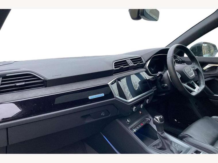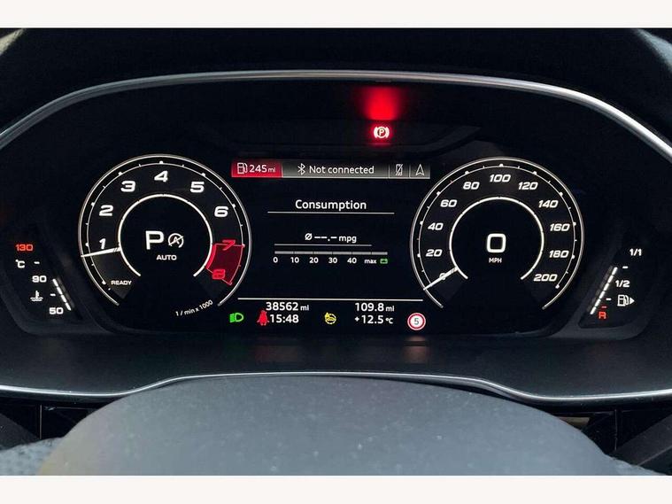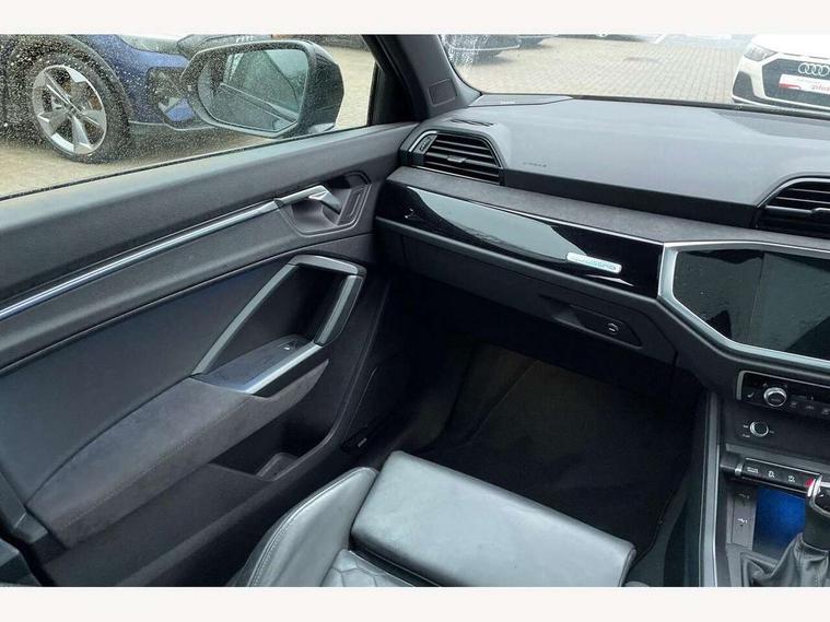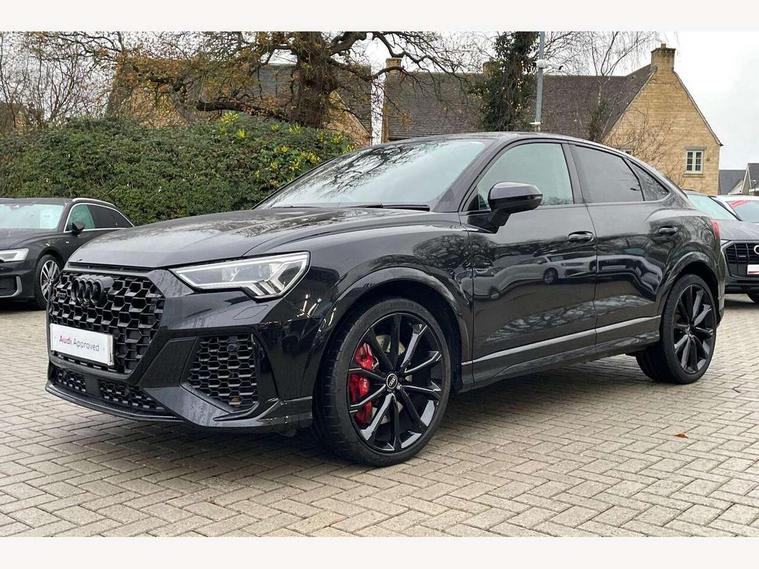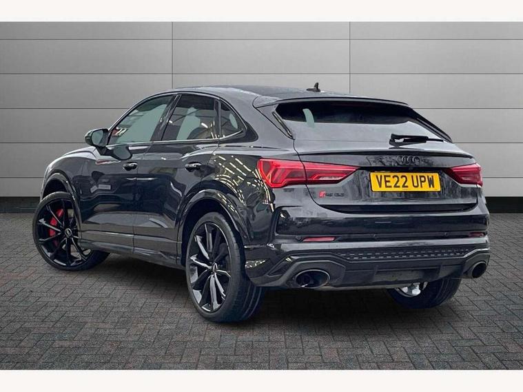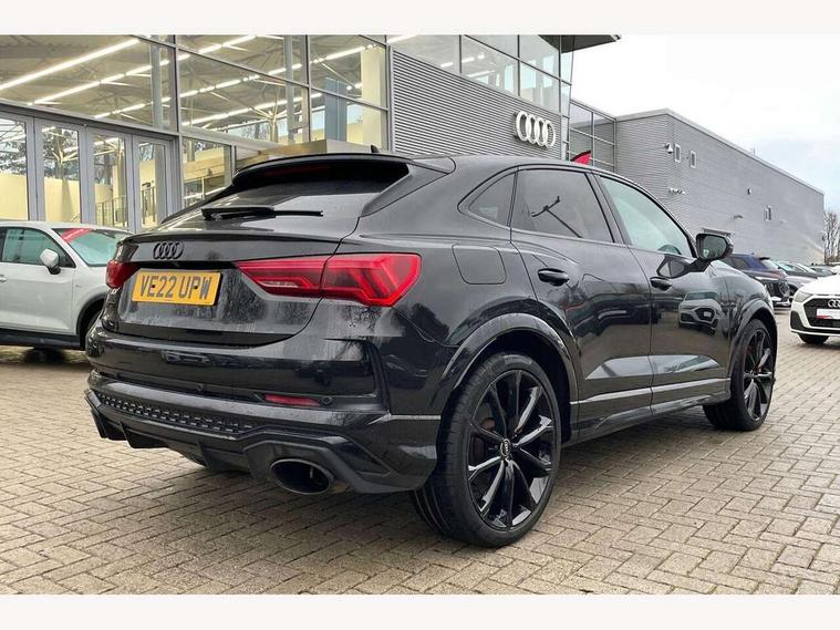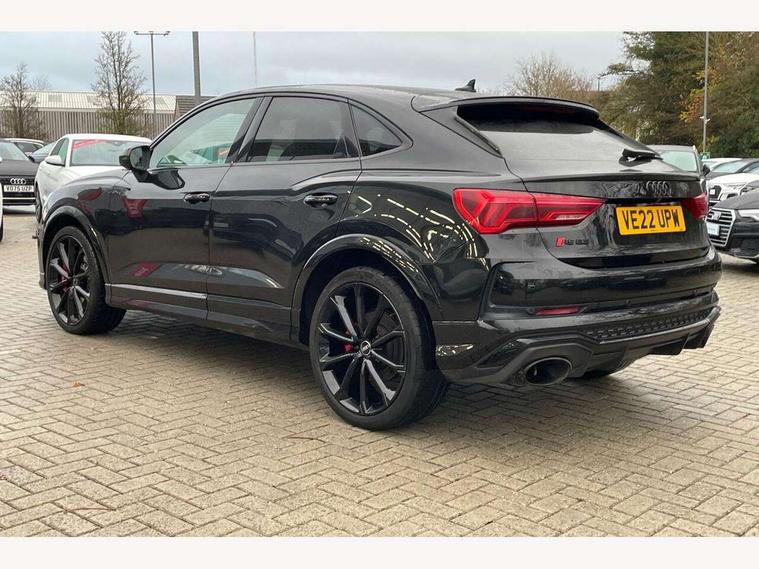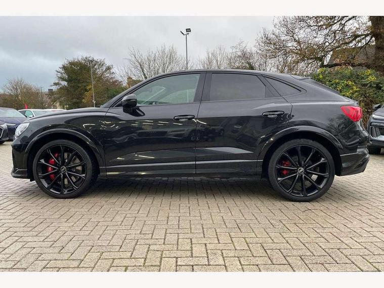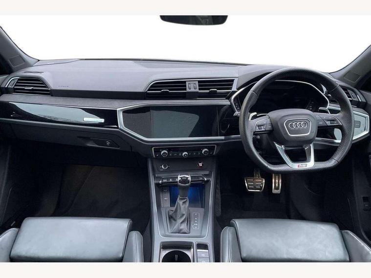 Audi drive select with new RS modes, Audi lane departure warning, Audi parking system plus with front and rear sensors, Audi virtual cockpit plus - 12.3 inch display, Bluetooth interface, Camera based traffic sign recognition, Emergency e-call, MMI Navigation Plus with high resolution 10.1 inch touchscreen colour display, Power operated tailgate, Progressive steering, Smartphone interface includes wireless Apple carplay/Android Auto, Start stop system with recuperation, Voice control system with natural language interaction, Quattro all wheel drive, 2 USB-C ports with charge and data functions, Audi sound system, DAB digital radio module, Acoustic windscreen, Audi Beam uses LEDs to project the Audi Sport logo, Auto dimming frameless rear view mirror, Body colour rear spoiler with lip in gloss black, Electrically folding, adjustable and heated door mirrors with integrated LED side indicators and kerb view function for passenger side, Flared wheel arches, Flat slits on single frame grille, Headlight washers, High gloss black finish B and C pillars, Honeycomb radiator grille in gloss black, Illuminated door sill trims with RS logo, LED headlights with LED daytime running lights, LED rear lights, LED third brake light, Panoramic glass sunroof, Privacy glass dark tinted rear and rear-side windows (from B-pillar backwards), Rain and light sensors, Rear side wing doors, Rear wiper, RS specific bumpers with large front air inlets in black, RS Sport exhaust system, dual branch with exhaust flap control and gloss black oval tailpipe trims, Tinted rear windows, Variable front intermittent wipers, 3 seat bench in 2nd row, 4 way electric lumbar support for driver and front passenger, Adjustable rear seat bench/backrest with centre armrest and cupholder, Black Alcantara elements - dashboard and the armrests in the front and rear doors, Black cloth headlining, Dual zone electronic climate control, Electrically adjustable front seats, Fine Nappa leather upholstery with front sports seats + honeycomb stitching and RS embossed logo, Front and rear floor mats, Front and rear head restraints, Front centre armrest, Heated front seats, ISOFIX child seat mounting for front passenger with airbag deactivation and outer rear seat including top tether attachment point for outer rear seats, Single front passenger seat, Stainless steel luggage compartment sill finisher, Stainless steel pedals, Ambient lighting pack - RS Q3, Black styling pack - RS Q3, Non smoking pack - RS Q3, 3x3 point rear seatbelts, 6 airbags - Driver, front passenger, curtain and side windows, Audi pre-sense front with pedestrain and cyclist recognition, Electrically operated child locks on rear doors, Electromechanical parking brake, Electronic stabilisation control including ABS, ASR and EDL, Front seatbelt reminder, Hill descent control, Hill hold assist, Pre sense basic, RS brake system, Seatbelt monitoring, Tyre pressure warning, Warning triangle and first aid kit, Advanced key, Anti theft alarm, Anti theft wheel bolts, Immobiliser, Aluminium look interior elements, Detail dashboard around MMI touch colour display in glass look, black with surround in aluminium look, Inlay - Black piano finish, Tool kit, Tyre repair kit,