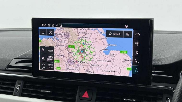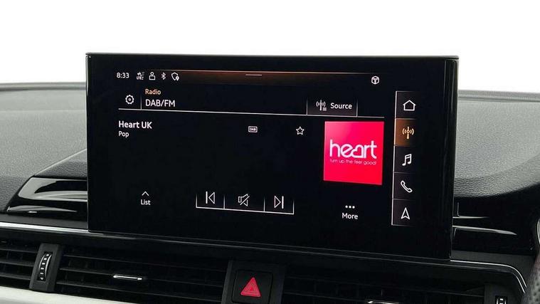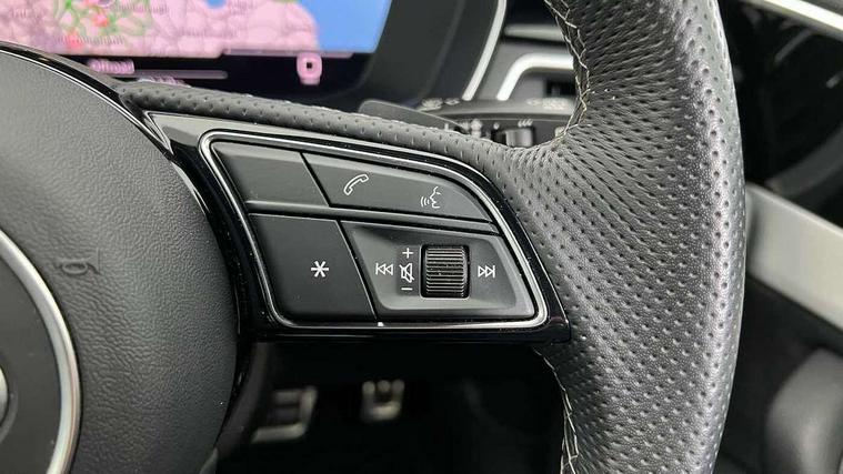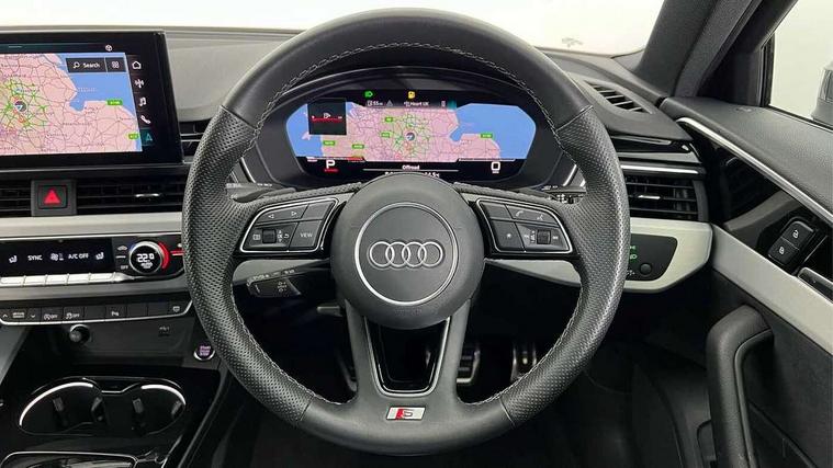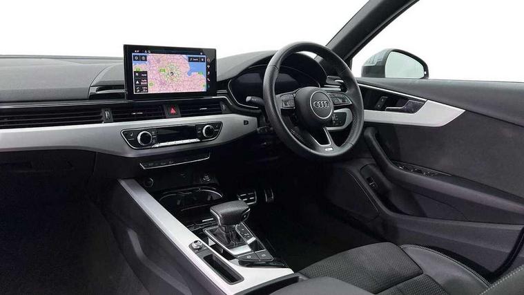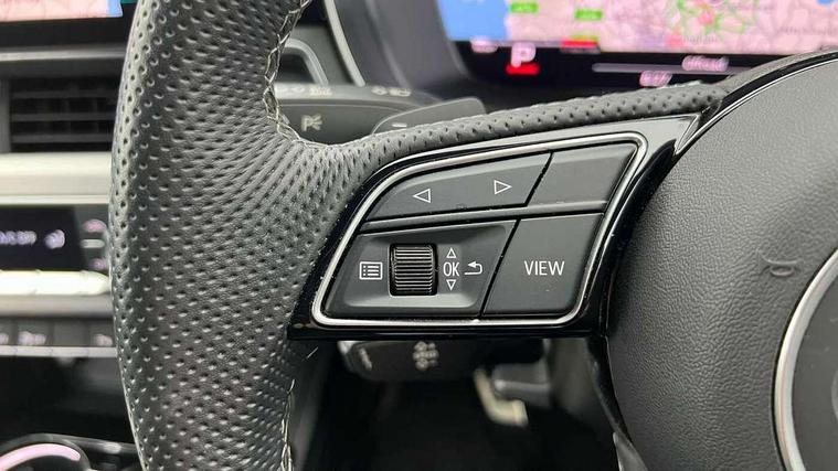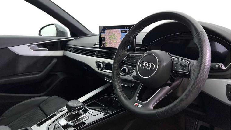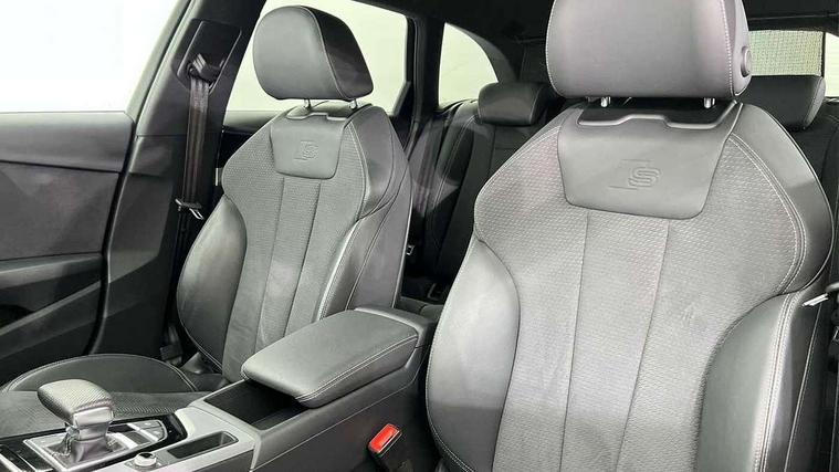 Audi connect safety and service (e-call), Audi drive select, Audi smartphone interface, Audi virtual cockpit, Automatic start-stop system with coasting functionality and efficiency programme, Bluetooth interface, Camera based traffic sign recognition, Electromechanical power steering, Email, calendar and text messages displayed via MMI, Front and rear parking sensors, Lane departure warning, MMI Navigation plus with MMI touch includes 10.1" high resolution colour MMI display, 3D map, Power operated tailgate, Rear view camera, Voice control system, 54 litre fuel tank, Sports suspension lowered by 23mm, 2 USB charging ports, 8 passive loudspeakers, DAB digital radio reception, Aluminium roof rails, Auto dimming rear view mirror, Body colour door handles, Body colour front spoiler lip, Body colour side sill trim, Body coloured door mirrors, Electrically folding auto dimming/adjustable/heated door mirrors with LED side indicators and kerb view function for passenger side, Grained matt black side air inlets with matt aluminium silver inlay, High beam assistant, Honeycomb structure radiator grille in grained matt black, LED headlights with LED rear lights + dynamic rear indicators + headlight adjustment and high beam, turning light + LED daytime running lights, LED third brake light, Matt aluminium silver tailpipe trim, Privacy glass, Rain and light sensors, Rear side wing doors, Rear wiper, S Line badges on the front wings, S line front and rear bumpers with side skirts, S Line rear diffuser in matt anthracite black with trim strip in matt aluminium silver, S Line roof edge spoiler, Variable intermittent front wash/wipe, Windscreen with acoustic glazing, 3 spoke high multi-function sports leather steering wheel grips in perforated leather with S badging including paddle shift, 4 way electric lumbar support for driver and front passenger, 40/20/40 split folding 3 rear seat bench in 3 parts with rear centre armrest, Black cloth headlining, Black perforated leather gearknob, Contrast stitching on seats, steering wheel and gear lever gaiter, Deluxe 3 zone electronic climate control, Door sill trims with aluminium inlay, Electric load area cover, Front and rear head restraints, Front centre armrest, Heated front seats, Illuminated door sill trims with S logo, ISOFIX child seat mounting and top tether, Manual seat adjustment, Single front passenger seat, Stainless steel pedals and foot rest, Tool kit, High gloss package - A4, LED Interior light pack - A4/S4, 3 rear seatbelts, 6 airbags - Driver, front passenger, curtain and side windows, Attention and drowsiness assist, Electronic Stabilisation Control (ESC) including ABS, ASR and EDL, Hill hold assist, Multi collision brake assist, Pop-up bonnet for pedestrian protection, Pre sense city, Rear door child safety locks, Seatbelt monitoring, Warning triangle and first aid kit, Anti theft alarm, Anti theft wheel bolts, Central locking, Keyless Go, Matt brushed aluminium inlays, Tyre repair kit,