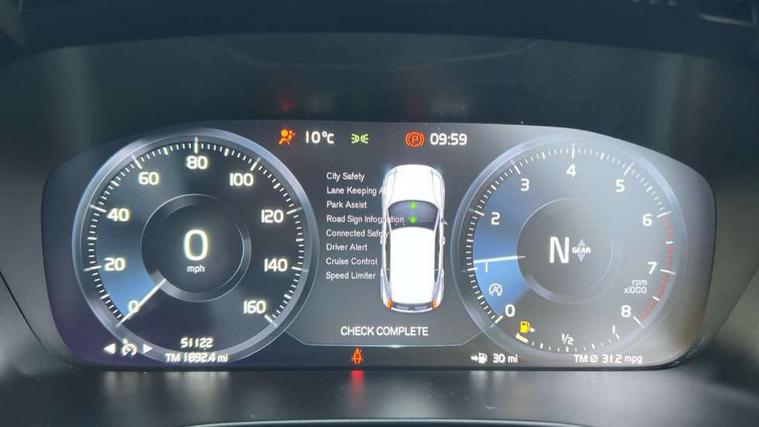 12.3" Active TFT crystal driver's instrument display, 9" centre console portrait touch screen, Adjustable steering wheel force, Bluetooth hands free telephone kit, Drive mode selector, Lane keep assist with driver alert control, Oncoming Lane Mitigation, Sensus navigation with European mapping and traffic information, Speed limiter, Speed sensitive steering, Voice control system, Volvo on call, DAB Digital radio, Steering wheel mounted remote controls, Adaptive brake lights with high level LED brake lights, Auto dimming interior mirror, Automatic headlamp levelling, Colour coordinated auto folding and heated power door mirrors, Dark grey front grille with chrome surround, Electrically adjustable and heated door mirrors, Front and rear electric windows, Front tread plates, High Gloss silver front and rear skid plate, Home safe and approach lighting, LED Headlights + Active high beam incorporating daytime running lights, Rain sensor windscreen wipers, Rear side wing doors, Rear wiper, Roof antenna, Roof spoiler, Silver roof rails, Visible VIN plate, 12V socket in front tunnel console and luggage compartment, 2 zone electronic climate control with Clean zone air quality system + pollen filter + cooled glovebox, 3 seat bench in 2nd row, 3 spoke leather steering wheel with chrome trim, 60/40 split folding rear seat, A-pillar parking ticket holder, Centre console cupholders and storage, Driver seat height/tilt/lumbar adjust, Driver's side lower dashboard credit card storage compartment, Floor mats, Front footwell illumination, Front reading light and theatre lighting, Glovebox bag hook, Height/reach adjustable steering column, Illuminated luggage compartment, Illuminated vanity mirrors + ticket holder, Isofix attachments on outer rear seats, Leather gearknob, Load protection net, Lockable/illuminated glovebox, Passenger seat adjustable for lumbar support, Rear armrest / integral cup holders / storage tray, Single front passenger seat, Underfloor stowage compartment, 3x3 point rear seatbelts, City safety, Drivers knee airbag, DSTC-Dynamic Stability and Traction Control, Dual stage driver/passenger airbags, Electronic parking brake with auto hold, Fasten seatbelt reminder, First aid kit, Hill descent control, Hill start assist, Inflatable curtain, Passenger airbag cut-off device, Road sign information display, Run off Road Mitigation, Run off Road Protection, Seatbelt reminder and pretensioners, SIPS (Side Impact Protection System), SIPS airbags, Slippery road and hazard light alert, Tyre pressure monitoring system, Vehicle deceleration control with Anti-lock Brake System, Electronic Brake Distribution and Emergency Brake Assist, Warning triangle, WHIPS whiplash protection system - front, Anti-theft alarm including immobiliser/volume sensor + level sensor, Fuel flap with deadlocking system, Key integrated remote control central locking, Locking wheel nuts, Private locking for tailgate,