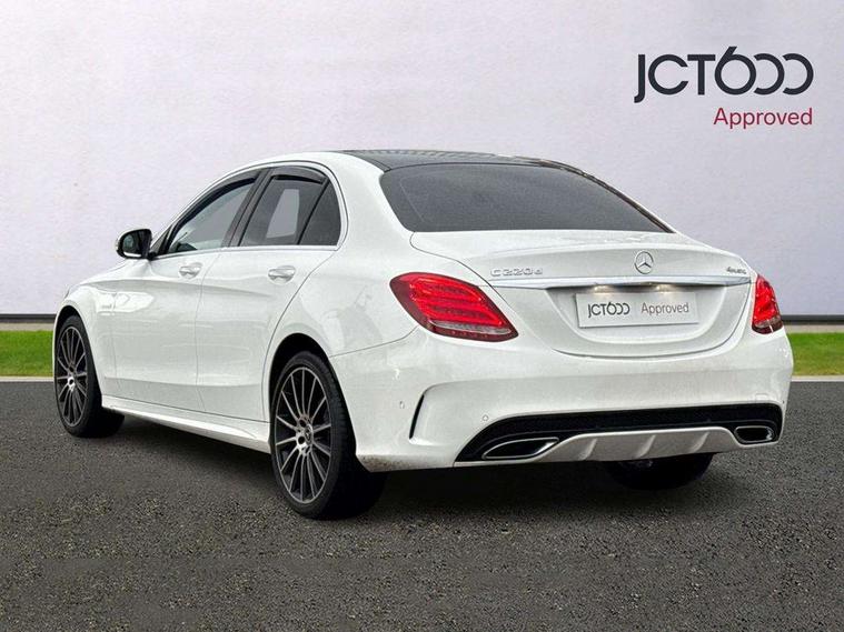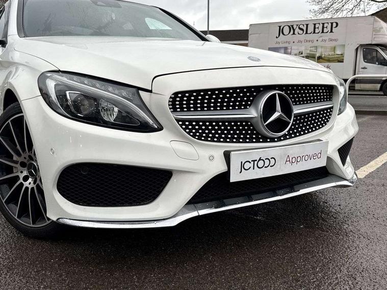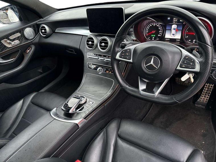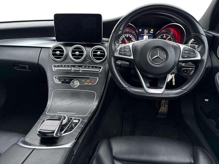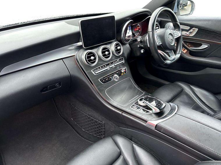 Active park assist with parktronic system, Analogue clock, Attention assist, Bluetooth system, Collision prevention assist, COMAND online nav with colour display, radio/CD/DVD/MP3, SD card, 10GB music, Emergency Call system, speed limit assist, linguatronic voice control, DYNAMIC SELECT with a choice of driving modes (ECO, Comfort, Sport, Sport+ and Individual), Multi function trip computer, Outside temperature gauge, Remote boot release, Service indicator (ASSYST PLUS), Speed sensitive steering, Diesel particulate filter, 2 USB ports in centre console, Burmester surround sound system, DAB Digital radio, SD card slot, Adaptive brake lights, AMG body styling, Body coloured bumpers, Electric front sliding and fixed rear panoramic glass sunroof, Electric windows one touch open/close, Electrically adjustable and heated door mirrors, Green tinted glass, LED daytime running lights, LED tail lights, Radiator grille with integral star and 2 louvres in matt iridium silver with chrome trim, Rain sensor windscreen wipers, Twin exhaust pipes, 2 cupholders in front centre console, 3 spoke AMG steering wheel in Nappa leather, Advanced multicolour ambient light and LED interior light, AMG floormats, AMG sports seats, Auto Mercedes-Benz child seat recognition sensor, Dual zone automatic climate control, Front and rear head restraints, Front centre armrest with storage compartment, Gearshift paddles, Heated front seats, Illuminated glovebox, Lumbar support, Multifunction steering wheel, Rear top tether child seat ISOFIX attachment, Sports pedals with stainless steel surfaces and rubber studs, Sunvisors with illuminated vanity mirrors, Lighting pack - C class, Memory pack - C Class, Mirror pack - C Class, Seat comfort pack - C Class, Stowage space pack - C Class, 3 rear 3 point seatbelts, ABS with Brake Assist, Active bonnet, Adaptive brake system, Child proof door locks, Drivers knee airbag, Dual stage driver/passenger airbags, Electronic parking brake, ESP with ASR, Front passenger seat occupancy sensor, Front side airbags, Hill start assist, Rear seatbelt warning indicator, Tyre pressure monitoring system, Warning triangle and first aid kit, Window airbags, Alarm system/interior protection/immobiliser, Chrome surround in electric key, Keyless entry and keyless start, Remote central locking,