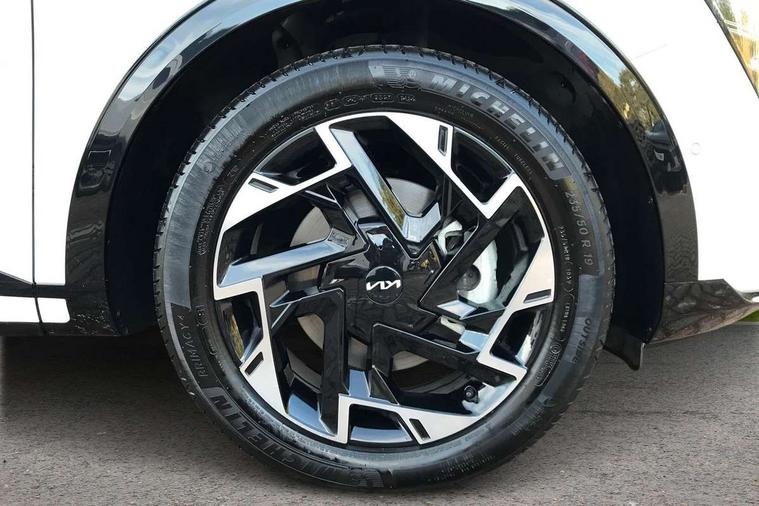 12.3" Display with navigation, 12.3" supervision colour cluster display, 360 degree around view monitor, Apple car play/Android Auto with voice control, Blind spot collision avoidance assist, Blind spot view monitor, Drive mode selector, E-call, Forward collision avoidance assist (FCA) - city/pedestrian/cyclist/junction covering, Front and rear parking sensors, Highway Driving Assist (HDA), Intelligent speed limit assist, Kia Connect (UVO), Lane Following Assist (LFA), Lane keep assist, Low washer fluid warning, Parking collision avoidance assist (PCA), Remote smart parking assist, Reversing camera system integrated into centre fascia screen, Smart cruise control with stop and go functionality, Smart power tailgate, Speed sensitive power steering, Trip computer, Windscreen washer level indicator, Wireless Smartphone charger, Intelligent Stop and Go, Terrain mode select (Mud, Snow, Sand), Bluetooth audio streaming, DAB Radio with MP3, Harman Kardon premium sound system, Rear USB port, Steering wheel mounted audio controls, USB C type charging ports on centre console, USB C type charging ports on side of front seats, USB port for connection of a media device, All round electric windows with drivers and front passenger auto up/down function, Automatic headlight control system, Automatic window defogger, Backlite glass heated with timer, Body colour and black bumper with silver accents, Body colour exterior door handles, Body colour radiator upper garnish and door garnish, Dual LED adaptive headlamps, Electric panoramic glass sunroof (Electric one touch with safety function), Electrically adjustable/heated/folding door mirrors with LED indicators, Front and rear chrome skid plates, Gloss black door mirrors, Gloss black radiator grille, Gloss black side sill and wheel arch body mouldings, Glossy black roof rack, High beam assist, Interior electrochromic mirror, LED daytime running lights, LED front fog lamps, LED High mounted stop light, LED rear combination lamp, Rain sensing wipers with aero blades, Rear fog lamp, Rear privacy glass, Rear side wing doors, Rear spoiler, Rear wiper, Satin finished beltline, Silver coloured inserts to bumpers, Tinted rear glass, Trailer stability assist, 10 way driver/8 way passenger electrically power adjustable seats, 12V power socket in front centre fascia and luggage compartment, 3 seat bench in 2nd row, 3 x passenger assist grips, 40/20/40 split folding rear seat, All-round height adjustable headrests, Ambient lighting, Black headlining, Centre console storage box, Cupholders in rear armrest, D-Shaped sports leather steering wheel and perforated inserts with GT-Line logo, Door courtesy lamps, Drink holder at centre armrest, Driver and front passenger side sunvisors with illuminated vanity mirrors, Driver seat memory function, Drivers seat power lumbar support, Front and rear door storage, Front seat and rear pockets, Front/rear centre armrests, Gear shift indicator, Glovebox illumination, Heated front and outer rear seats, Heated steering wheel, Interior door lock/unlock function, ISOFIX Child seat top tethers and anchor fixings outer rear seats, LED interior personal lamp, LED lighting in overhead console, Luggage area LED light, Luggage area load cover, Luggage net with hooks, Metal paint interior door handles, Paddle shift controls, Rear cabin light, Rear coat hooks, Single front passenger seat, Sports pedals, Suede leather upholstery, Three zone climate control, Tilt/telescopic adjustable steering wheel, Ventilated front seats, Ventilation ducts to rear compartment, Active front headrests, All round 3-point seatbelts, Anti-lock braking system (ABS), Dual front side airbags, Dual horn, Electronic parking brake, Electronic stability control with downhill brake control, Front passenger airbag cut-off switch, Front seatbelt pretensioners + load limiters, Height adjustable front seatbelts, Hill start assist control (HAC), Impact sensing auto door unlocking, Multi collision brake assist, Rear door child safety locks, Rear seat alert system, Traction control, Twin curtain airbags, Twin front airbags, Tyre pressure monitoring system, Advanced anti-theft system including immobiliser and alarm, Door deadlocks, Engine Start/Stop Button with Smart Entry System, Locking wheel nuts, Speed sensitive auto door locking, Visible vehicle identification number, Aluminium pattern finish centre fascia and door garnish, 19" GT-Line alloy wheels, Michelin tyres, Tyre mobility kit,
