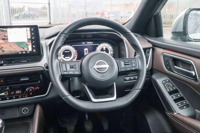 2 front USB-C ports, 2 rear USB-C ports, 360 degree Intelligent around view monitor with moving object detection, Advanced windscreen head up display, Blind spot intervention, Blind spot warning, Drive assist, Drive assist custom mode, Drive modes (sport, normal, eco), Driver drowsiness and attention warning, Electric speed sensitive power steering, Emergency and breakdown call, Emergency lane keep assist, Emergency Stop Signal (ESS), Engine start/stop button, Event data recorder, Front and rear parking sensors, Full Digital 12.3" TFT Digital Combimeter, Google virtual personal assistance, Hands free power tailgate, Idle stop/start system, In-car WIFI hotspot, Intelligent Cruise control (ICC), Intelligent forward collision warning, Intelligent speed assist, Lane departure warning system, Nissan connect 12.3 inch touchscreen infotainment system, Nissan connect navigation with google maps, Nissan connect services 2.0 (Google Automotive System), Outside temperature sensor, Rear cross traffic alert, Reversing detection, Wireless Apple CarPlay/Android Auto, Wireless charging pad, Limited slip differential, 6 speakers, AM/FM audio system with DAB, Bluetooth audio streaming, Auto dimming frameless rear view mirror, Auto rear wiper when reversing, Body colour mirror caps, Body coloured door handles, Bodyside mouldings, Chrome side window finisher, Electric auto folding door mirrors, Electrically adjustable and heated door mirrors with LED turn indicator, Follow me home headlights, Glossy black bumper inserts and fenders, High beam assist, Intelligent auto headlights, LED 3rd brake light, LED daytime running lights, LED headlights with adaptive driving beam, LED rear lights, LED sequential turn lights, One touch front and rear electric windows with remote opening and closing, One touch passenger window, Partially body coloured bumpers, Rear privacy glass, Rear roof spoiler, Rear side wing doors, Rear styling plate, Reverse tilting door mirrors, Shark fin antenna, Silver roof rails, Splash free rain sensing wipers, Super RED rear LED lights, Super UV and infrared cut glass, Thermaclear heated windscreen, 3 bench rear seats in 2nd row, 3 rear headrests, 60/40 split folding rear seat bench, Chrome interior door handles, Dark headlining, Driver seat back pocket, Dual zone automatic climate control with pollen filter, Fixed Glass roof with electric sunshade, Front door with bottle holders, Heated front seats, Heated steering wheel, Height adjustable front headrests, Leather shift knob, Luggage board system, Luggage space lighting, Multifunction steering wheel, Passenger seat back pocket, Quilted/PVC upholstery, Rear door bottle holders, RGB ambient light (Full area coverage), Single front passenger seat, Smooth leather steering wheel, Tilt/telescopic adjustable steering wheel, Two rear isofix child seat anchorage points with top tether, 3x3 point rear seatbelt pretensioners + load limiters, Autonomous emergency braking, Child locks on rear doors, Curtain and front side, far side airbags, Driver and passenger airbags, Driver, passenger and 2nd row rear seat belt reminder, Electric handbrake with auto hold function, Front seatbelt pretensioners + load limiters, Height adjustable front seatbelts, Hill start assist, intelligent front emergency braking, Rear automatic braking, Tyre pressure monitoring system, Vehicle dynamic control, Engine immobiliser, Intelligent key with walk away lock and approach unlock functions, Remote central door locking with deadlocking, Thatcham alarm, 19" Diamond cut alloy wheels, Tyre puncture repair kit,