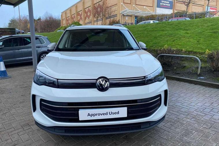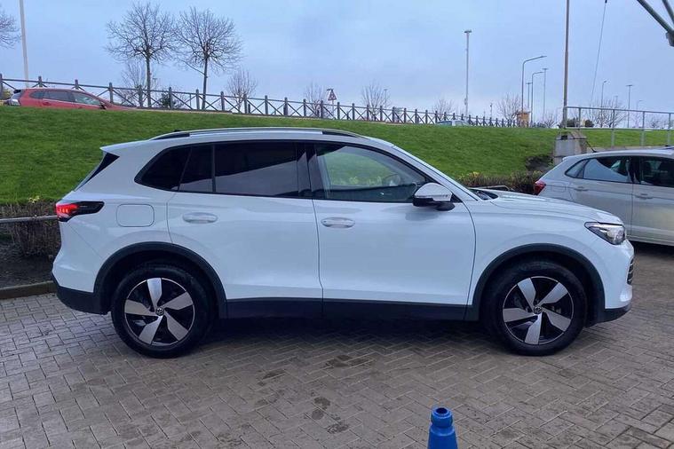 Adaptive cruise control (ACC), Advanced driver attention and drowsiness monitor, Bluetooth mobile phone interface, Car2X technology, Digital Cockpit Pro - 10.25" high resolution dash display screen with customisable menus and information, Dynamic road sign display, E-Sim card for online connectivity, eCall emergency call service, Front Assist - Autonomous emergency braking with pedestrian and cyclist monitoring, Lane change system, Side assist, Rear traffic alert and Exit warning system, Lane keeping system Lane Assist, Multifunction front facing camera, Oncoming vehicle braking when turning including swerve support, Park assistance plus with front and rear parking sensors, Power assisted steering with speed sensitive, Start/stop system with regenerative braking, Warning signal and warning light for front and rear seatbelts not fastened, Wireless App-Connect, Front wheel drive, Digital radio reception (DAB), Diversity antenna for FM reception, Ambient lighting with logo projection, Auto dimming interior rear view mirror, Automatic headlight control system, Body coloured bumpers and air intake with chrome trim, Body coloured door handles, Body-coloured exterior mirror housings, Coming/leaving home lighting function, Heat insulating glass in side and rear windows, Heat insulating windshield, Heated rear window, High level 3rd brake light, Illuminated door handle recesses, Illuminated lightline between headlamps, Rain sensor windscreen wipers, Rear fog light on one side, reversing light on both sides, Rear side wing doors, Rear wiper, 12V outlet in center console rear and in luggage compartment, 12V socket in centre console, 3 bench rear seats in 2nd row, Air care climatronic 3 zone air conditioning system with rear air conditioning control panel, Carpet mats, front and rear, Centre console with illuminated storage compartment with sliding cover and two drinks holders, Ceramique headlining, Door and side trim panel in foam film and woven fabric, Front centre armrest, ISOFIX anchors for child seats on outer rear seats and front passenger seat. Compatible with i-Size, Mechanical rear seat release, Power adjustable lumbar support in front, Rear bench seat, split folding, longitudinally movable and folding with load-through hatch and centre armrest, Safety optimised front head restraints, Single front passenger seat, Sun visors with illuminated vanity mirrors, Three rear head restraints, Variable luggage compartment floor, Comfort package with park assist pro - Tiguan, Design package - Tiguan, 3 point seat belt for centre rear seats, 3 Point seat belts in front with pretensioners, 3 point seatbelts in outer rear with ECE label, Driver and front passenger airbag with front passenger airbag deactivation, Electronic parking brake with auto hold, Front and rear curtain airbags, Front and rear side airbags, Front centre airbag, Front disc brakes, Manual child proof rear door locks, Rear disc brakes, Two tone horn, Warning triangle, Anti theft wheel bolts, Soul instrument panel, Airstop tyres,